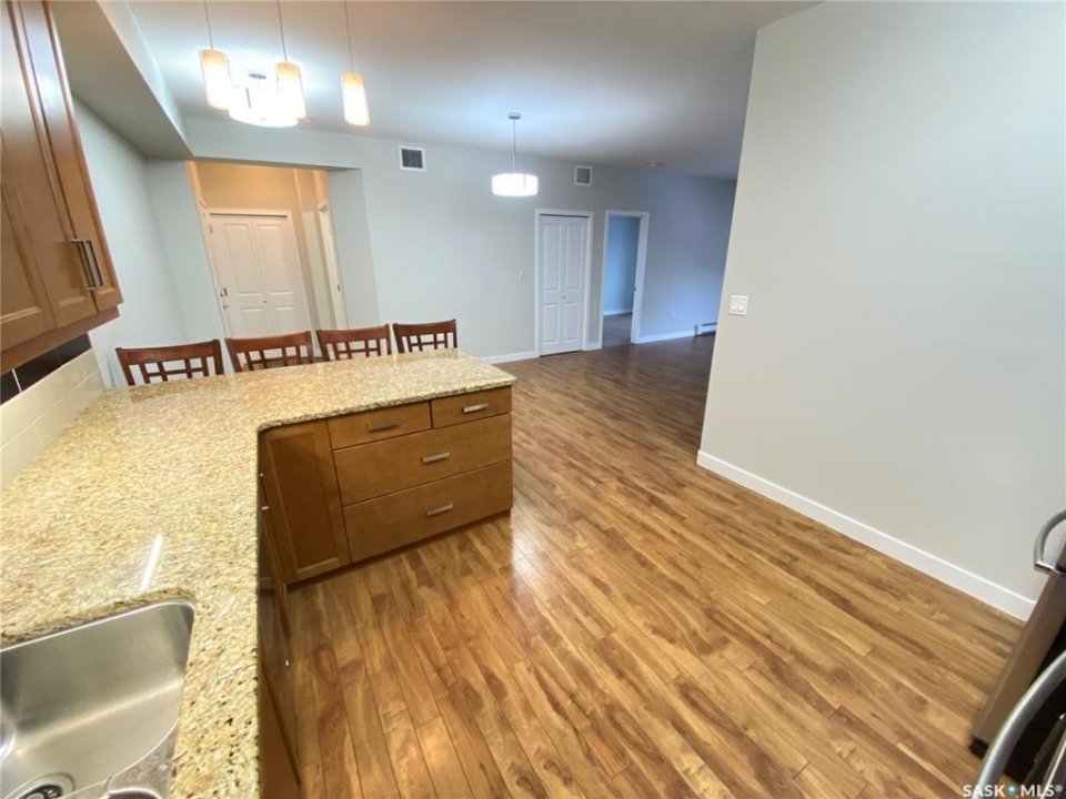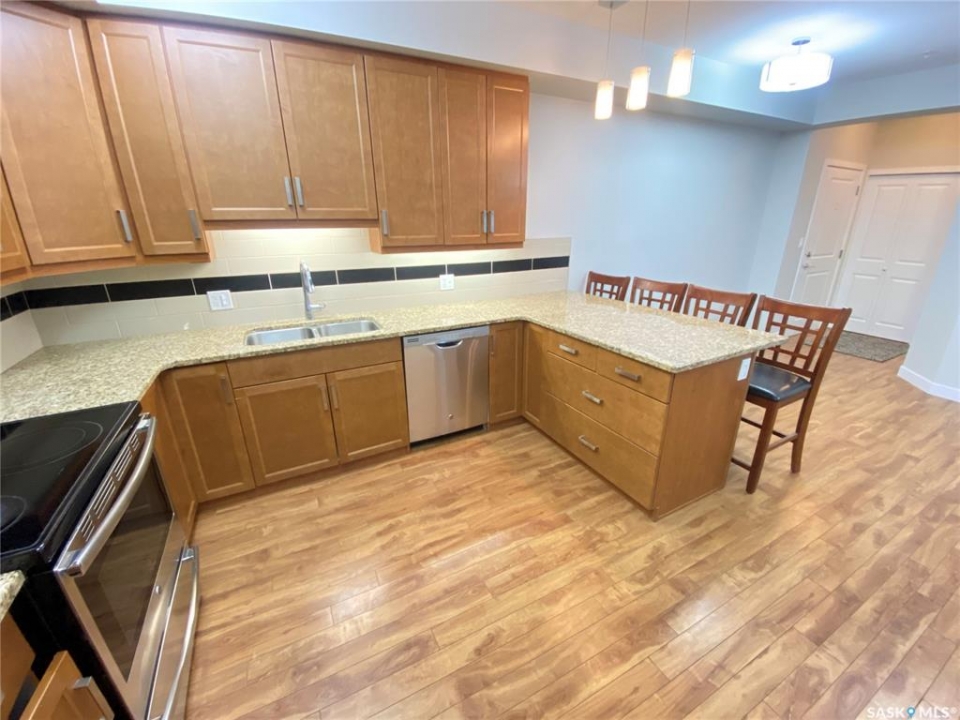 Life's next chapter approaching? Ready to downsize, travel with no worries of looking after your home? Unit 106 339 Morrison is ready for your next move in life. This 1032 sq ft condominium features 2 bedrooms with the primary containing space for king-size furniture along with a large walk-through closet along with your 3-piece bath ensuite with sit-down shower. As you enter the condominium the open concept layout along with 9-foot ceilings provides an abundance of space. The sit-up island covered in quartz countertops provides seating for 4 along with an abundance of countertop space and full line up of stainless appliances. Large dining area to set up your big table with extra leaf to accommodate all your family still for the holidays and special events. Living room area with balcony access to enjoy the natural gas BBQ hookup and summer days. The secondary bedroom allows for queen furniture or to be set up as a guest room or home office space. The 4-piece main bathroom along with your laundry/storage room area complete the layout of the unit. Fresh painting of the complete interior along with upgraded flooring in the bedrooms. Downstairs enjoy additional heated storage space for your seasonal extras. This condominium building contains an amenities room, exercise room along with elevator service and wheelchair access. One parking spot outdoors with electrical plug in. Condominium fees are $455 a month and include Exterior, Common Areas, Garbage, Heat, Water, Sewer, Common Insurance, Lawn, Snow. A terrific opportunity. Make it yours today!