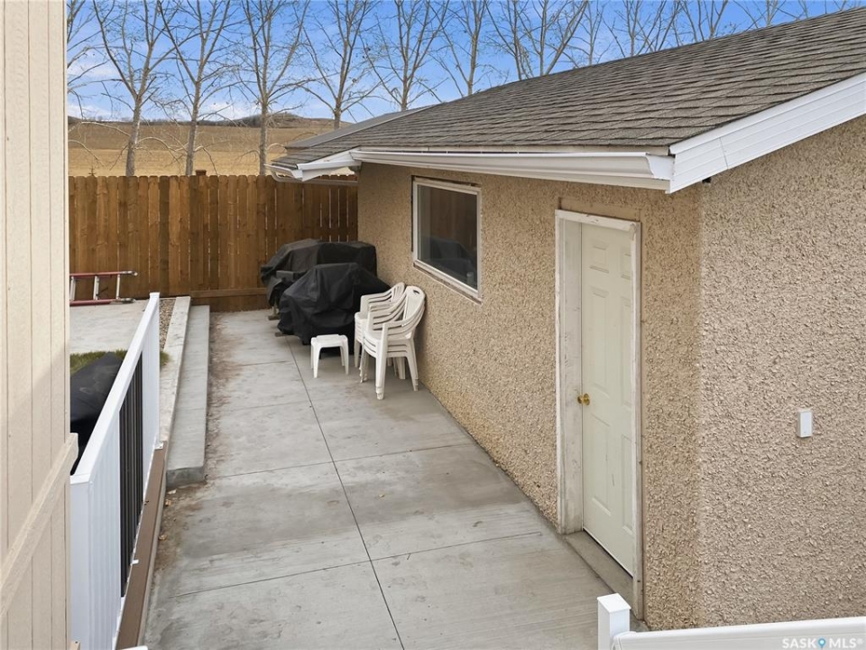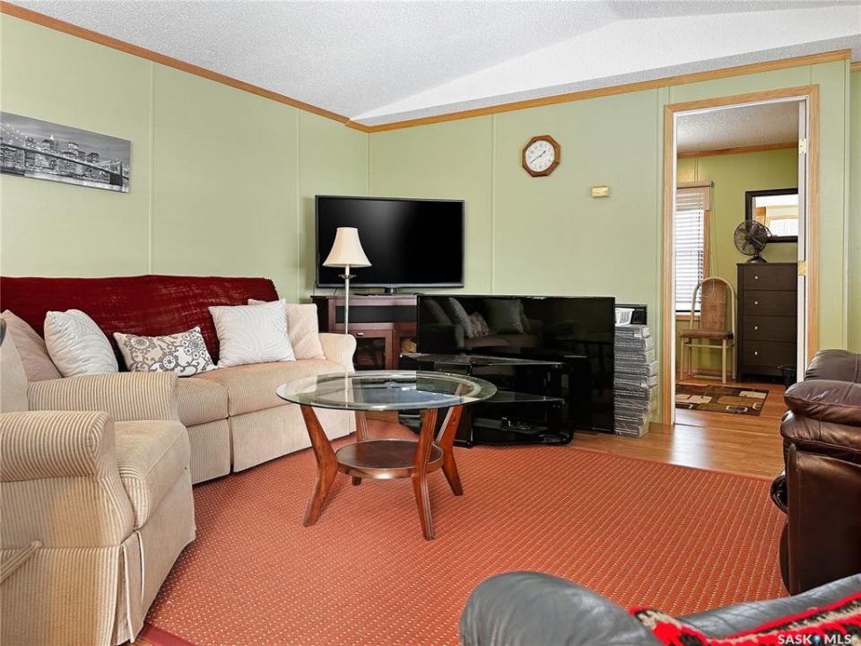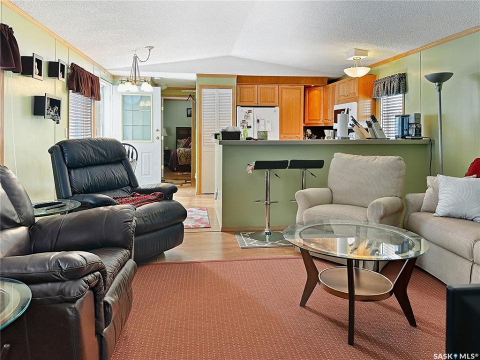 Year-Round Lake Life at Bayview Heights! Discover your perfect escape in Battleford's Provincial Park—just steps from the public beach! This fully renovated, turn-key property offers all the perks of lake living without the hassle of waterfront upkeep. Inside, you'll find 2 cozy bedrooms, a full bathroom, laundry, and a beautiful solid oak kitchen overlooking the living room. Built with 2x6 construction, this home is well-insulated for year-round comfort and low utility costs. Everything you need is included—furnishings, TVs, dishes, cutlery, and more. Just bring your clothes and move in! The detached, heated, and insulated single garage adds extra convenience and is being upgraded with a 2-piece bath. The fully fenced yard is private and low maintenance, featuring a composite deck (no sanding or staining!), a wood shed, and a charming firepit area—perfect for relaxing evenings. A massive driveway offers plenty of parking, including space for RVs. Plus, there's a 220V plug and rear-lot RV dump for added convenience. Enjoy all the amenities of the park: a stunning beach, playground, and the nearby Jackfish Lodge with its 18-hole golf course and fantastic restaurant. Whether you're looking for a summer retreat or a winter getaway, this home has it all. Don't miss your chance to own a slice of paradise at Jackfish Lake—call today for a viewing!