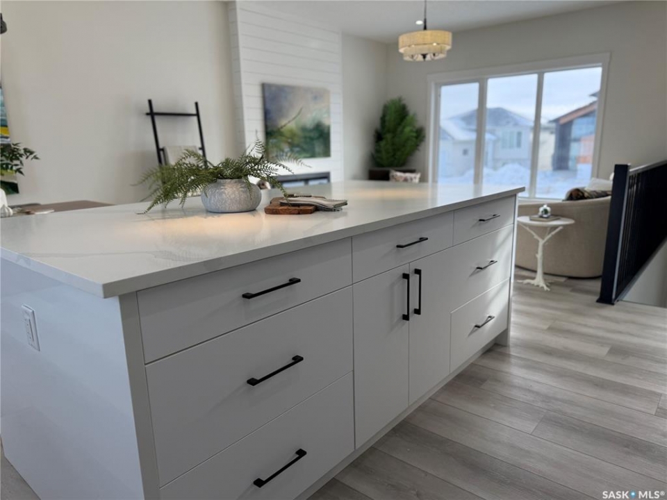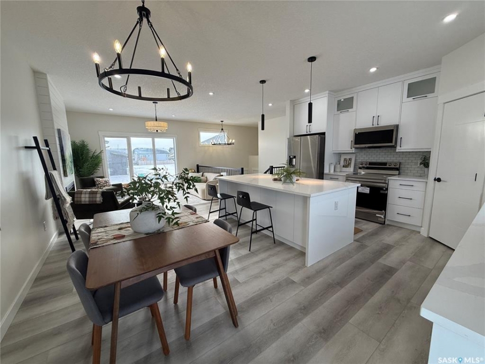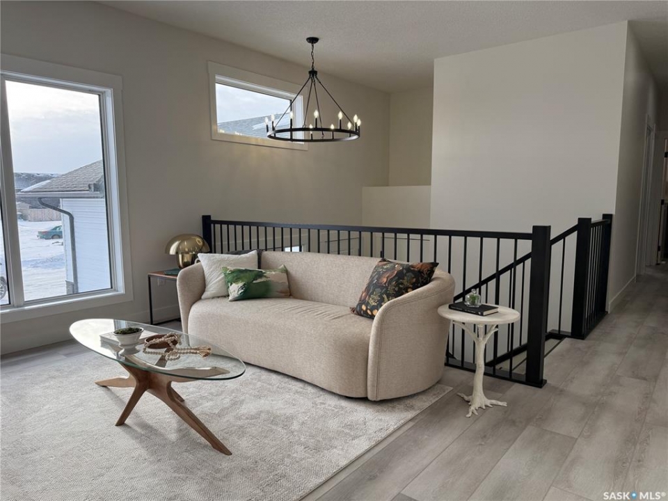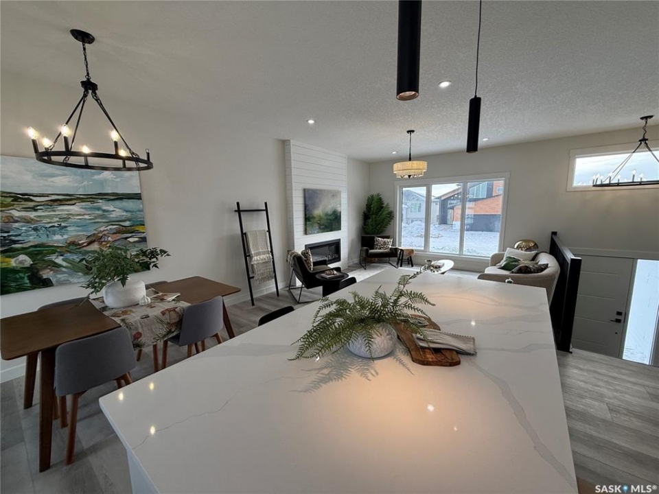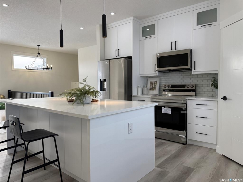 This stunning brand new 1,420 sq. ft. bi-level home in the City of Warman is an absolute must-see and is sure to impress from the moment you arrive. Thoughtfully built with care and precision by Taj Homes, this home showcases eye-catching curb appeal with modern white and black exterior accents that set it apart. Step inside to a bright and inviting open-concept layout featuring 9-foot ceilings, beautiful stained railing, oversized windows that flood the space with natural light, and a beautiful fireplace—creating the perfect setting for cozy evenings and entertaining alike. The modern kitchen is both stylish and functional, offering custom ceiling-height cabinetry, sleek quartz countertops, a large island with seating, and a convenient walk-in pantry for easy storage and everyday living. The spacious primary suite is a true retreat, complete with a striking feature wall, walk-in closet, and a luxurious 5-piece ensuite finished with elegant tile work. Two additional well-sized bedrooms with ample closet space, a 4-piece main bathroom, and a dedicated laundry room featuring cabinetry and quartz countertops complete the main floor layout. Additional upgrades include an on-demand water heater, high-efficiency furnace, triple-pane all-weather windows, full appliance package, Taiga Curate luxury vinyl plank flooring throughout, Delta shower trims, central air conditioning, and an insulated and drywalled garage. Outside, enjoy the added privacy of no rear neighbours, making the backyard the perfect space to relax, entertain, or enjoy peaceful views with a partially fenced yard already in place. This home is covered by Progressive New Home Warranty for added peace of mind. GST/PST is included with rebates back to the builder. Don't miss your opportunity to own a beautifully finished new home in one of Warman's most desirable locations—contact your favourite agent today to book your private showing! NOTE SOME PICTURES ARE VIRTUALLY STAGED