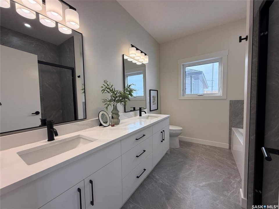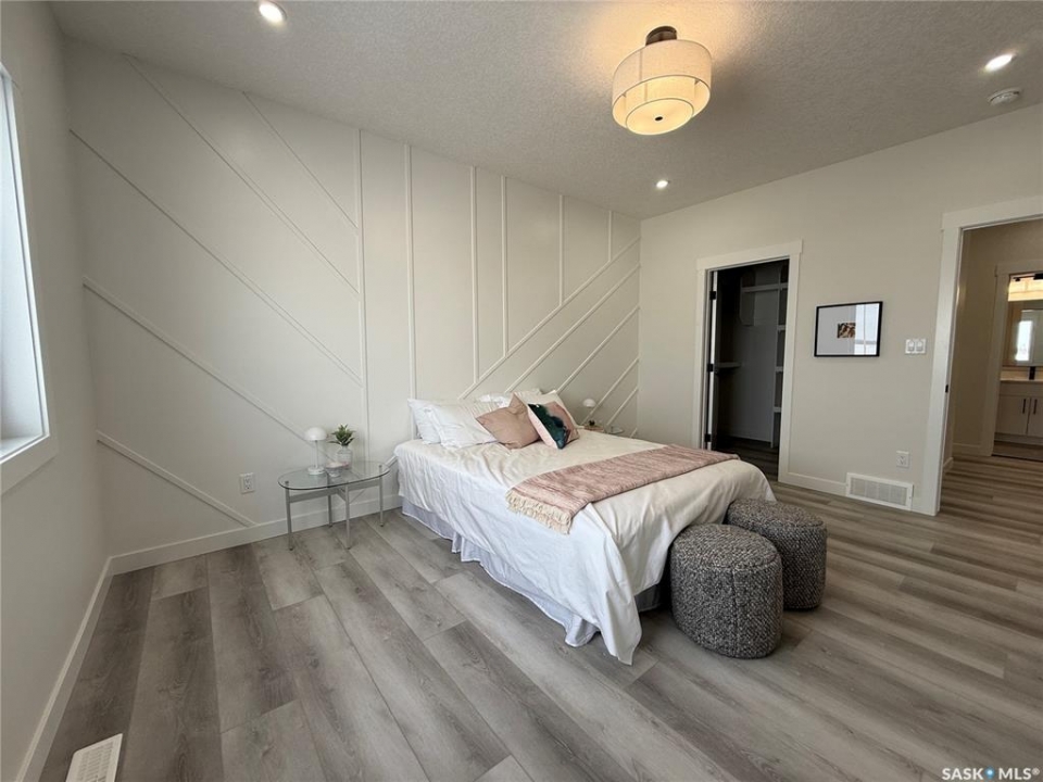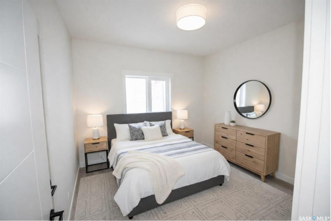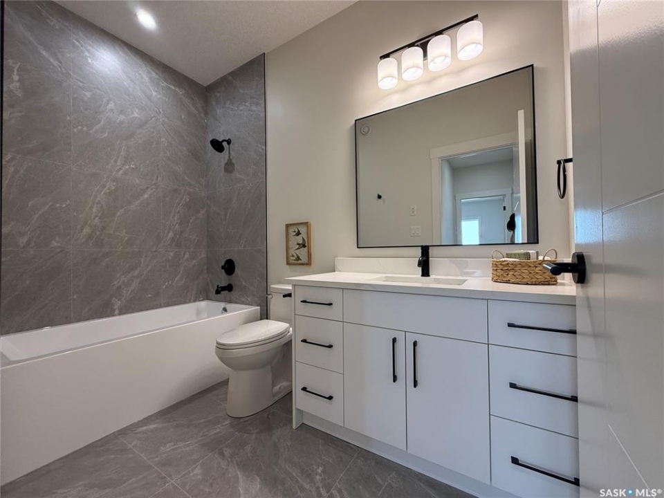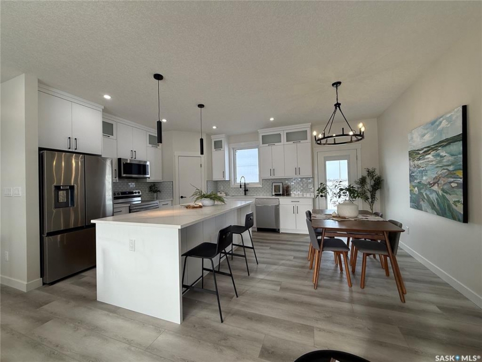This stunning brand new 1,420 sq. ft. bi-level home in the City of Warman is an absolute must-see and is sure to impress from the moment you arrive. Thoughtfully built with care and precision by Taj Homes, this home showcases eye-catching curb appeal with modern white and black exterior accents that set it apart. Step inside to a bright and inviting open-concept layout featuring 9-foot ceilings, beautiful stained railing, oversized windows that flood the space with natural light, and a beautiful fireplace—creating the perfect setting for cozy evenings and entertaining alike. The modern kitchen is both stylish and functional, offering custom ceiling-height cabinetry, sleek quartz countertops, a large island with seating, and a convenient walk-in pantry for easy storage and everyday living. The spacious primary suite is a true retreat, complete with a striking feature wall, walk-in closet, and a luxurious 5-piece ensuite finished with elegant tile work. Two additional well-sized bedrooms with ample closet space, a 4-piece main bathroom, and a dedicated laundry room featuring cabinetry and quartz countertops complete the main floor layout. Additional upgrades include an on-demand water heater, high-efficiency furnace, triple-pane all-weather windows, full appliance package, Taiga Curate luxury vinyl plank flooring throughout, Delta shower trims, central air conditioning, and an insulated and drywalled garage. Outside, enjoy the added privacy of no rear neighbours, making the backyard the perfect space to relax, entertain, or enjoy peaceful views with a partially fenced yard already in place. This home is covered by Progressive New Home Warranty for added peace of mind. GST/PST is included with rebates back to the builder. Don't miss your opportunity to own a beautifully finished new home in one of Warman's most desirable locations—contact your favourite agent today to book your private showing! NOTE SOME PICTURES ARE VIRTUALLY STAGED