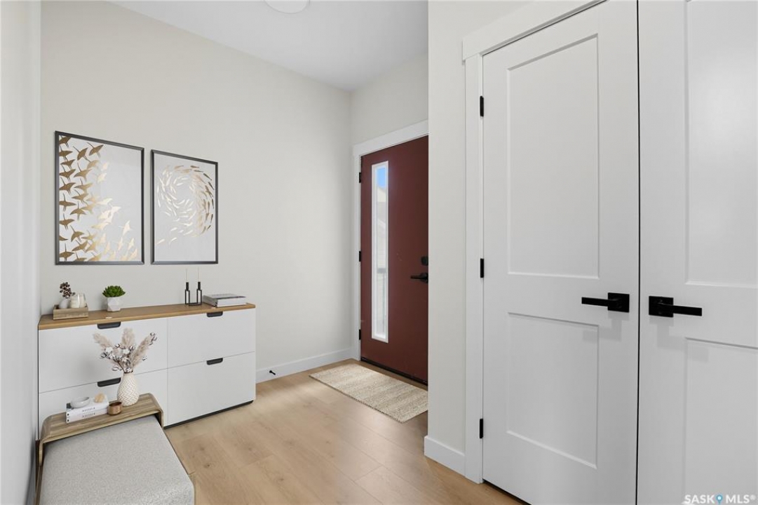 Welcome to the "Summit" Edgewater's newest plan in the desirable neighbourhood of Brighton. This 2 storey is sure to impress. Entering from the drywalled and insulated garage, you step into a mud room with a bench and hooks to store your outerwear. You continue through the walk through pantry into the spacious kitchen has lots of cabinets, quartz countertops and beautiful tiled backsplash. The island is 7' long with an eating ledge. Over sized patio doors in dining room. The living room has 18' ceilings, giving the home a very large presence and large windows in the living room create a spacious light filled area. The fireplace centers the room and finishes it nicely. On the second floor, the Primary bedroom includes a feature wall, the ensuite has double sinks in the vanity and a beautifully tiled shower and a stand alone tub. You will find 2 secondary bedrooms and a 4 piece bath as well. 2nd floor laundry completes this floor. All Pictures may not be exact representations of the home, to be used for reference purposes only. Errors and omissions excluded. Prices, plans, specifications subject to change without notice. All Edgewater homes are covered under the Saskatchewan New Home Warranty program. PST & GST included with rebate to builder.
