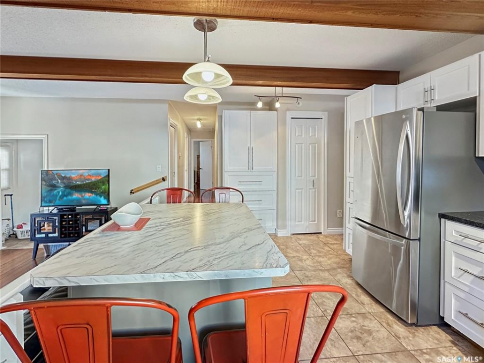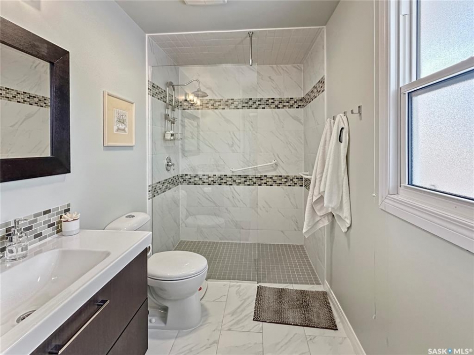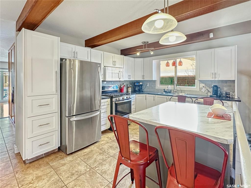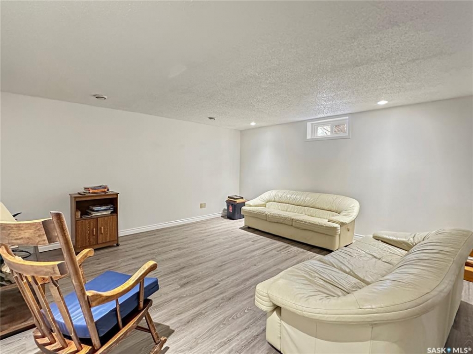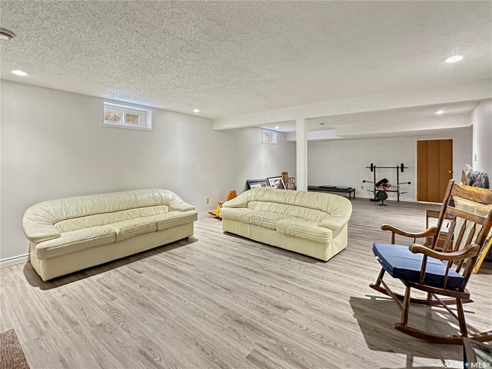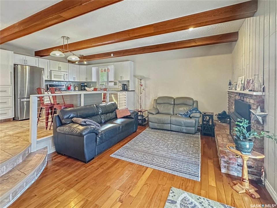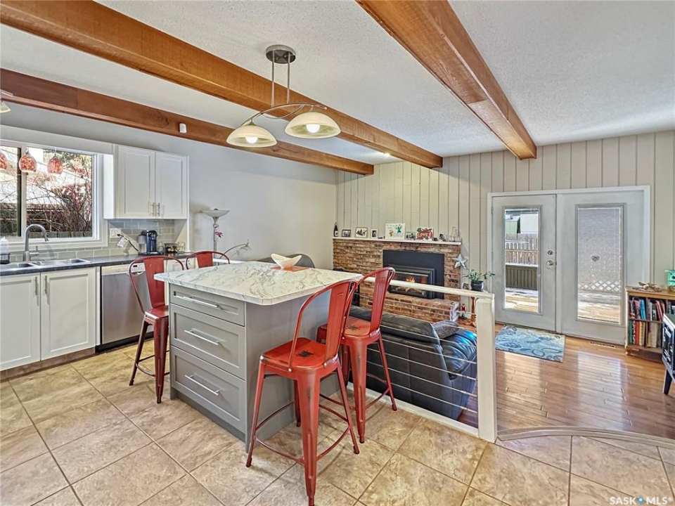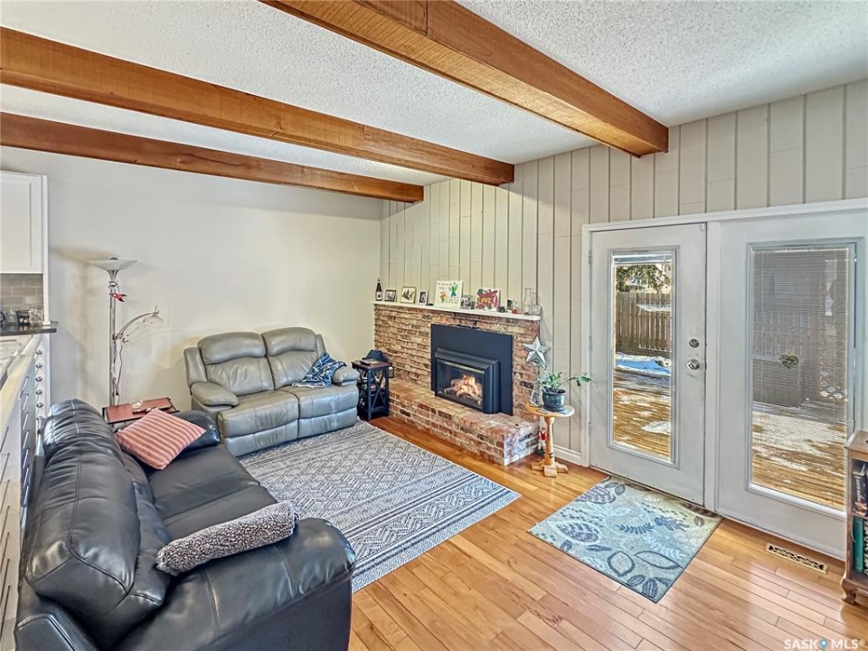 Immaculate, sprawling bungalow in the sought-after Albert Park neighbourhood! This beautifully maintained home has seen numerous upgrades, including fresh paint, a modernized kitchen (2019), and a stunning primary ensuite featuring a walk-in shower and heated tile floors. Updated windows and siding with rigid foam insulation enhance both comfort and efficiency. Gleaming hardwood floors flow throughout the main level, while the cozy gas fireplace and exposed beams create a striking focal point in the inviting family room. The rubberized driveway (2020) leads to the attached garage, offering both durability and curb appeal. Outside, the property is thoughtfully landscaped with a fully fenced backyard—ideal for kids and pets. The fully developed basement offers two additional bedrooms, a combined laundry/bathroom, and a massive recreation room, providing excellent space for family living, entertaining, or a home gym. With ample storage throughout and a versatile layout, this home is perfectly suited for any size of family, offering a total of 5 bedrooms and 3 bathrooms in an exceptional location.