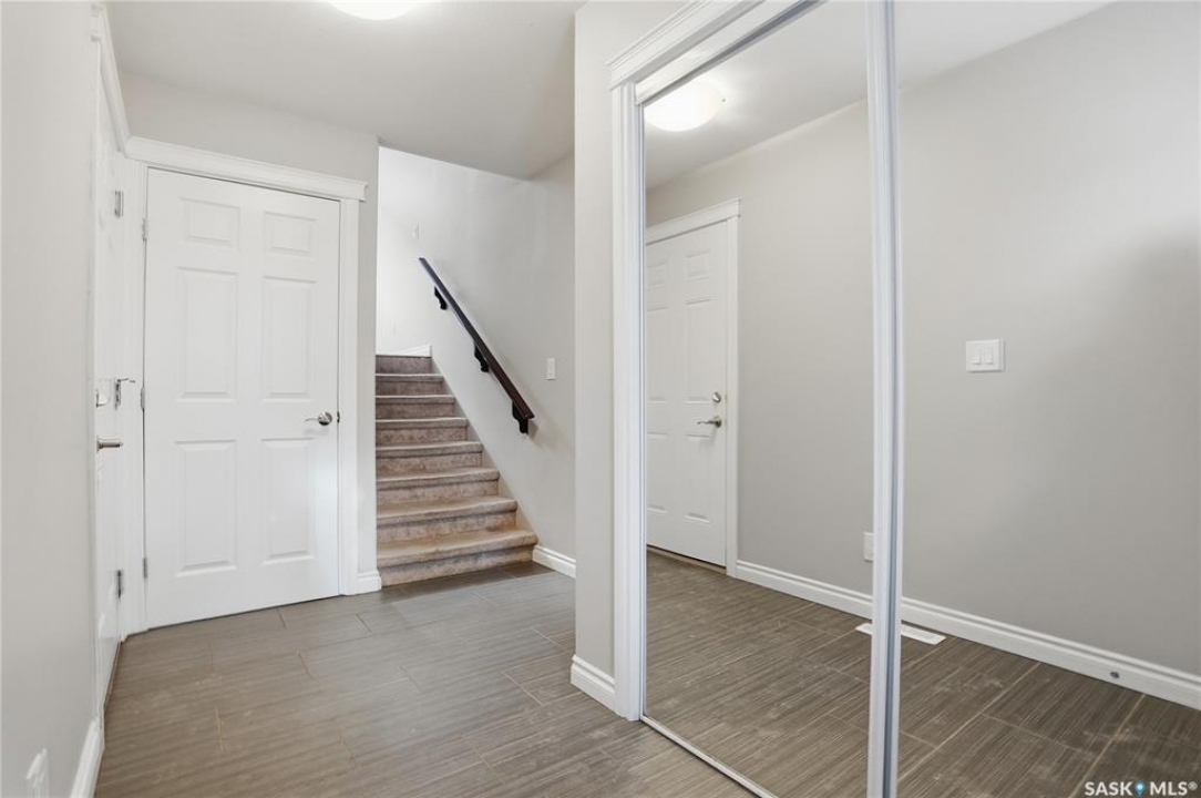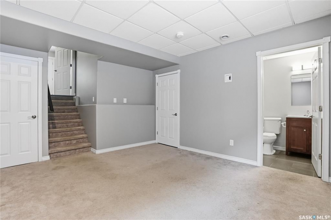 Welcome to this beautifully maintained end-unit townhouse in the highly sought-after Stonebridge community. Ideally located close to parks, walking paths, shopping, restaurants, and transit, this move-in-ready home presents an excellent opportunity for homeowners and investors alike. A rare and standout feature of this property is its three spacious bedrooms, each complete with its own full bathroom, an exceptional layout seldom found in townhome living. The main floor offers a welcoming foyer with ample storage, durable tile flooring, and direct access to the single attached garage. The second level features a bright and open living space highlighted by soaring 12-foot ceilings, large windows, and access to a private deck, perfect for relaxing or entertaining. The modern kitchen is thoughtfully designed with dark cabinetry, stainless steel appliances, granite countertops, and a tile backsplash, opening seamlessly to a generously sized dining area. This level is completed by a convenient two-piece bathroom and laundry room. Upstairs, the primary bedroom provides excellent space, abundant natural light, two walk-in closets, and a four-piece ensuite. The second bedroom on this level also includes a walk-in closet and its own four-piece ensuite. There is also a small bonus area ideal for a desk or home office. The fully finished basement adds even more versatility with a third bedroom, complete with its own four-piece ensuite, making it ideal for guests, extended family, or additional rental flexibility. This well-designed townhome offers comfort, functionality, and a truly unique layout in one of Saskatoon's most desirable neighbourhoods.