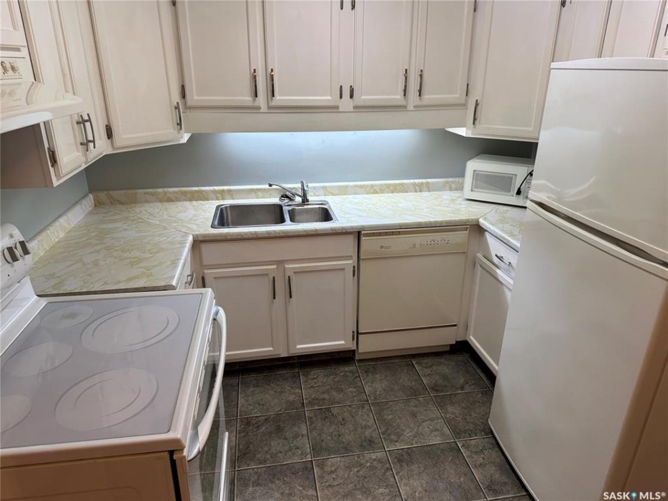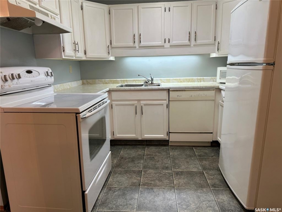 AFFORDABLE living in this well-maintained 2-bedroom, 1-bath condo located in the heart of downtown Weyburn. This safe secure building offers peace of mind. The unit features large windows that flood the basement suite with natural light. The condo includes a fridge, stove, and built-in dishwasher for added convenience. Outside designated parking is included, along with a generous storage space located on the top floor. Clean, bright, and move-in ready—an excellent opportunity for first-time buyers, investors, or those looking to downsize.