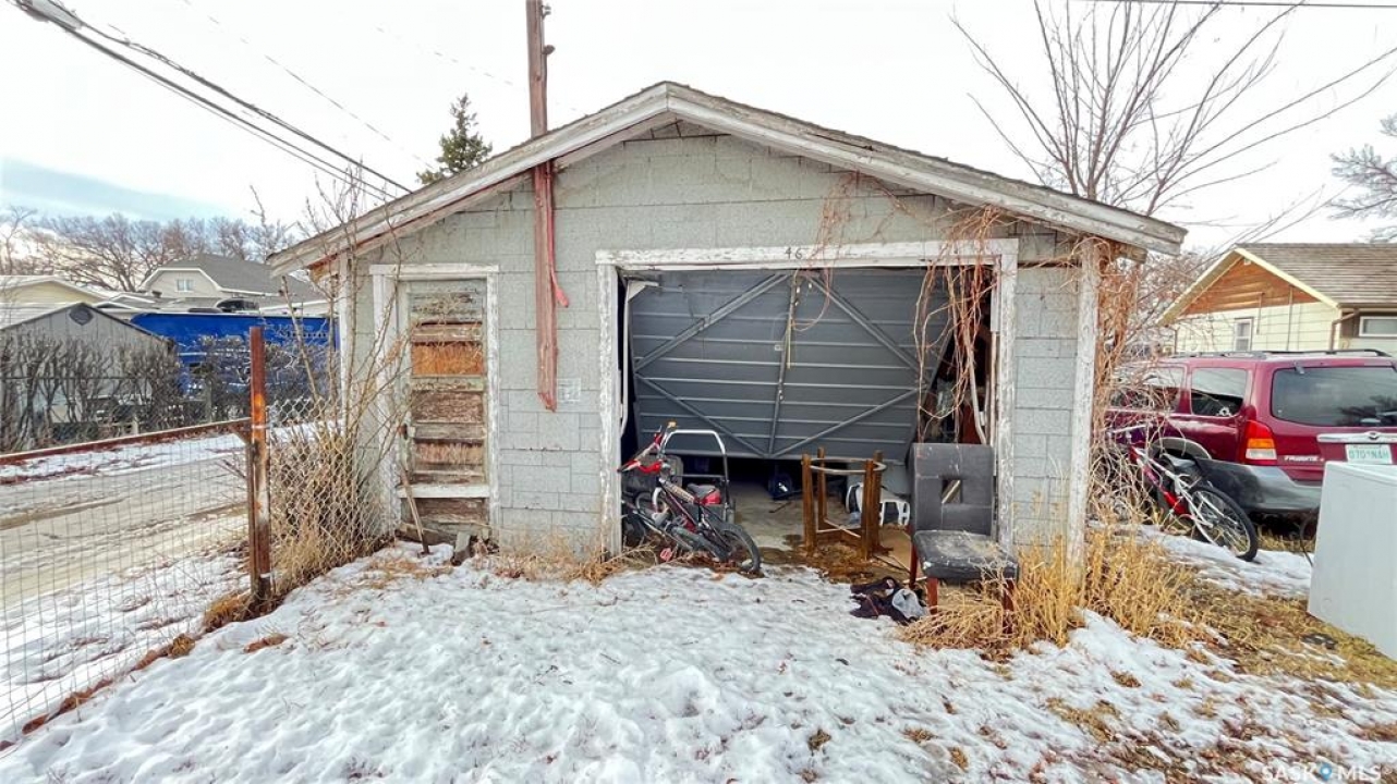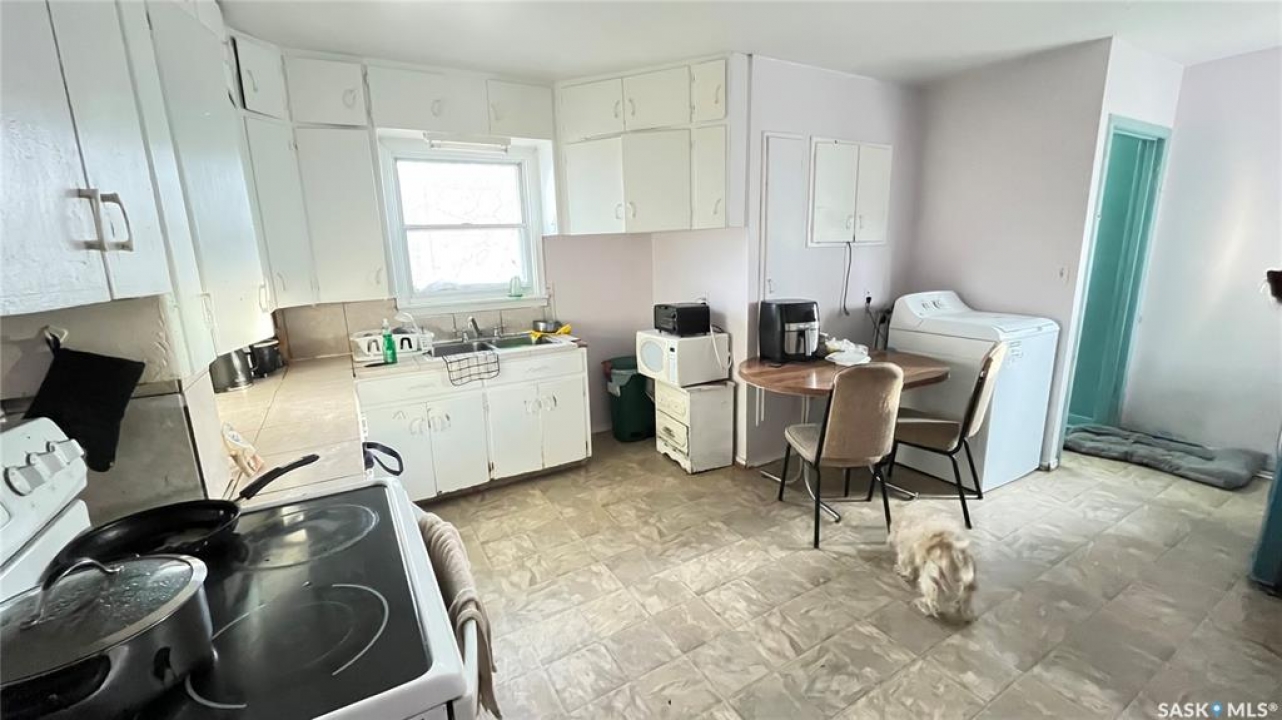 This delightful 4-bedroom, 1-bathroom home in Maple Creek's commercial district is sure to pleasantly surprise you. With updated floors and a spacious kitchen currently housing the laundry, you'll find plenty of potential to reimagine the space—whether by creating a dedicated laundry room or expanding the bathroom to include laundry facilities. Easy access to plumbing from the approximate 6.5 foot crawl space another bathroom could be added as well. The generous yard features two garages that, with some TLC, could become great assets. Zoned commercial yet grandfathered as a residential non-conforming property, this home offers unique flexibility and is perfectly situated just steps from the grocery store and local shopping amenities. Stop paying rent and buy this affordable starter home or open your own business with 21 highway exposure. Opportunities are endless. Call for a tour.
