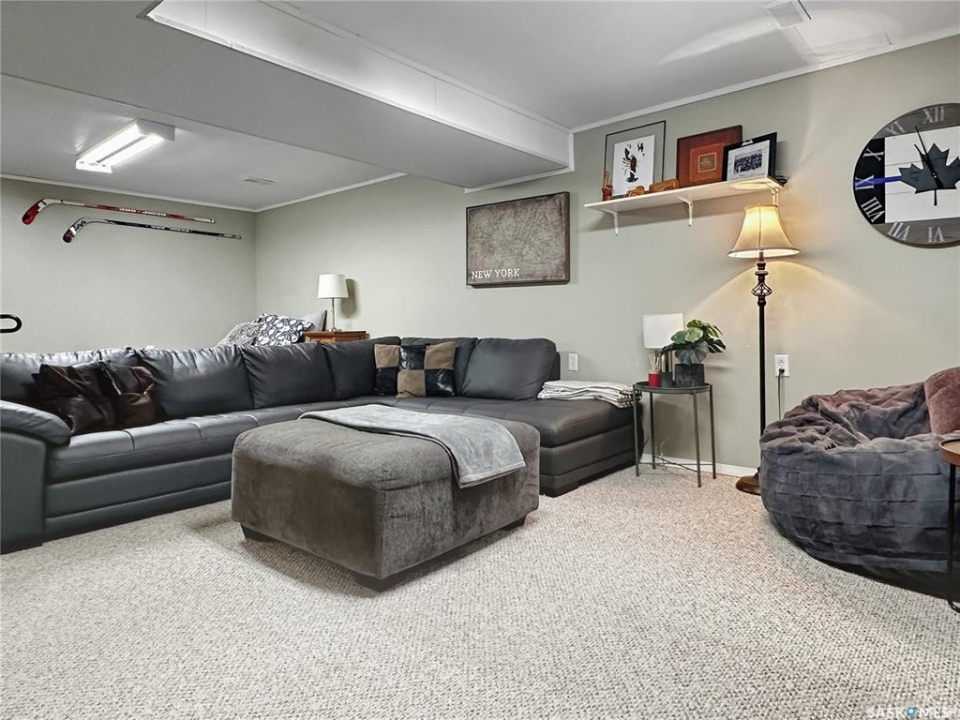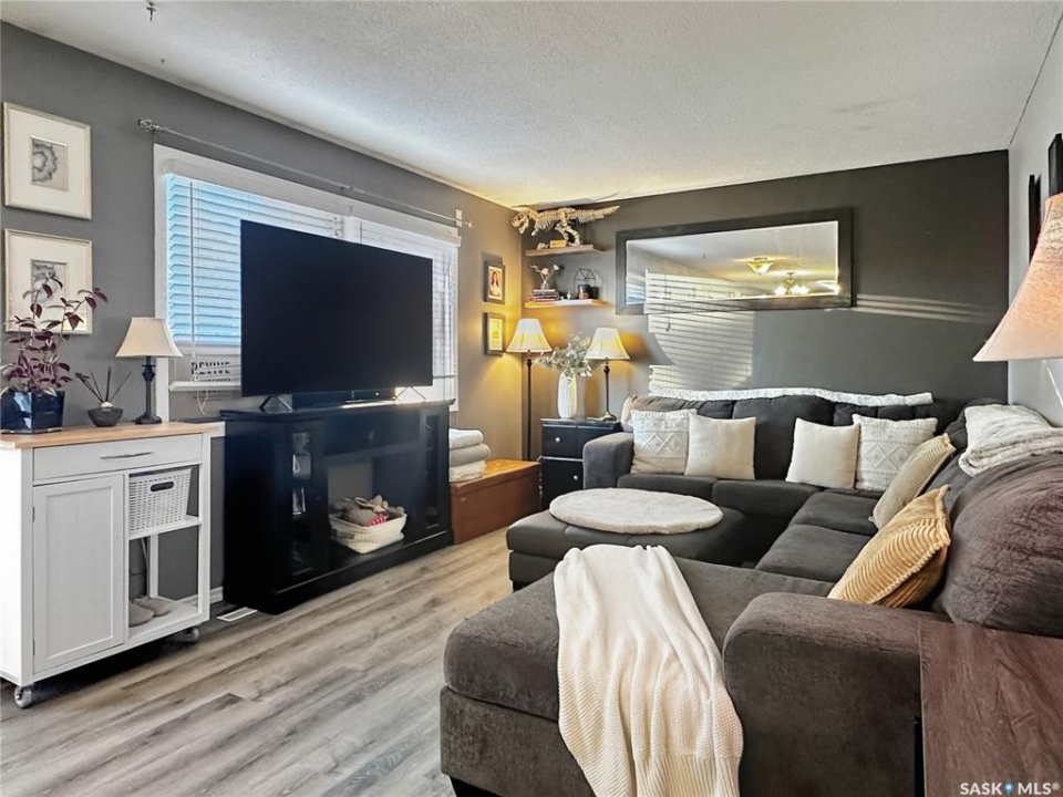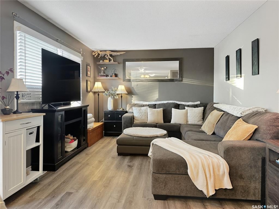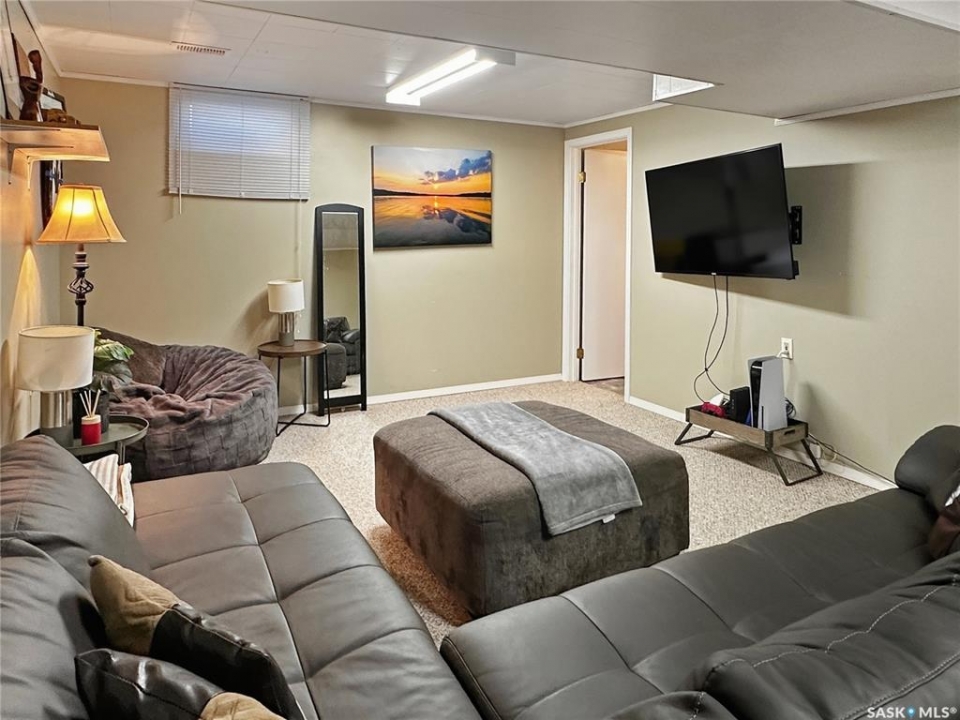 Welcome to this charming, move-in-ready home located on a quiet, family-friendly street in the Town of Battleford. Offering 828 sq. ft. of thoughtfully designed living space, this property is ideal for families, first-time buyers, or retirees seeking the ease of main-floor living. The open-concept kitchen, dining, and living area creates a bright and welcoming atmosphere, perfect for everyday living and entertaining. The kitchen features updated stainless steel appliances, all of which are included. All three bedrooms are conveniently located on the main floor, along with a 3-piece bathroom featuring a deep soaker tub. Main-floor laundry is also located upstairs, adding to the home's practical layout. The fully finished basement offers a cozy family room—perfect for movie nights or relaxing—along with excellent storage space and a 3-piece bathroom with a walk-in shower as well as a den, providing extra comfort and flexibility. Enjoy the convenience of a single attached garage that is heated and insulated, with direct entry into a spacious mudroom. Step outside to an updated front deck, ideal for morning coffees or evening beverages after a long day. The fully fenced yard includes a shed for outdoor storage. Air conditioning has been added for comfort during warm summer months. With a layout that suits many different lifestyles and strong resale appeal, this well-maintained home is one you won't want to miss. Call today to book your personal tour!