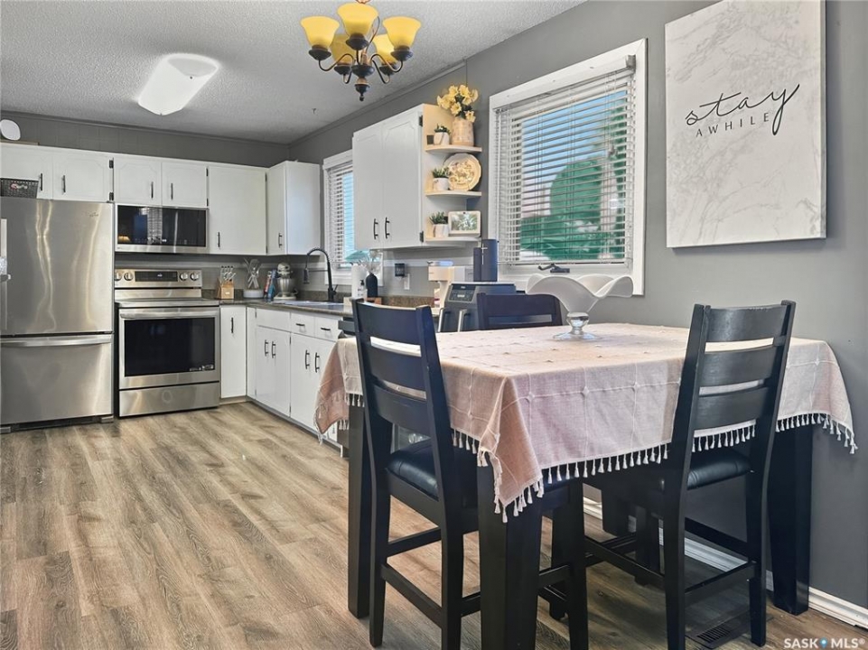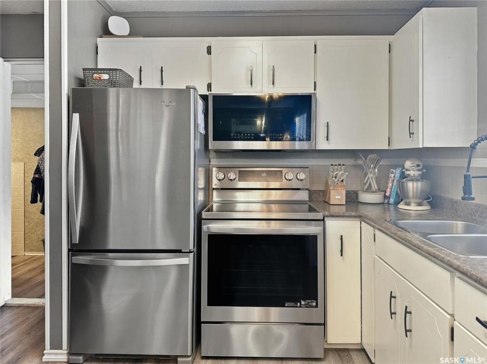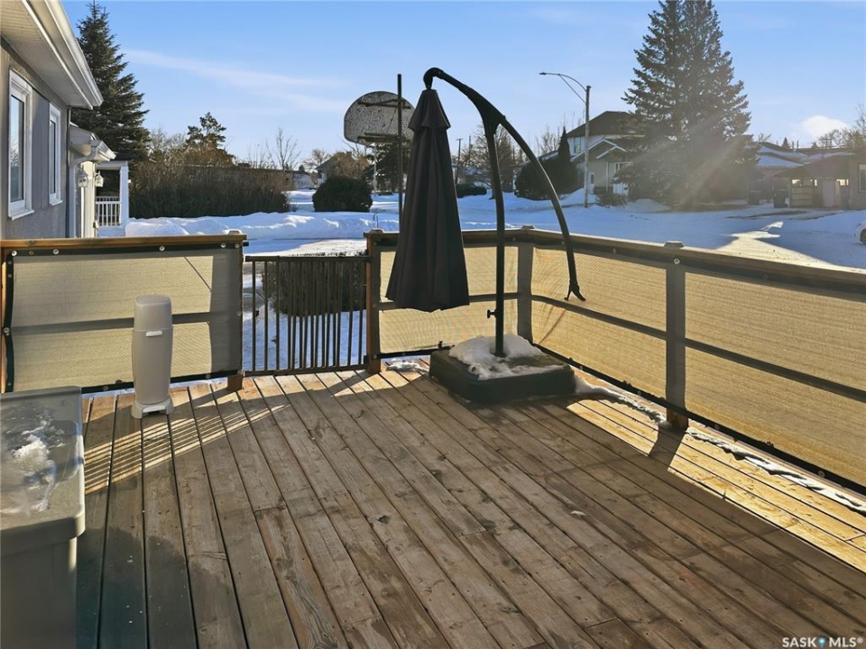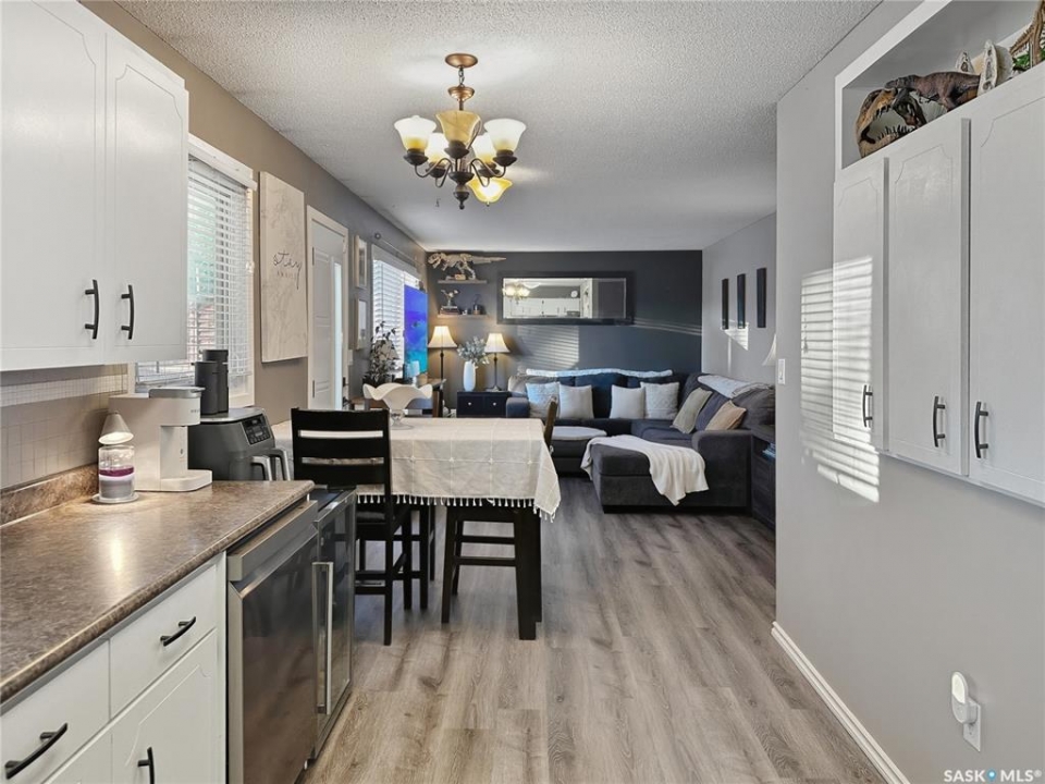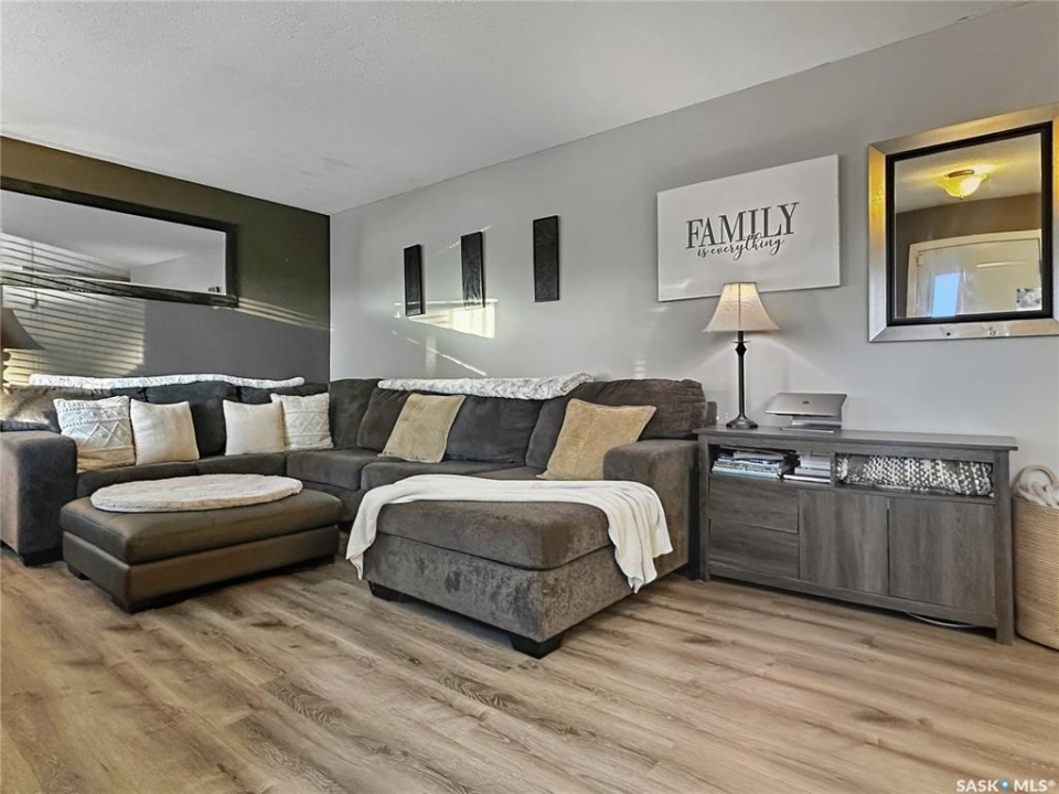 Welcome to this charming, move-in-ready home located on a quiet, family-friendly street in the Town of Battleford. Offering 828 sq. ft. of thoughtfully designed living space, this property is ideal for families, first-time buyers, or retirees seeking the ease of main-floor living. The open-concept kitchen, dining, and living area creates a bright and welcoming atmosphere, perfect for everyday living and entertaining. The kitchen features updated stainless steel appliances, all of which are included. All three bedrooms are conveniently located on the main floor, along with a 3-piece bathroom featuring a deep soaker tub. Main-floor laundry is also located upstairs, adding to the home's practical layout. The fully finished basement offers a cozy family room—perfect for movie nights or relaxing—along with excellent storage space and a 3-piece bathroom with a walk-in shower as well as a den, providing extra comfort and flexibility. Enjoy the convenience of a single attached garage that is heated and insulated, with direct entry into a spacious mudroom. Step outside to an updated front deck, ideal for morning coffees or evening beverages after a long day. The fully fenced yard includes a shed for outdoor storage. Air conditioning has been added for comfort during warm summer months. With a layout that suits many different lifestyles and strong resale appeal, this well-maintained home is one you won't want to miss. Call today to book your personal tour!