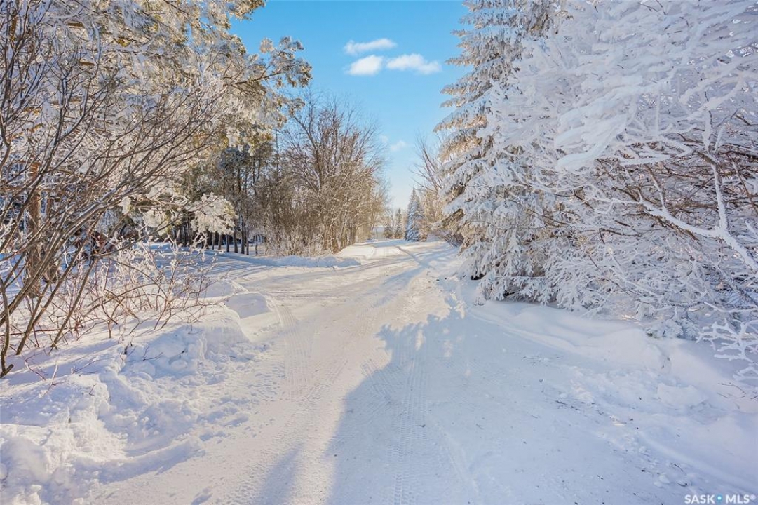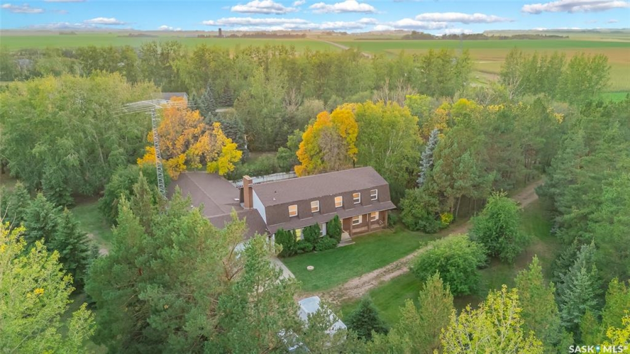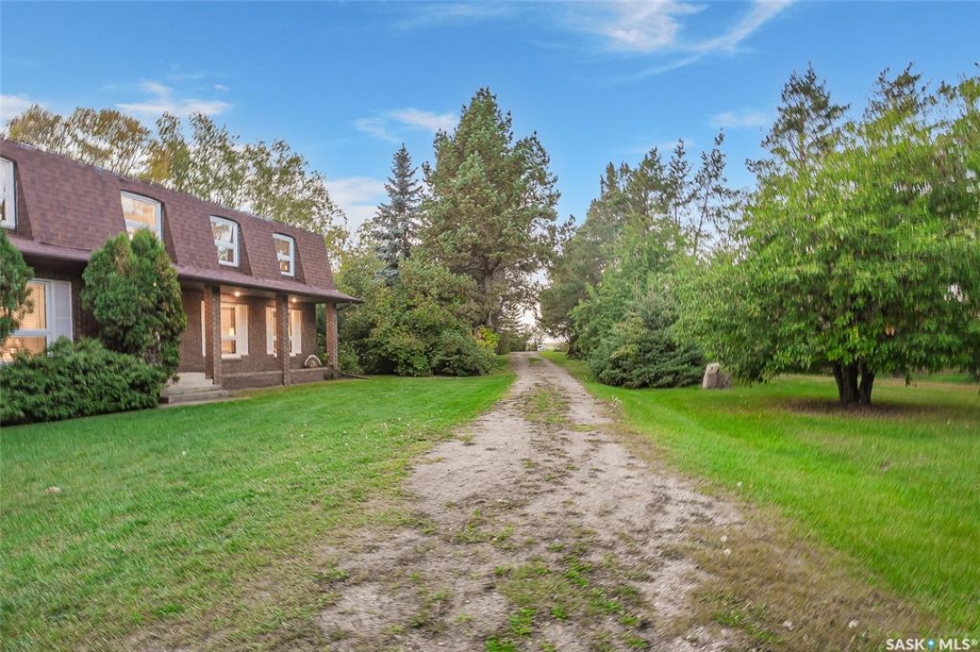 Welcome to one of Gruenthal Road's most iconic residences, a nearly 4,600 sq. ft. two-storey home built in 1977 and cherished by the same family since 1988. Sitting on 9.94 well treed and private acres with pavement right to the driveway and direct access to the double lane highway. This grand estate offers endless potential with its 16x32 ft. indoor pool and hot tub, last used several years ago but professionally shut down, presenting the rare opportunity to revive it as a private oasis or reimagine the space into a multi-purpose recreational hall for events, sports, or a massive gym. The home itself features 5 bedrooms upstairs, including a sprawling master retreat with three closets, a jet tub, dual sinks, and a six-piece ensuite with tub/shower, toilet, and bidet, while the main floor offers a large laundry/mudroom, a sunroom with skylights, wet bar, and direct access to the fenced backyard and pool room, plus a large attached heated 28x28 double garage. Carefully maintained over the years with a new boiler in 2011, shingles redone within the last 10 years, newer front windows within 5 years, central A/C, and new blinds throughout, this home is full of character with its wood-burning fireplace (never used) and timeless 70s design. The acreage is fully fenced and horse/hobby farm ready, serviced by a 200 ft. well, and includes a powered Quonset for vehicle storage plus a large stable/shop with two oversized box stalls and tack/storage rooms, making it ideal for multi purpose. With its impressive scale, rich history, and endless flexibility, this is more than a home—it is a legacy property offering privacy, space, and vision just minutes from the city. You MUST see this home!