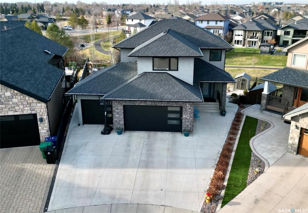 Welcome to 519 Bennion Terrace, quietly located in the highly sought after Willowgrove neighbourhood. This stunning 2,401 sq. ft. two-storey walkout was thoughtfully built by Landell Homes for a family member. Featuring a heated triple car garage, 5 bedrooms and 4 bathrooms and boasts over 3,500 sq. ft. of total living space while sitting on an large 10,714 sq. ft. lot and is sure to impress. The bright main floor welcomes you with an inviting living room highlighted by a gas fireplace, alongside a spacious kitchen and oversized quartz island with seating for six. Large windows flood the beautifully designed main floor with natural light while showcasing the serene, park-like backyard. Off the dining area, step onto the covered deck that is complete with a natural gas BBQ hookup and stairs leading down to the yard. Upstairs you'll find a versatile family room and second floor laundry. The master bedroom offers a retreat of its own, featuring a spacious walk-in closet and a luxurious five piece ensuite. The walkout basement is ideal for entertaining, offering a fantastic space to enjoy movie nights or the big game on a projector screen. This level is complete with surround sound, wet bar, games area, and in-floor heating to keep things warm and comfortable during the winter months. The fully finished and heated garage measures 33 ft wide and 24 ft deep on the double and 20 ft deep on the single. The expansive backyard includes raised garden planters and a fire pit area which previously accommodated a children's playhouse and swing set. Designed with a gentle grade, the yard maximizes usability and offers ample space for a future pool, if desired. With numerous additional features and upgrades this home truly must be seen to be appreciated and comes with amazing neighbours. Contact your favourite REALTOR � for a complete list of extras and to arrange your private showing today!