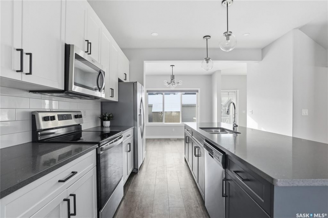 Welcome to this Ehrenburg-built semi-detached home in the desirable Brighton community, ideally located near future schools, large parks, and scenic walking trails. This beautifully designed 1,520 sq. ft. two-storey home offers a bright, open-concept main floor that is both functional and inviting. The kitchen is a standout feature, complete with a spacious sit-up island, custom cabinetry, quartz countertops, pantry, built-in exterior-vented over-the-range microwave, and a large west facing back window that floods the space with natural light-a lovley backdrop for family meals or entertaining. The spacious back entry features built-in coat & boot storage, adding convenience and storage for busy households. Upstairs, you'll find three bedrooms, including a generous primary suite with a walk-in closet and a four-piece ensuite featuring large shower and dual-sink vanity. A bonus room on the second level adds flexible space for a home office, playroom, or lounge. The professionally finished basement is virtually untouched, offering a bedroom, full bathroom, and recreation area—providing excellent additional living space. Outside, xeriscape provides a low-maintenance, attractive backdrop—ideal for raised garden beds or outdoor gatherings. The back deck and 20 x 20 insulated, double garage complete the package. Additional upgrades include a large-capacity air conditioner and gas fireplace. This home has been exceptionally maintained and truly shows like new.