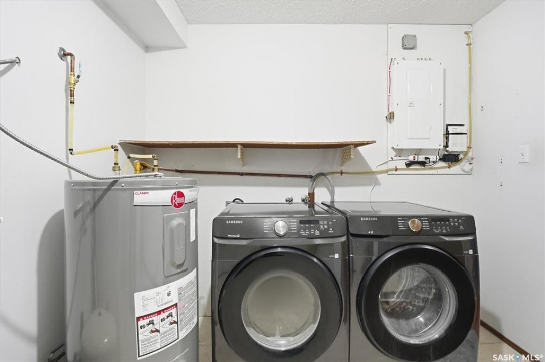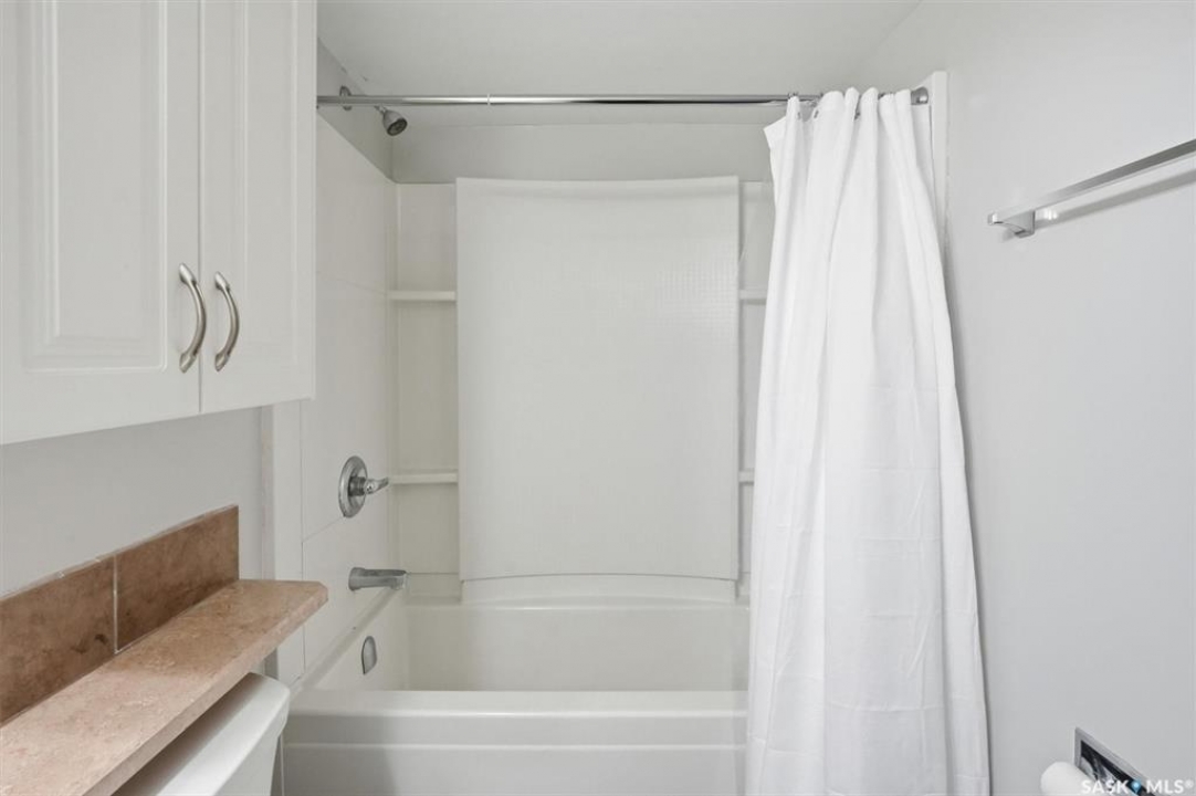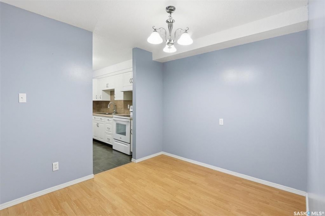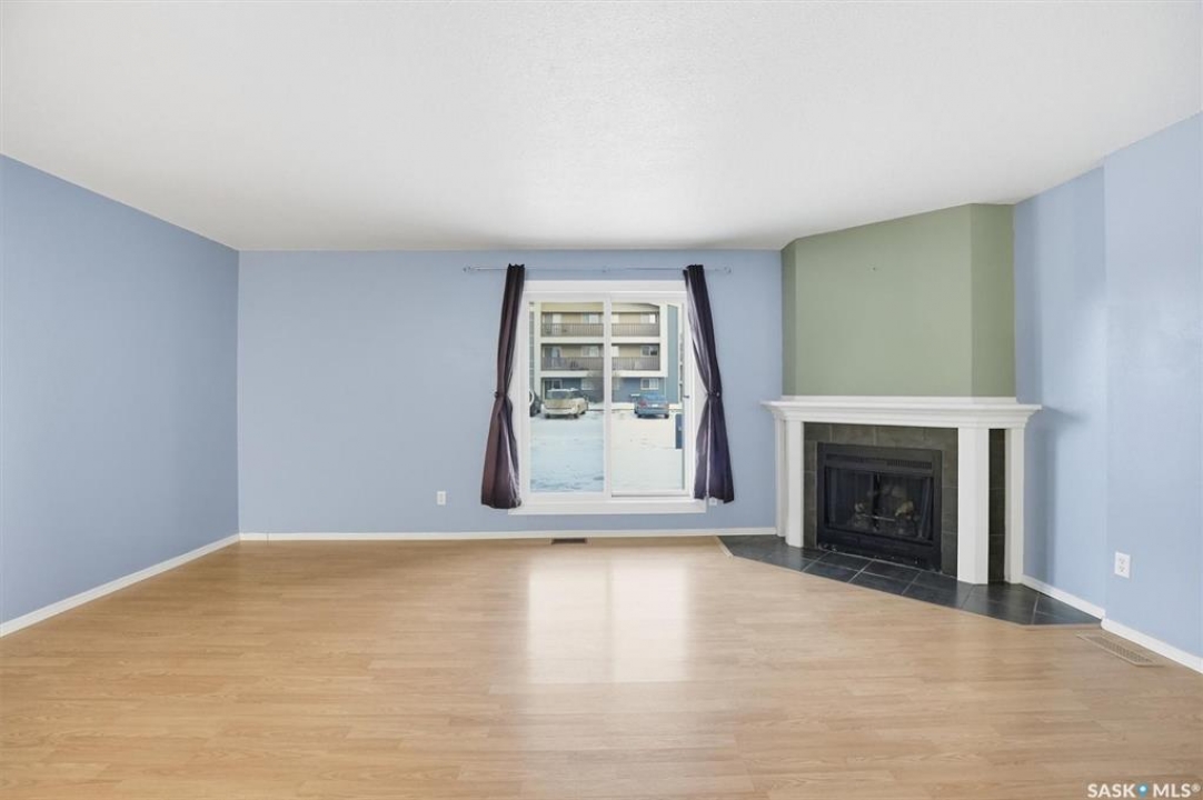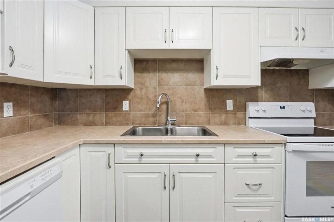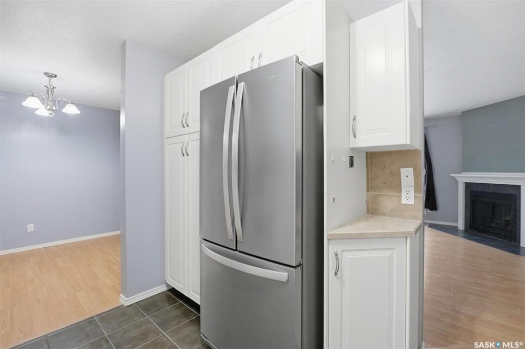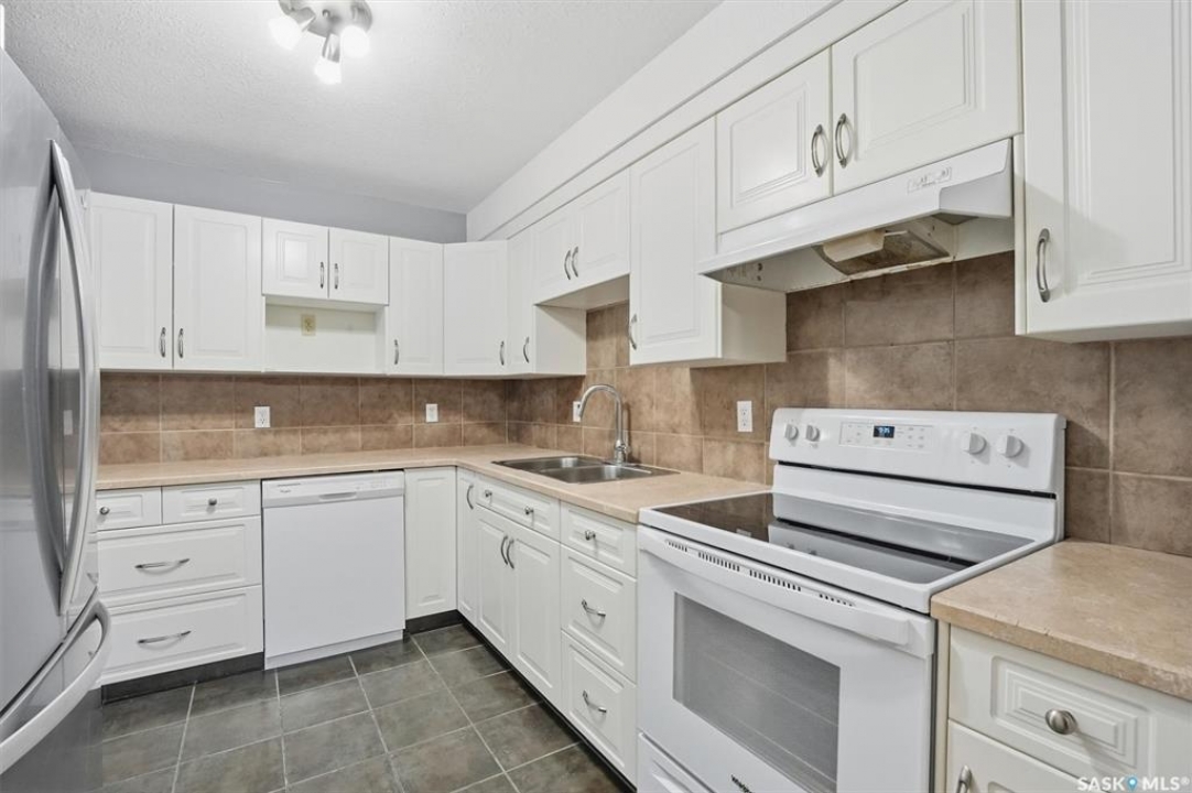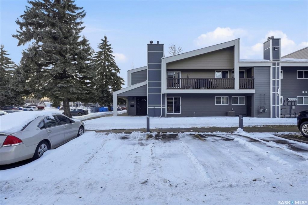 Spacious main-floor condo, offering a generous 1,313 square feet of beautifully maintained living space. From the moment you step inside, you will notice the seamless blend of comfort and modern updates that make this home truly move-in ready. The upgraded kitchen features sleek tile flooring and a full set of reliable appliances, including a fridge, stove, and dishwasher. Transitioning into the expansive family room, you are greeted by laminate flooring and a charming wood-burning fireplace. Large sliding doors open directly onto your private deck and patio area, extending your living space into the fresh air. The layout is thoughtfully designed with three spacious bedrooms, including a massive master suite that serves as a private retreat with its own convenient two-piece ensuite. A full four-piece bathroom serves the rest of the home, while a dedicated utility and storage room, complete with a washer and dryer. This property has been cared for, with significant exterior upgrades completed in 2017 including new windows and doors, alongside a newer furnace and water heater. Located in a prime Forest Grove location, this condo offers more than just a beautiful interior. Residents enjoy access to a common amenities room, perfect for hosting larger gatherings. The home is perfectly positioned within walking distance of local schools and picturesque walking paths, and its proximity to major bus routes provides a quick and easy commute to the University of Saskatchewan. This is a rare opportunity to secure a large, fully updated condo where every detail has been handled for you.
