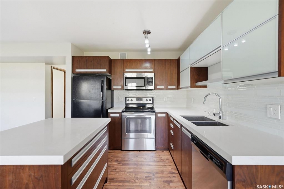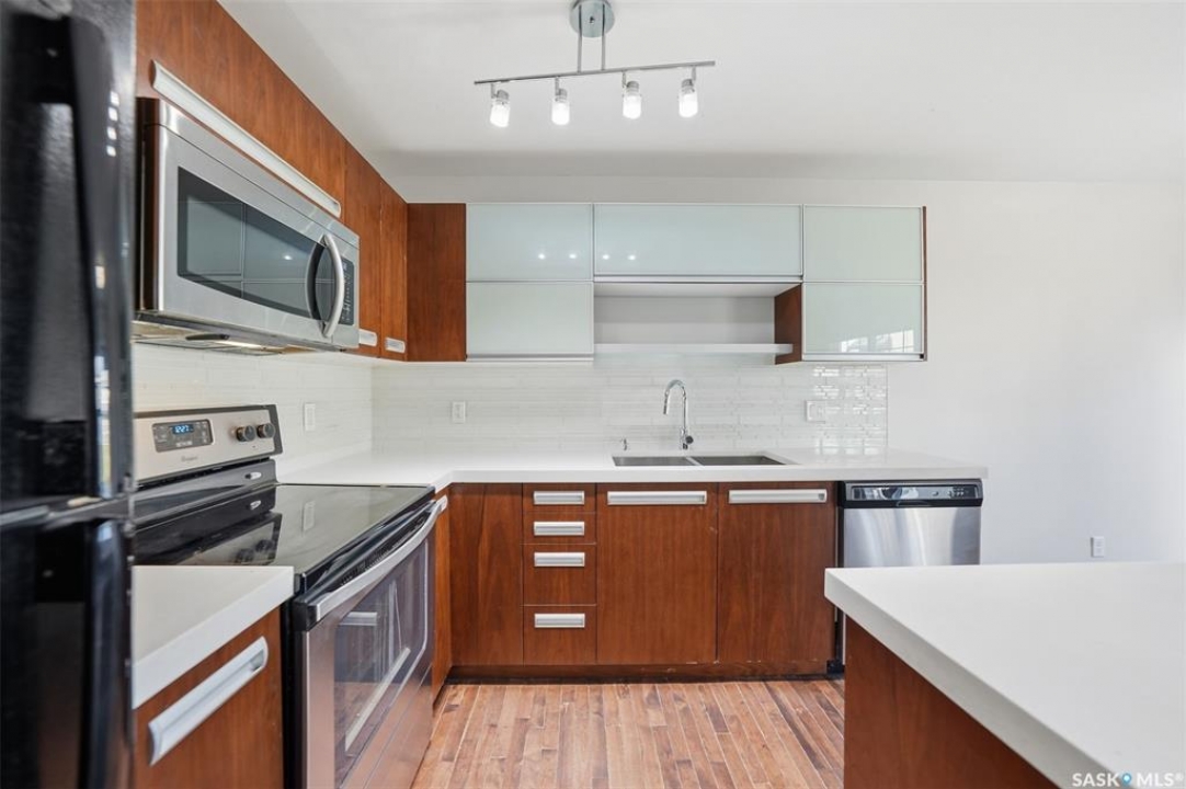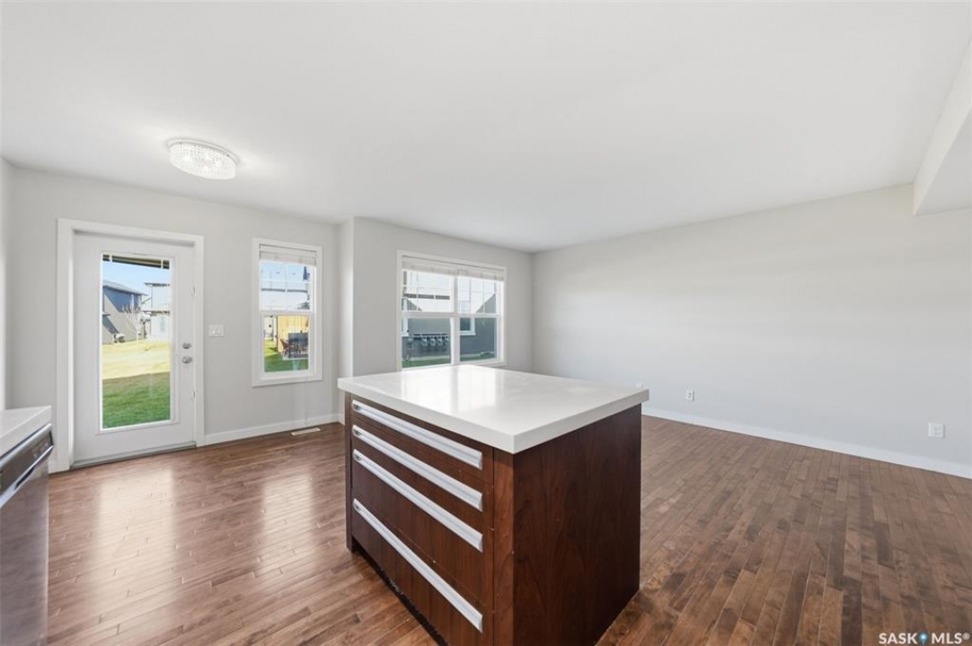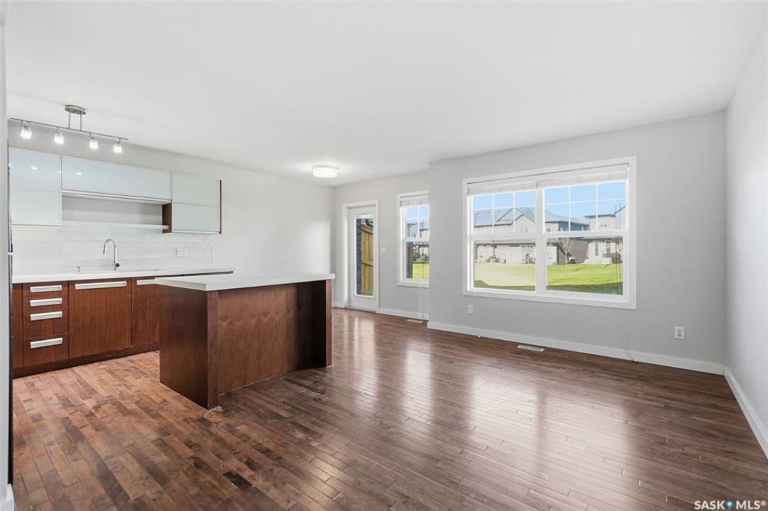 This townhouse is move-in ready, bright, and has a layout that just makes sense. The main floor has an open concept design with plenty of natural light, quartz countertops, hardwood floors throughout, and a great flow between the kitchen, dining, and living spaces. The kitchen has tons of storage, stainless steel appliances, and a large island that works perfectly for cooking or gathering around with friends. Upstairs, the primary bedroom gets lots of sunlight from the south facing windows and has a spacious walk-in closet along with a clean, four piece bathroom. The two additional bedrooms up here are a good size, great for kids, guests, or even a home office setup. The basement has been professionally developed and has never been lived in. It's bright and open, with space for a family room or workout area, plus a modern three piece bathroom and a separate laundry area tucked at the back. Outside, you've got your own private patio, perfect for BBQs or morning coffee, and access to a large well-kept community green space that gives you that extra bit of outdoor room without the maintenance. The one-car attached garage is a nice bonus for parking or extra storage. This townhouse really blends convenience, comfort, and modern style, all in a great Willowgrove location close to schools, parks, and walking paths.