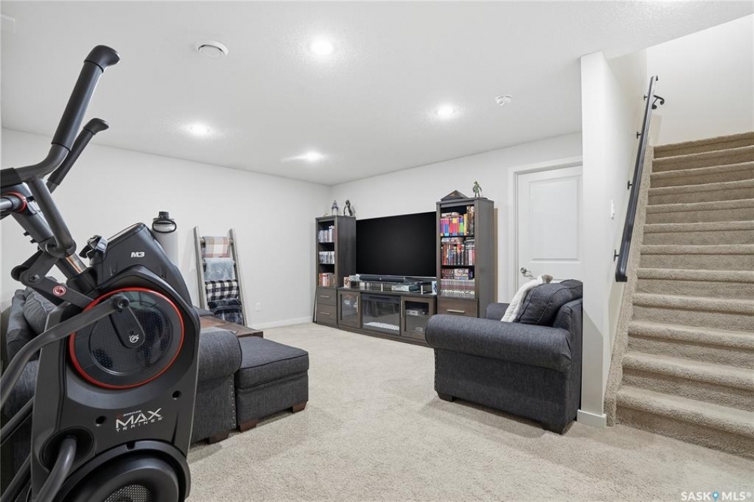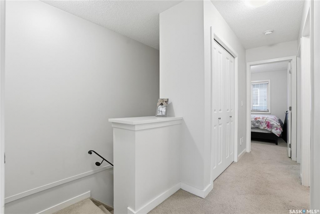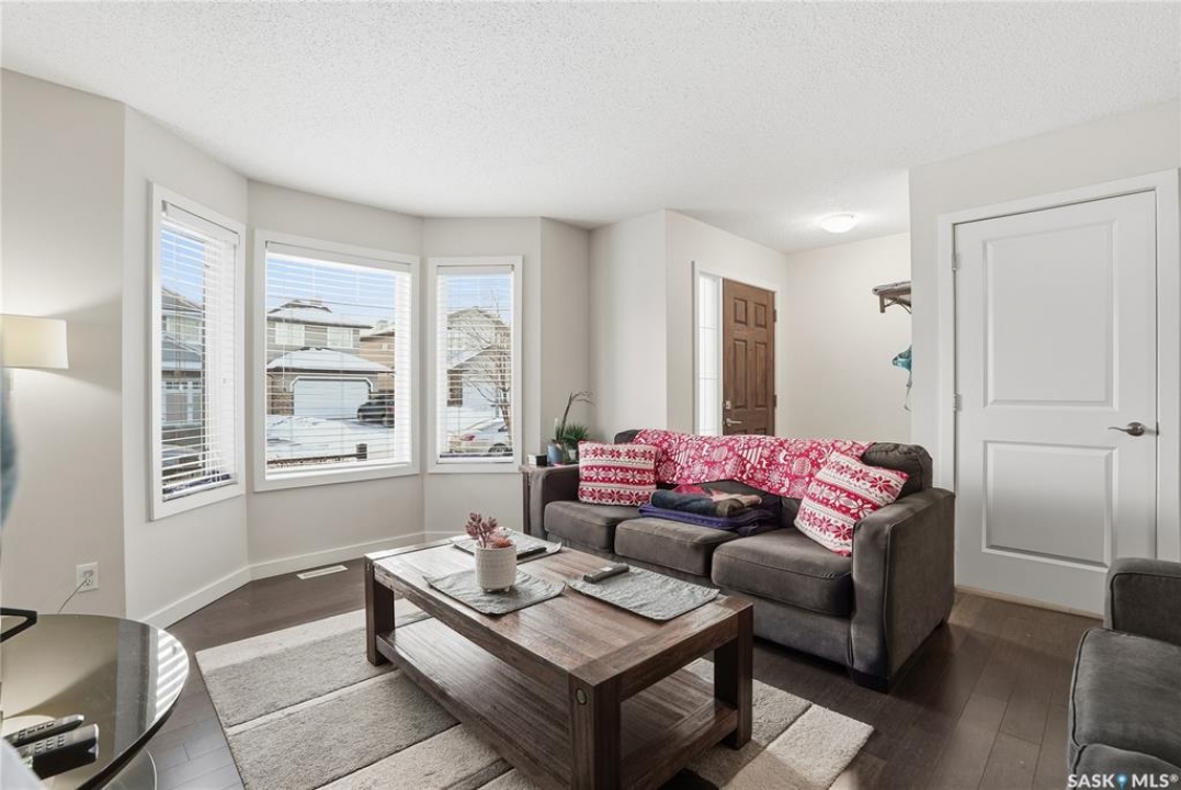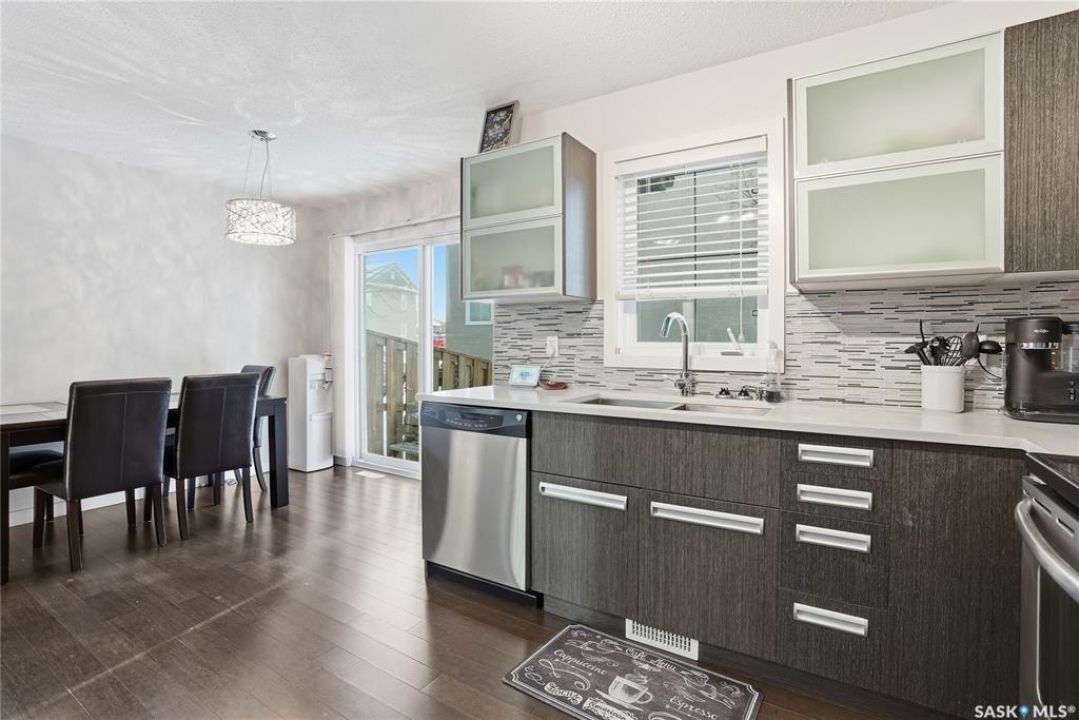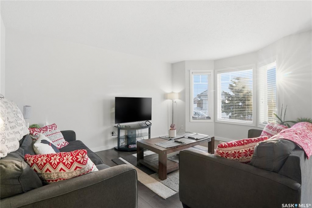 Bright, spacious, and ideally located, this middle-unit Sandpointe townhome in Stonebridge offers a perfect blend of style, comfort, and convenience. Enjoy an abundance of natural light, a functional layout, and a prime setting in one of Saskatoon's most desirable neighbourhoods. The home is ideally situated close to two elementary schools, parks & walking paths, grocery stores, restaurants, and other everyday amenities. The main floor features an open design ideal for both daily living and entertaining. A spacious living room, enhanced by the bay window, creates a warm and inviting atmosphere. The dining area flows seamlessly into the fully-equipped kitchen, complete with modern appliances, a stylish tile backsplash, and ample cabinetry. Stepping outside, you will find the outdoor patio, perfect for morning coffee, barbecuing with friends, or simply enjoying the fresh air. A convenient 2-piece bathroom completes the main level. Upstairs, you'll find three spacious bedrooms, including a primary suite with walk-in closet. A well-finished 4-piece bathroom serves the second level with both style and functionality. The fully finished basement provides valuable additional living space, featuring a large family room ideal for movie nights, a play area, or a home gym, along with a generous storage area to keep everything organized. Laundry facilities are also located on this level for added convenience. Additional highlights include central air conditioning, two parking stalls, off-street guest parking, and additional street parking directly in front of the unit available for guests and visiting family. Your furry friends are welcome here, as the pet policy has no weight limit. This move-in ready home shows beautifully, and has been well maintained. For those seeking a low-maintenance home in a vibrant, family-friendly community with exceptional convenience, this Sandpointe townhome is a must-see!
