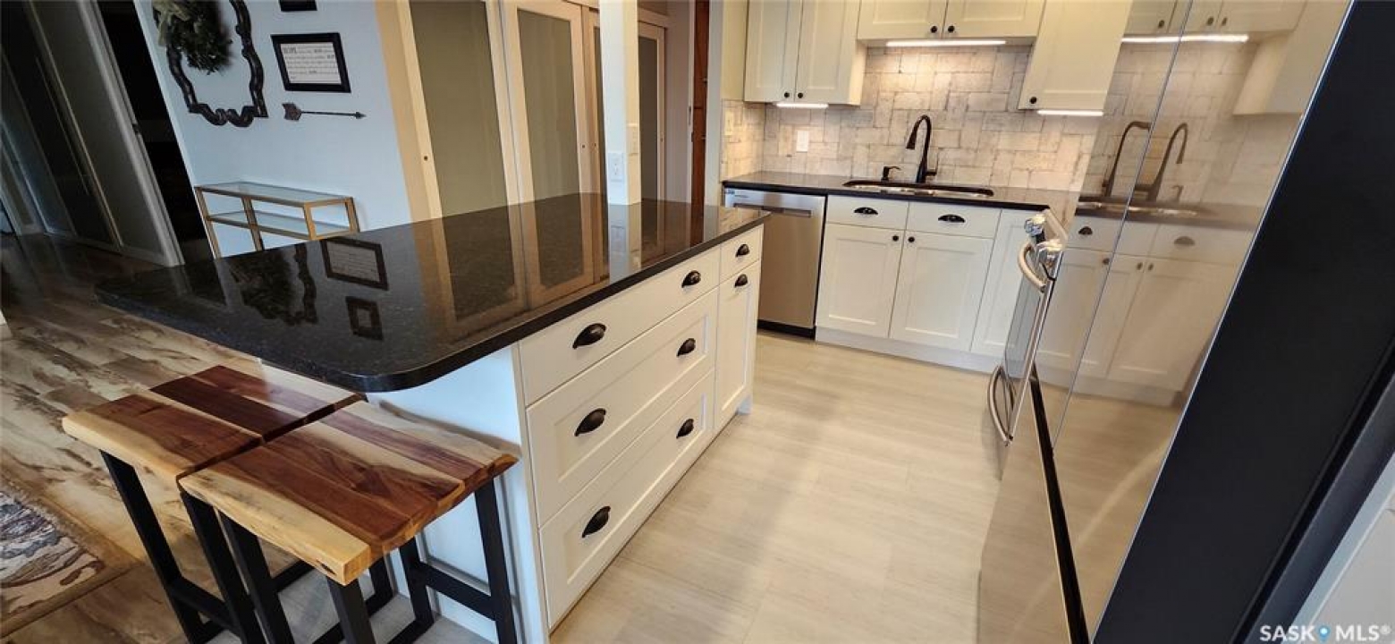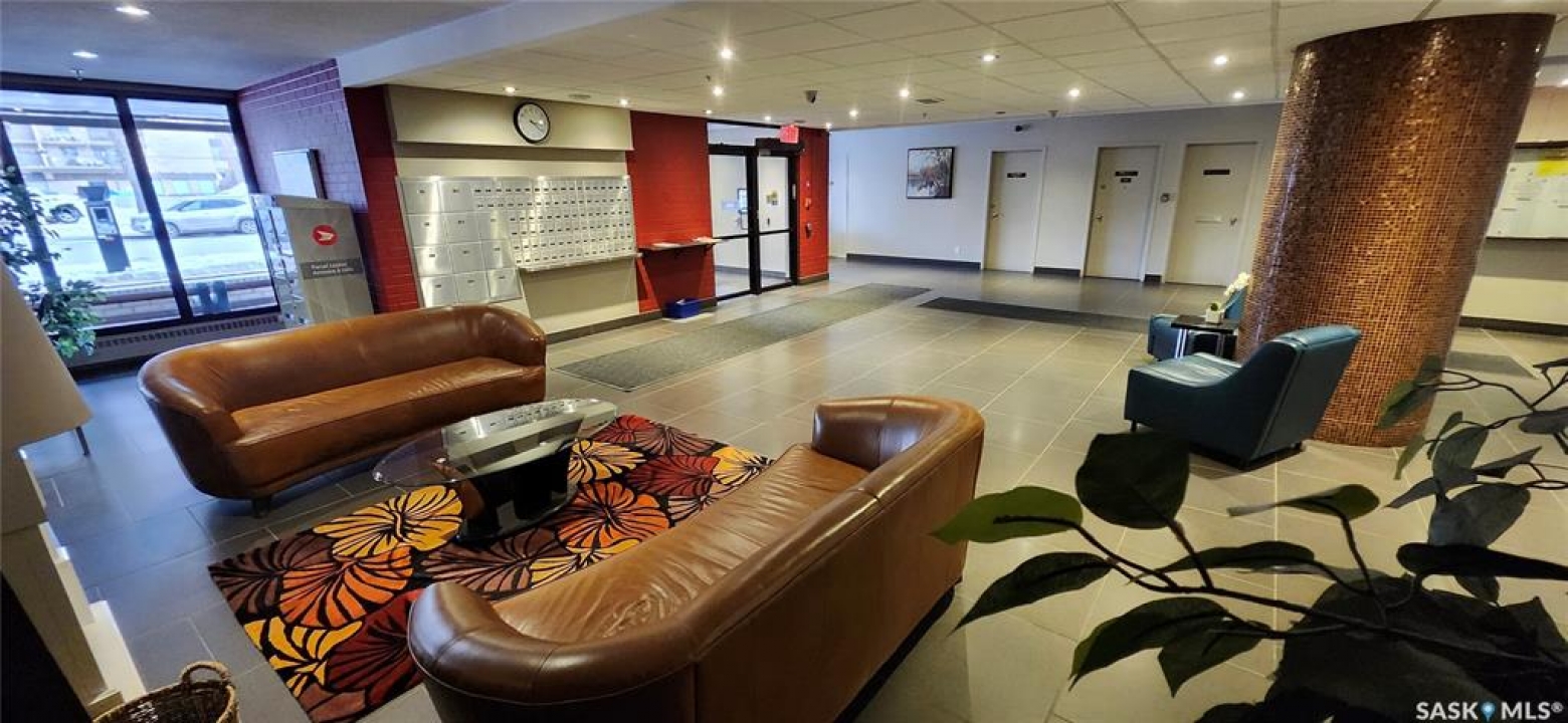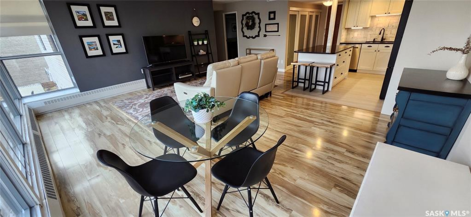 Convenient, luxurious downtown living in The Terrace condo building. Walk to the river, the U of S, & downtown amenities. This immaculate 2 bedroom / 2 bath 1076 sq ft condo is light and bright with a wall of floor to ceiling east facing windows. The new kitchen is sure to impress with quality white cabinetry, granite countertops, undermount double sinks, stainless steel appliances, updated lighting, and a huge island for food prep or entertaining. Attention paid throughout with customized closets, pantry, and storage room to maximize storage space. Boiler & forced air heat & central air conditioning keep you comfortable. Indoor heated parking. The Terrace building amenities include a swimming pool, hot tub, sauna, 4th floor community room & outdoor patio/BBQ area, a guest suite + a roof top patio for 22nd floor panoramic views. This unit and building are definitely worth a look!