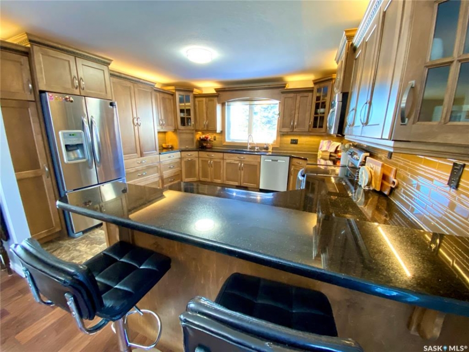 5 Marquis Cres N is ready for your family to enjoy. This immaculate home features over 2000 sq ft on 3 levels along with a finished basement to enjoy. As you enter the home, the large foyer greets you with multiple closets for coats and boots along with direct access to your 24' x 22' insulated garage. The front living room with its large windows facing south lets the natural light flow into the home. The kitchen is beautiful with an abundance of granite countertops and cabinet space along with a sit-up island. The dining adjoins the kitchen and allows for large family gatherings. Down a couple of steps, you will find a 2-piece washroom along with your laundry pair. Access to your fully fenced backyard oasis which contains concrete block stones, firepit area, raised stone flower beds and a beautiful deck area along with gas BBQ hookup. Back inside there is also a large additional family room complete with natural gas fireplace and also access to your backyard. Upstairs there are 4 bedrooms with the primary allowing for king-size furniture. A 4-piece washroom amongst the bedrooms completes this floor. Heading downstairs to the basement, the large rec room area complete with a wet bar and 4-piece washroom makes this an excellent space to hold large gatherings and setup your games tables or home theatre system. Additional large storage/play area for the kids with an abundance of storage that will manage all your extras to be stowed nicely. Situated in Silver Heights with a short walk to the elementary schools. Hospital and spray park area. Outside there is additional concrete parking pad for the boat, RV, or extra vehicles. This pristine home is what your family has been waiting for. Make it yours today!