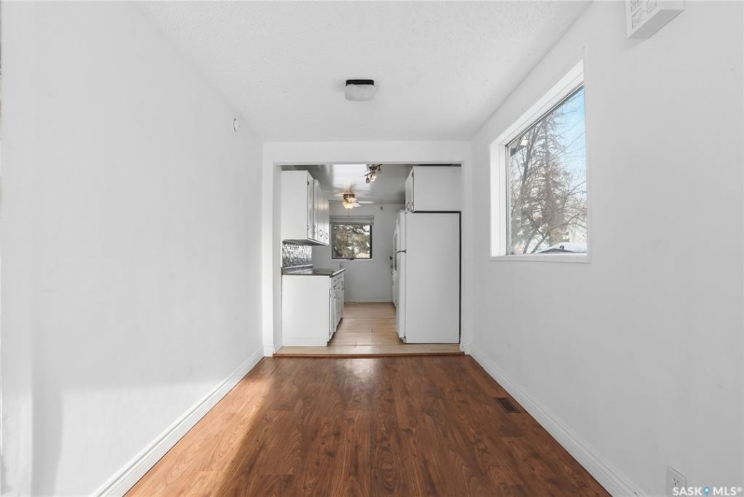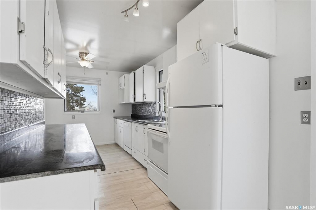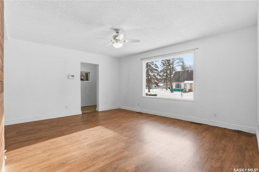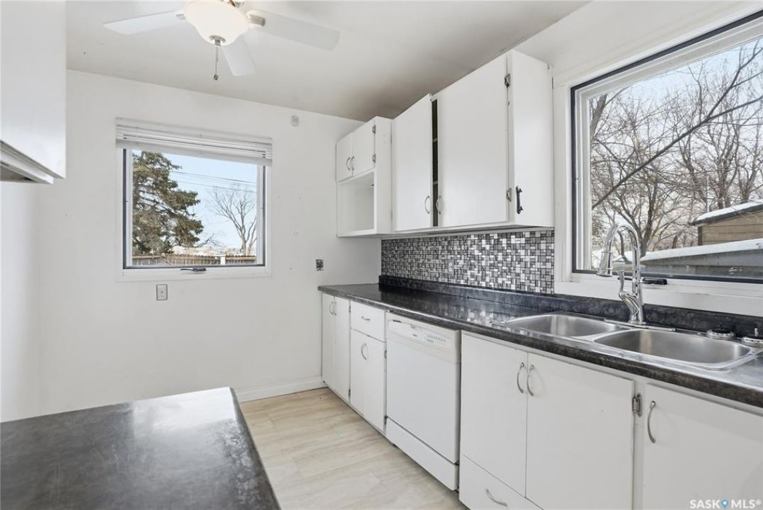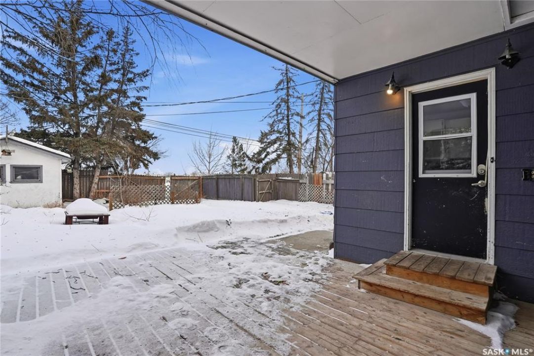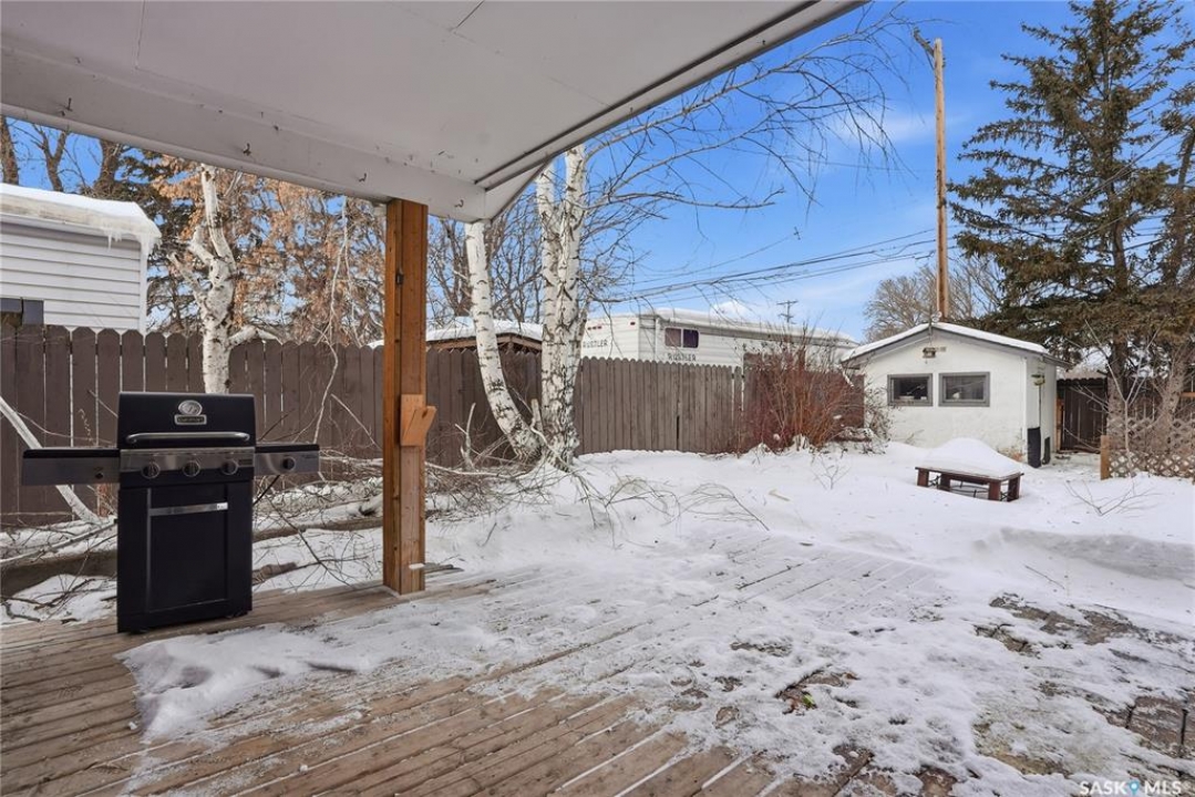 Welcome to 10 Connaught Place, a charming 903 sq ft bungalow tucked onto a quiet crescent in Saskatoon's Kelsey/Woodlawn neighbourhood. Built in 1957, this classic home has been refreshed for comfortable everyday living. Mature trees frame the front yard and the low-maintenance exterior delivers great curb appeal. Step inside to a bright, welcoming main floor with a spacious front living room, updated flooring and a fresh, neutral palette that's easy to personalize. A practical entry includes convenient closet storage to keep things tidy. The layout flows to the dining area and kitchen, where you'll appreciate crisp white cabinetry, a contemporary tile backsplash, generous counterspace and a window that keeps the space sunny while you cook. Down the hall are two comfortable bedrooms and a full bathroom. The fully developed basement adds excellent bonus space with a large family/rec room which can be used as a third bedroom, a second bathroom, dedicated laundry area and plenty of storage—ideal for a home office, gym, play space or movie nights. With an open footprint, you can create separate zones for entertaining, guests and hobbies and still have room to add your own finishing touches. Outside, enjoy a private backyard with space to relax, garden and host friends. A deck area is perfect for summer BBQs, and there's room for a firepit and play space. You'll also appreciate an oversized storage shed, extra parking and alley access. Located close to schools, parks, shopping, transit routes nearby and offering quick access to downtown and commuter routes, this 3 bedroom, 2 bathroom property is a fantastic option for first-time buyers, young families or investors looking for a move-in ready home in an established area. Don't miss it—book your showing today!