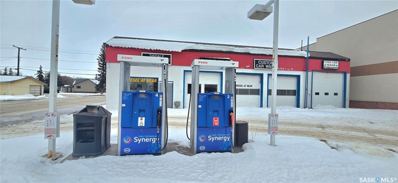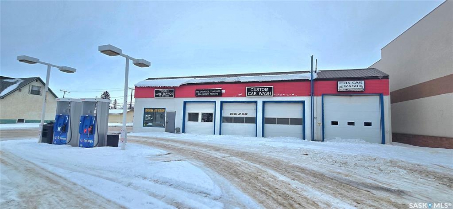 Prime downtown opportunity located on Main Street in Tisdale. This versatile commercial property has previously operated as a car wash, gas station, lube and repair shop, and custom cleaning business, offering excellent redevelopment or re-use potential. Strategically positioned with strong visibility and access in the heart of the community. The area is further supported by growing regional activity, including proposed aluminum mining developments planned near the town, which may contribute to future economic growth and increased demand. An ideal opportunity for investors, owner-operators, or developers seeking a well-located asset in an established downtown core. The original 56' x 30' building includes a two-bay service shop equipped with two hoists, making it ideal for a mechanic or automotive operator. An additional two-bay car wash totals approximately 1,020 sq. ft. A comprehensive list of equipment is included in the sale. The business currently have a Esso brand. Constructed in the 1960s, the original building features concrete block walls and a metal roof. The car wash bays, built in 1999, are wood-frame construction and fully metal-clad inside and out. The site includes a concrete front pad and fuel island, owned sign frames, two washrooms, an office/waiting area, ample storage, and generous on-site parking. An excellent opportunity for owner-operators or investors seeking a versatile, income-producing commercial property. Owner financing or lease option is available for the qualified purchaser.