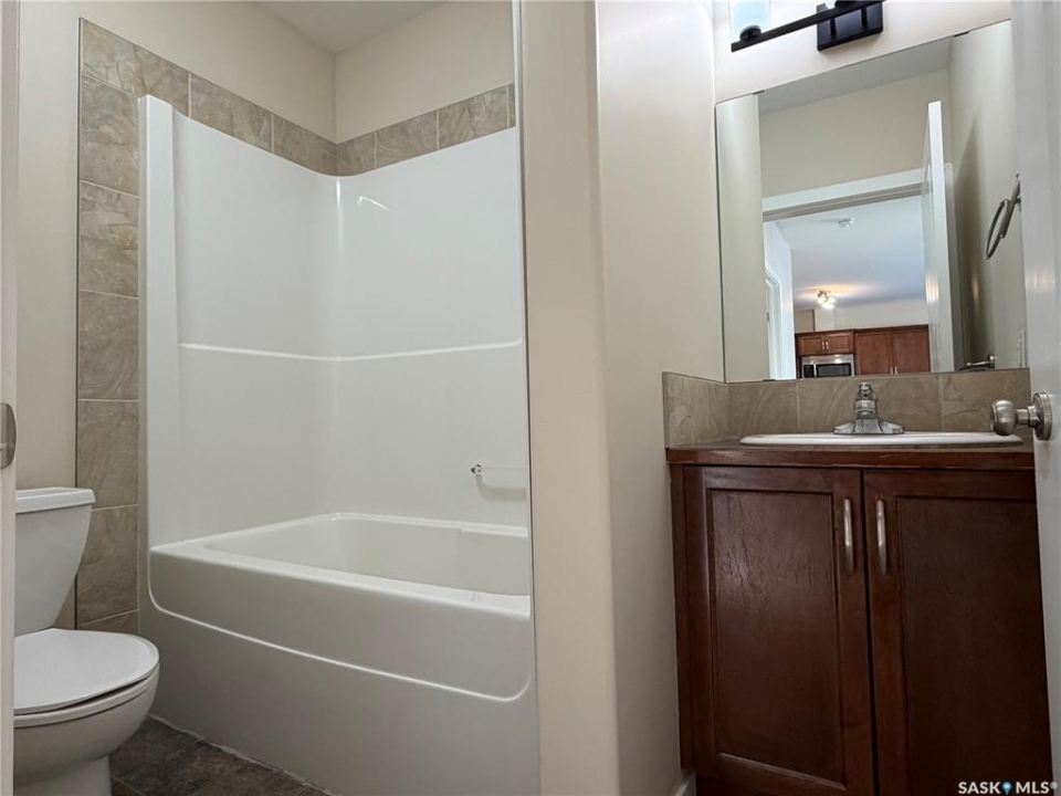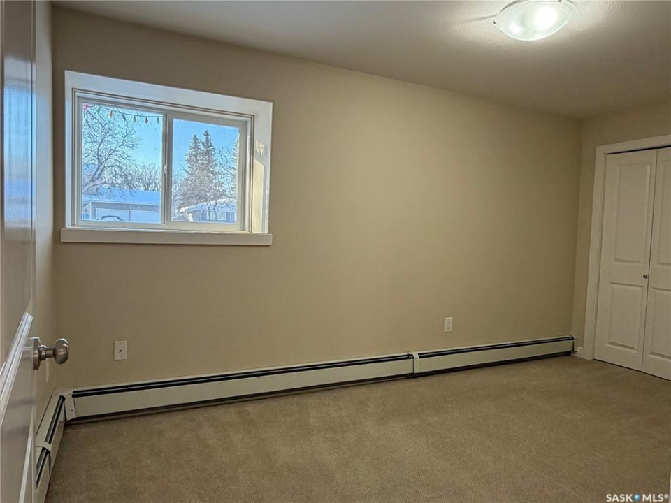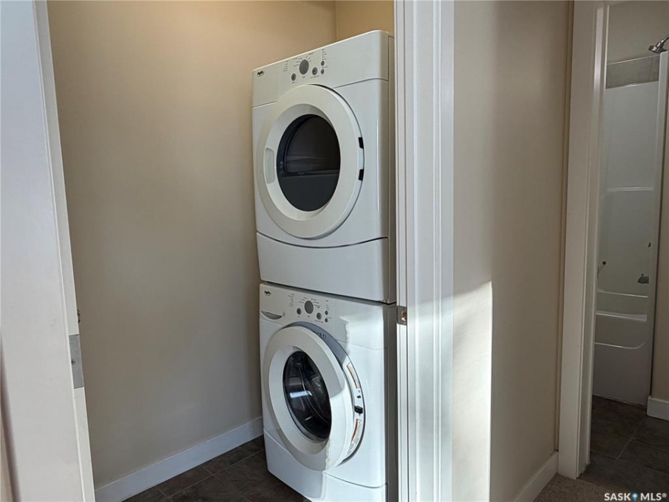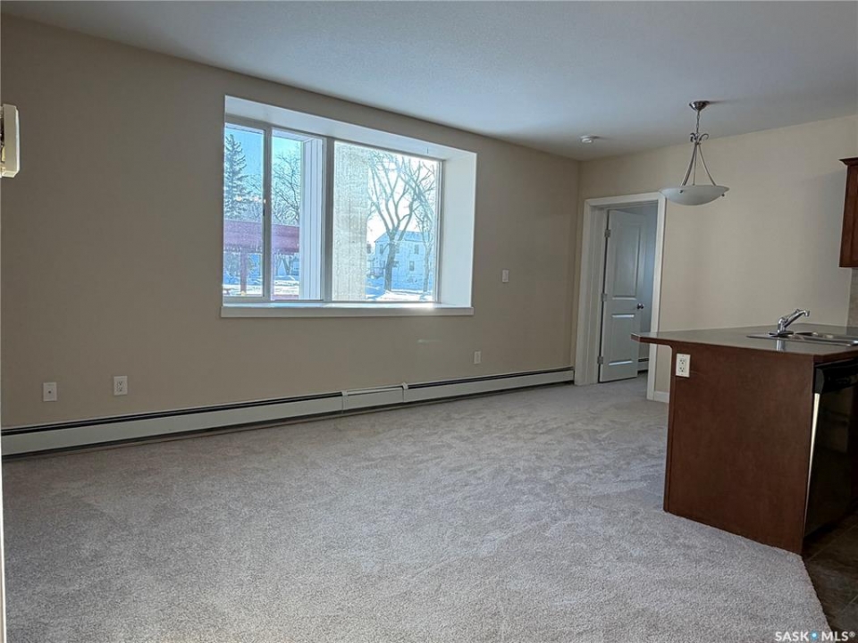 Two bedroom condo unit located in Bemister Place Condos on the East side of Melfort, located close to schools, parks & Parkland Place! This unit faces East, viewing the greenspace that has a covered patio with benches and tables for socials. Shaker style, maple, cabinets provides an abundance of counter space with overhang for stools, if desired. Includes fridge, stove, dishwasher & microwave. Laundry room includes washer & dryer. Main bedroom of the two, offers double closets. Full bath. This unit is located closest to the South West exterior access. The condo building is two levels, with an elevator. Parking stall #101.