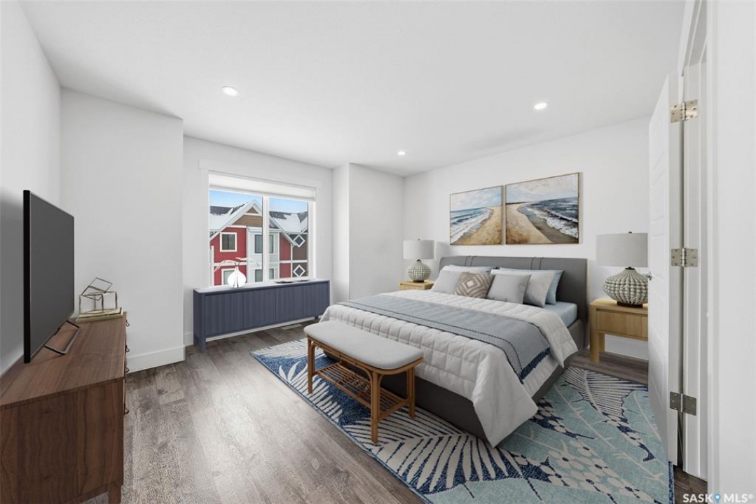 This bright and spacious home features 9-foot ceilings, with the main floor offering an open-concept great room design. The chef-style kitchen includes a walk-in pantry, soft-close cabinetry, quartz countertops, tiled backsplash, and stainless steel appliances. The kitchen flows seamlessly into the inviting living area, creating a perfect space for everyday living and entertaining. A convenient two-piece powder room completes the main level. Upstairs, you'll find three bedrooms and two bathrooms, including a comfortable primary suite with a walk-in closet and relaxing ensuite. Laundry is thoughtfully located on the upper floor for added convenience. The tandem garage provides ample space for parking and storage. Outside, enjoy a fenced backyard with an upper balcony. All appliances are included. Ideally located close to schools, trails, amenities, and the Legends Golf Course, this home offers a perfect blend of comfort, style, and location. This complex is pet friendly and has a fully fenced back yard. Move in ready for your convenience.