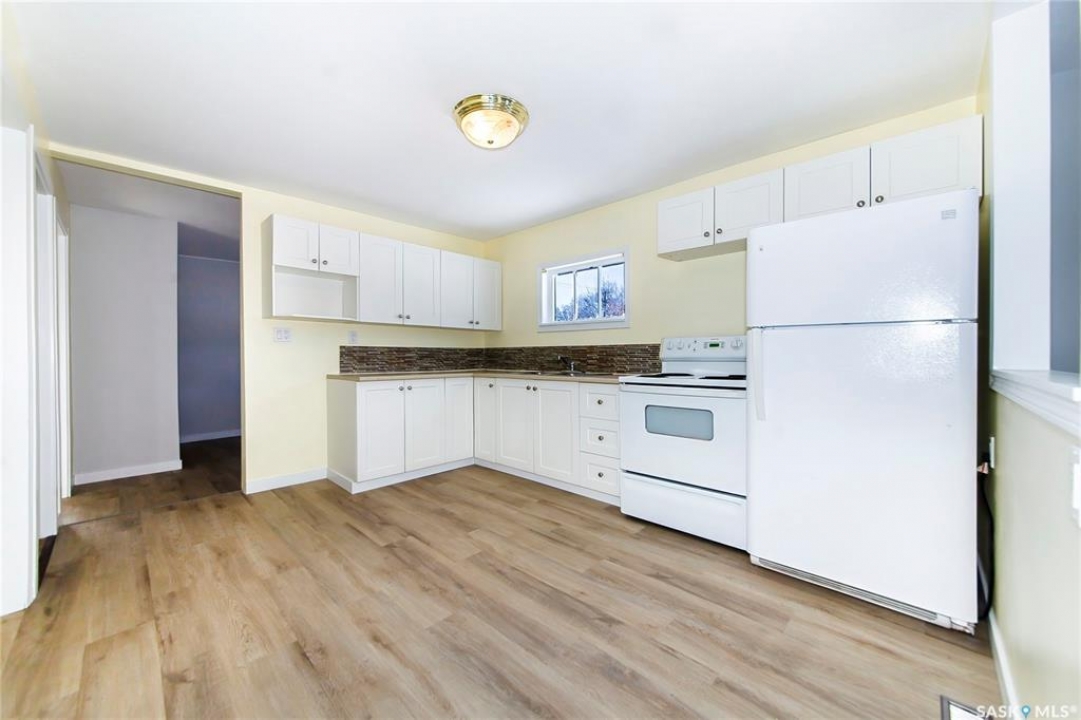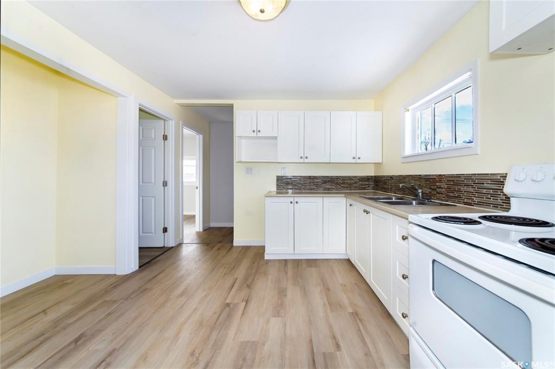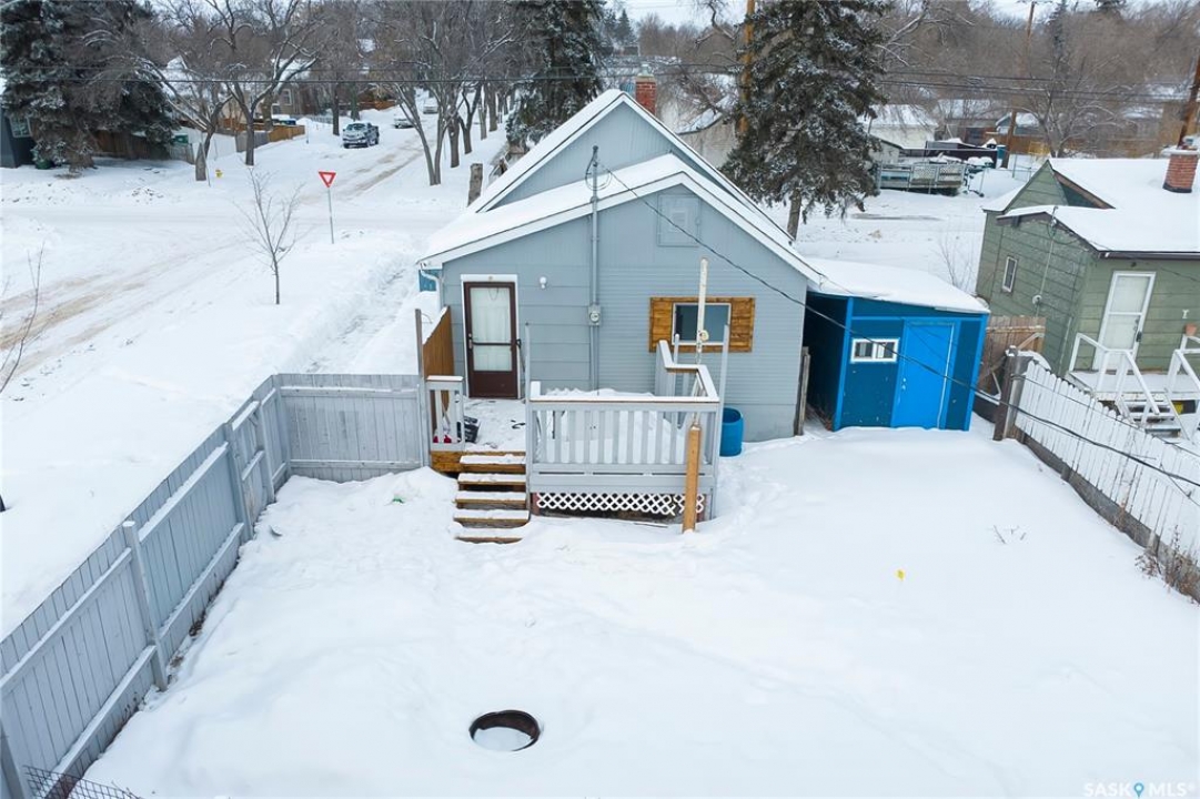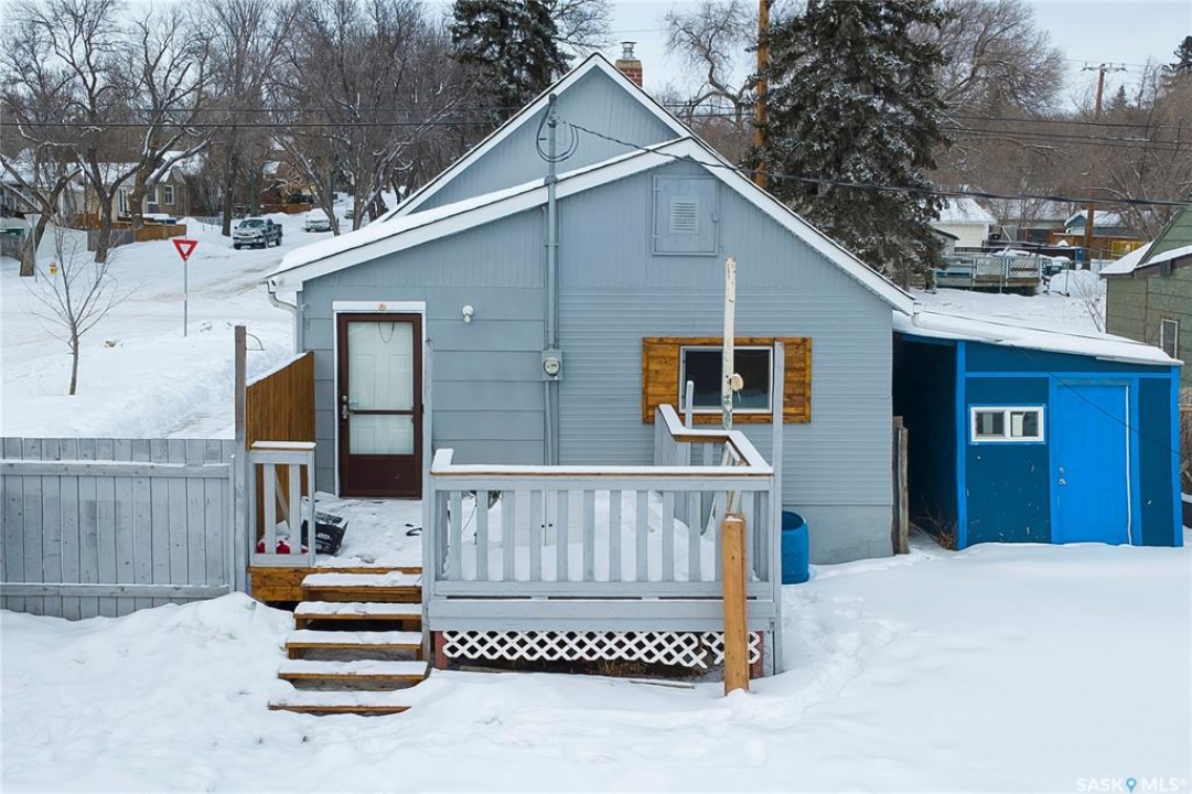 Great Westmount starter home!!!!!!!! We will be presenting all offers on Monday Jan. 26,2026 at 4:00pm. Quite a few upgrades including: new shingles in 2025, some fresh paint, some upgraded windows, upgraded attic insulation, newer style kitchen cabinets, upgraded 100 amp electrical panel and some newer vinyl plank flooring. Two decent sized bedrooms, two bathrooms (4 piece and 2 piece), open kitchen and living room area and a nice size porch area for the back entrance way and stairwell to the lower level. The basement has a den area that could be used as a 3rd bedroom providing a legal size egress window gets installed by the new owners. 40'x130' lot size with an existing 24' wide by 28' deep concrete slab poured in 2007 that should work great for your new, oversized garage. A verbal estimate of about 18,000.00 to build a new 24'x28' garage. It would contain one man door, one window, one 16' overhead door, vinyl sided, shingled and would include all supplies and labor. This could be included in a mortgage with improvements to qualified buyers. Very close to downtown, bus service and the new school currently being built on Avenue H. Give an agent a call today to view this excellent property!!!!!!!!