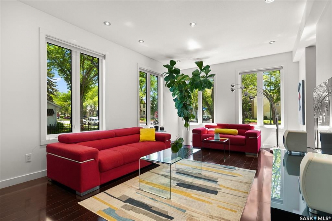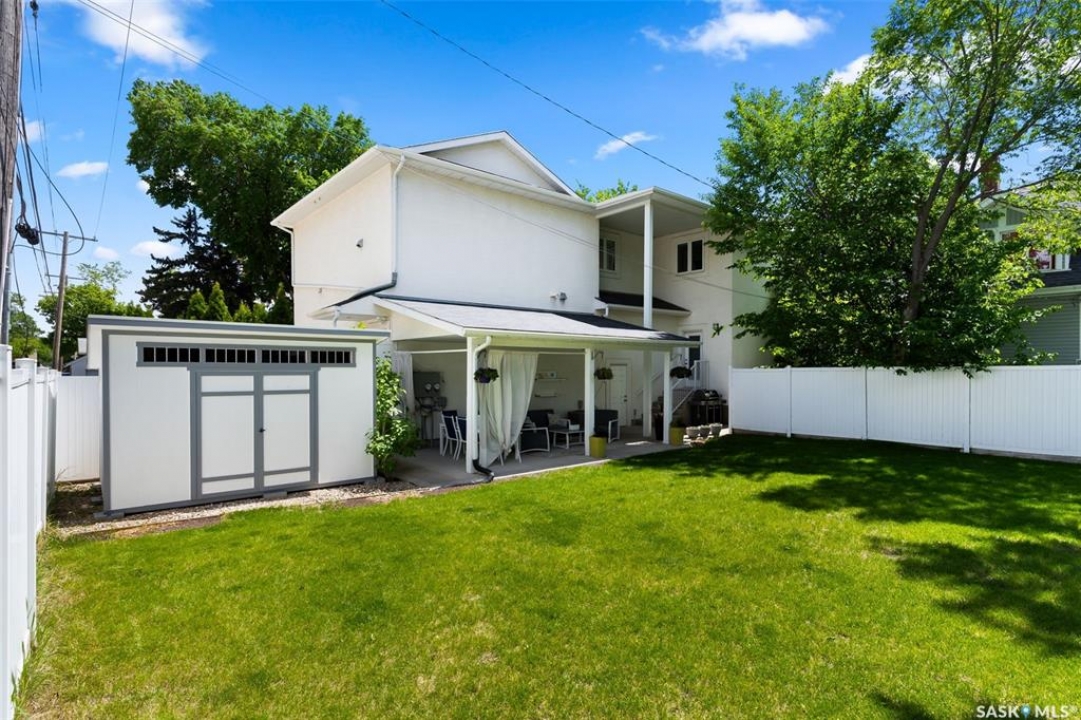 Welcome to 1980 Ottawa Street, a custom-built Varsity home located just steps from downtown Regina. Built in 2010 on piles & R2000 certified, this property features new sewer and water lines, dark iron fencing, and a striking modern façade. Bright, modern main floor offers 9-foot ceilings, high-grade laminate flooring, and an open-concept layout. Kitchen showcases two-toned flat-panel cabinetry, quartz countertops, glass tile backsplash, stainless steel appliances & built-in buffet in the dining area. Living room features a cozy gas fireplace, while a 2 pc bath and main-floor laundry complete the level. Upstairs, the spacious primary suite includes windows on two sides, a large walk-in closet, and a 3-piece ensuite with walk-in shower. 2 additional bedrooms, a 4-piece bath, and a large bonus room—ideal as an office or extra bedroom—complete the upper level. Basement is insulated, soundproofed w/ Roxul insulation & open for future development. The home is built with a web truss system for added structural efficiency. Situated on a 7,700 sq ft lot, the private backyard features a covered patio, mature trees, underground sprinklers (5 zones), PVC fencing & large storage shed. 35x22 triple attached garage includes backyard access and supports a fully legal one-bedroom suite above. A self-contained unit with its own entrance, modern finishes, laminate flooring, a spacious bedroom, and a 4-piece bath with laundry. It has separate mechanical systems including furnace, HRV, AC, and water heater. The property also offers a central vac system plus vacum inside the garage for cars and separate driveways for the home and suite. Garage and suite are supported by 14 piles. Additional features include fiber optic internet, triple-glazed argon-filled windows, and a home security system with cameras. With its legal suite, large lot, downtown location, and potential for future commercial use, this property is ideal for families, professionals, or investors seeking long-term value.