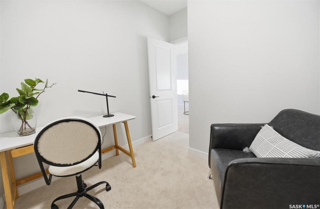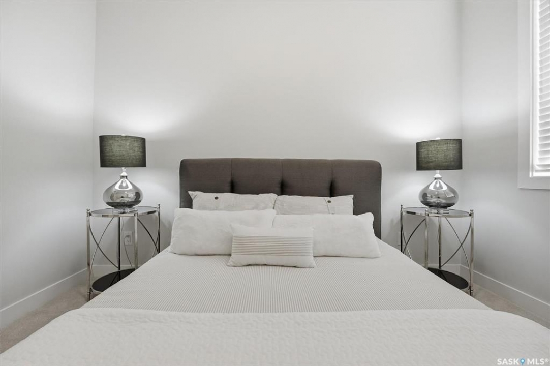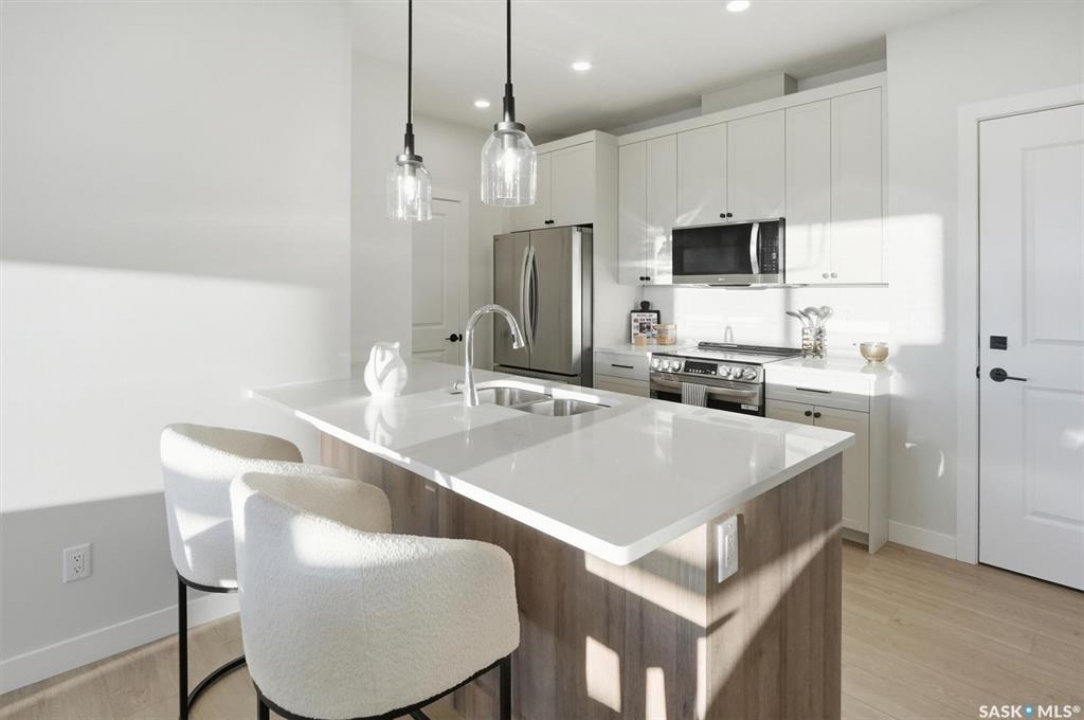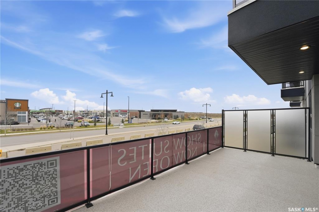 Welcome to ‘RYSE by North Ridge' located in Saskatoon's growing community of Brighton! RYSE is a modernized apartment style condominium complex offering 1 bedroom, 2 bedroom, and 2 bedroom + den options. You will immediately notice the welcoming nature of RYSE the moment you step into the warm and inviting front entrance. Unit 1203 (Skyline layout) is a south east facing 964 sq ft condo with 2 bedrooms, 2 bathrooms, a den, separate laundry room, galley style kitchen, and dining/living areas. The interior features high end designer finishes, fixtures, countertops, and flooring, all with quality built craftsmanship. A private partially covered balcony awaits complete with duradeck, glass railing, natural gas bbq outlet, and electrical outlet. Each condo unit comes with a parking stall located in the heated parkade as well as a convenient storage room. Exterior parking stalls may be available to purchase. Each unit also includes a kitchen and laundry appliance package and air conditioning. RYSE has an amenity room for you to visit and relax featuring a bar area, comfortable seating, pool table, bathroom, and an outdoor patio lounge. GST and PST included in purchase price with any rebates to builder. Sask Home Warranty Premium Coverage Plan. This prime location is within a few minute walk to grocery/shopping/restaurants/bus and several other amenities. Show home hours are Mon thru Thurs 5-8PM and Weekends 12-5PM. Call to view!