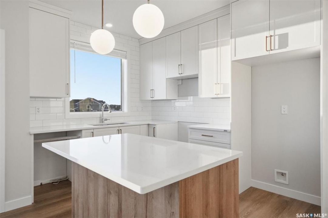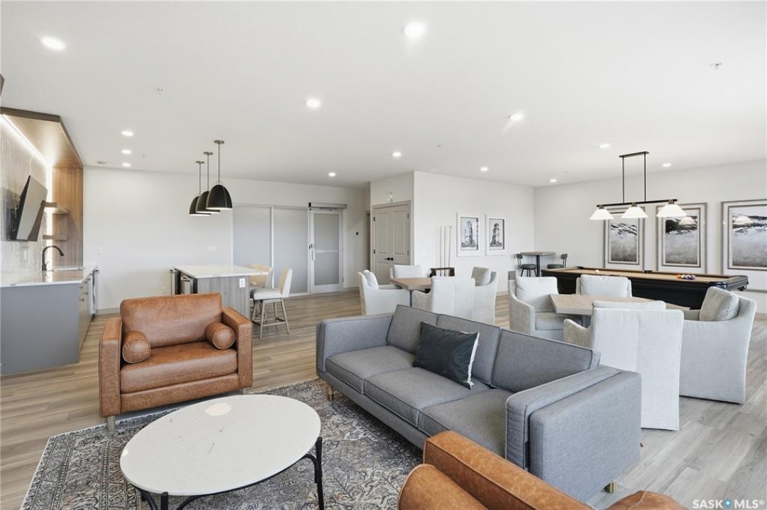 Welcome to ‘RYSE by North Ridge' located in Saskatoon's growing community of Brighton! RYSE is a modernized apartment style condominium complex offering 1 bedroom, 2 bedroom, and 2 bedroom + den options. You will immediately notice the welcoming nature of RYSE the moment you step into the warm and inviting front entrance. Unit 1201 (Panorama layout) is a south east facing 1025 sq ft corner unit condo with 2 bedrooms, 2 bathrooms, separate laundry room, corner style kitchen w/ island, and dining/living areas. The interior features high end designer finishes, fixtures, countertops, and flooring, all with quality built craftsmanship. A private partially covered balcony awaits complete with duradeck, glass railing, natural gas bbq outlet, and electrical outlet. Each condo unit comes with a parking stall located in the heated parkade as well as a convenient storage room. Exterior parking stalls may be available to purchase. Each unit also includes a kitchen and laundry appliance package and air conditioning. RYSE has an amenity room for you to visit and relax featuring a bar area, comfortable seating, pool table, bathroom, and an outdoor patio lounge. GST and PST included in purchase price with any rebates to builder. Sask Home Warranty Premium Coverage Plan. This prime location is within a few minute walk to grocery/shopping/restaurants/bus and several other amenities. Show home hours are Mon thru Thurs 5-8PM and Weekends 12-5PM. Call to view!