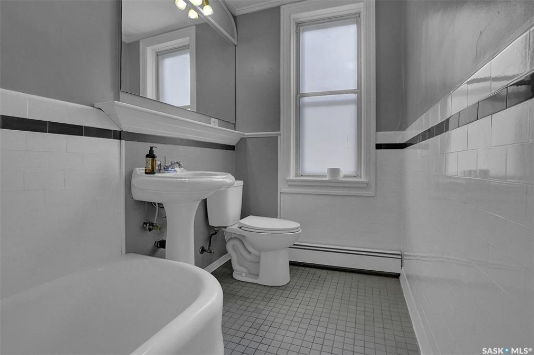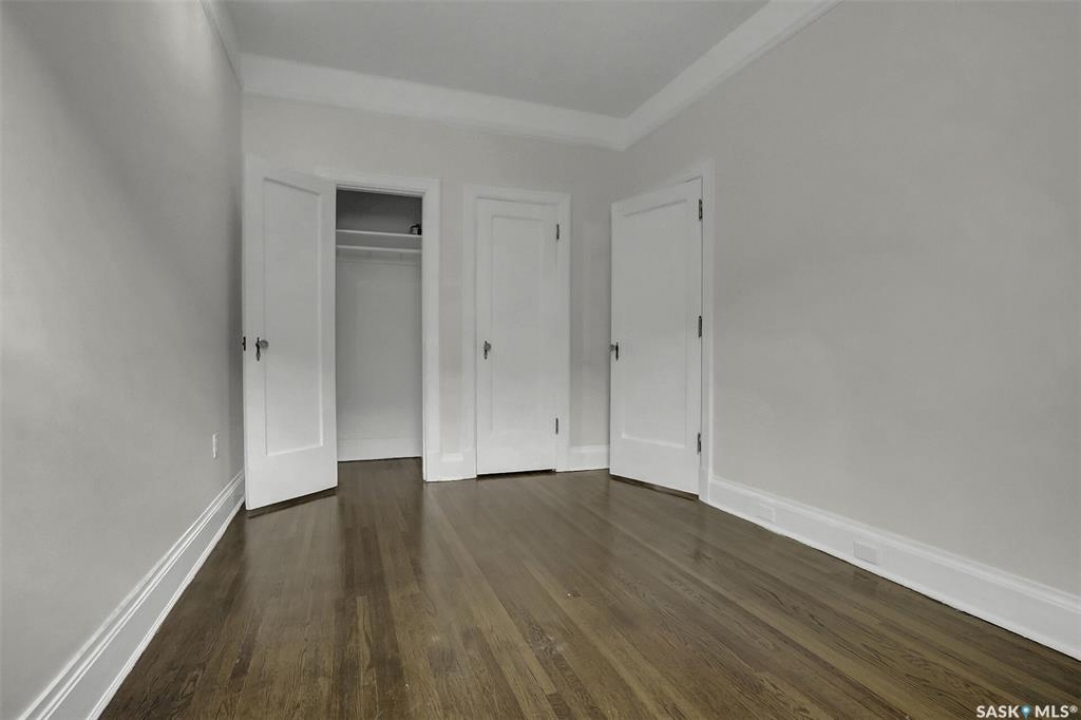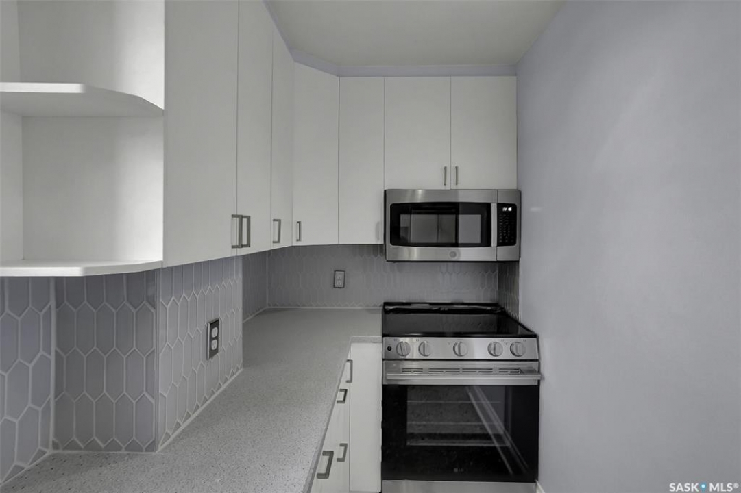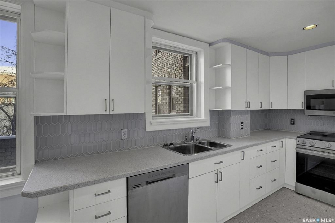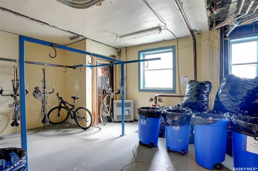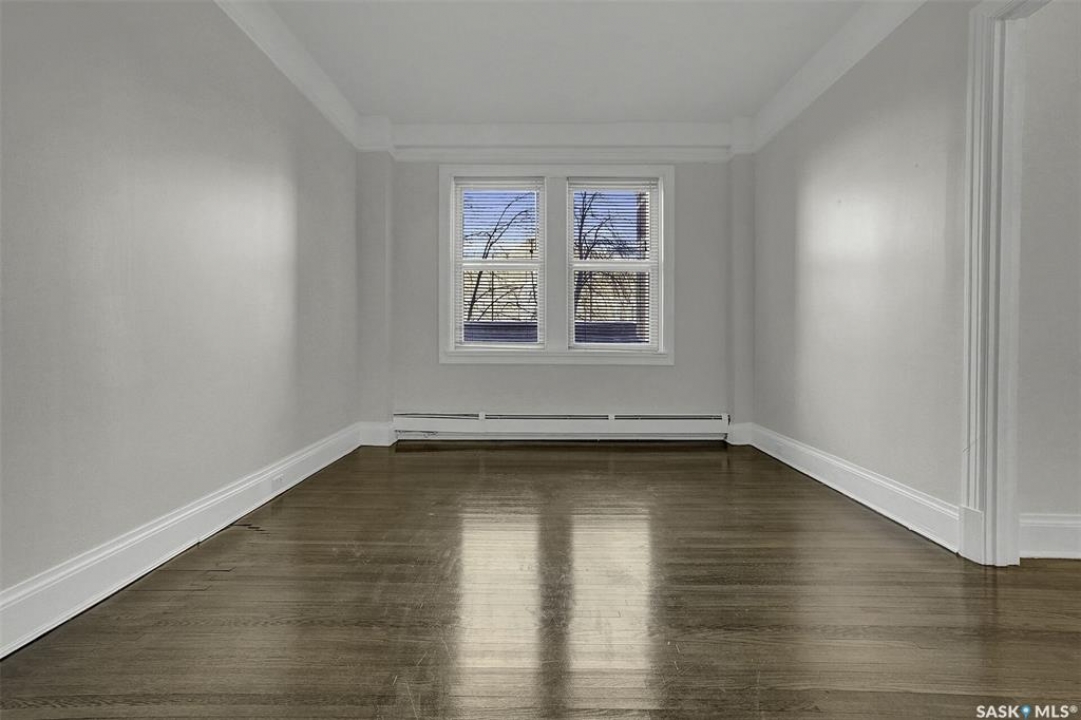 Discover timeless elegance in this well appointed 2-bedroom, 2 bathroom condo in the iconic Balfour Building—one of Regina's most historic residences. The building entrance welcomes you w/ beautiful stonework & wrought-iron gates. A charming foyer w seating sets the tone for the building's warm, heritage character. The circa 1929 elevators have been restored: preserving nostalgic charm & offering modern convenience. Inside the suite, a front entry display area & closet/ storage space greet you w/ hardwood flooring that enhances the natural elegance felt throughout. The versatile floor plan offers various furniture arrangements. Off this space is the living room w/ lots of natural light, picture rails & a wall of custom built-ins w/ lighting for displays & storage. The bright, white kitchen provides lots of custom cabinetry, pull-out pantry storage, built-in dishwasher, tiled backsplash, window & pocket style sliding French doors. The primary bedroom includes a “rare find” 3/4 ensuite & second bedroom has 2 closets . Bright freshly painted interior including main bathroom. This unit shares front balcony space w/ a nice view of downtown & Victoria Park. Throughout the building, you find seating areas perfect for visiting. A spacious lounge, complete w/ kitchenette, opens to a common outdoor deck w/ bbq area. Shared laundry facilities in basement are bright, clean, & well-maintained. Residents also enjoy convenient bike storage & well-lit storage locker. area. This unit comes w/ 2 storage lockers. Included are the fridge, stove(Nov. 2025) built-in dishwasher(July 2024) safe & standalone air conditioning unit. Condo fees $681.21 per month include heat, water, sewer, common area maintenance, common area insurance, snow removal, lawn care & reserve fund. AI-generated pictures at end. The Balfour has long been celebrated for its beauty, uniqueness, & enduring quality that has stood the test of time. This could be your opportunity to be part of its story.