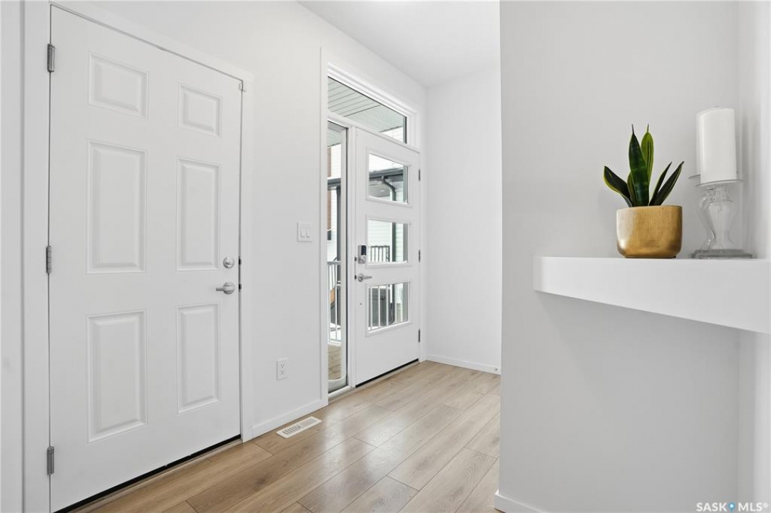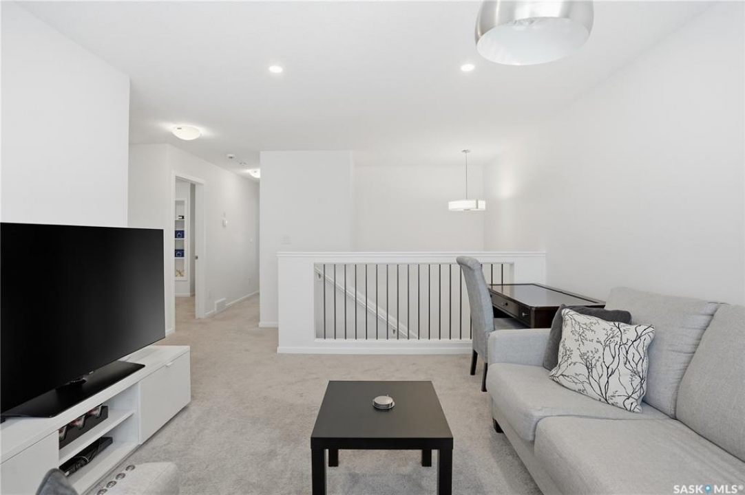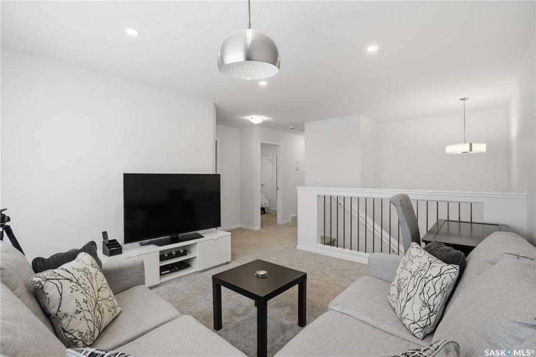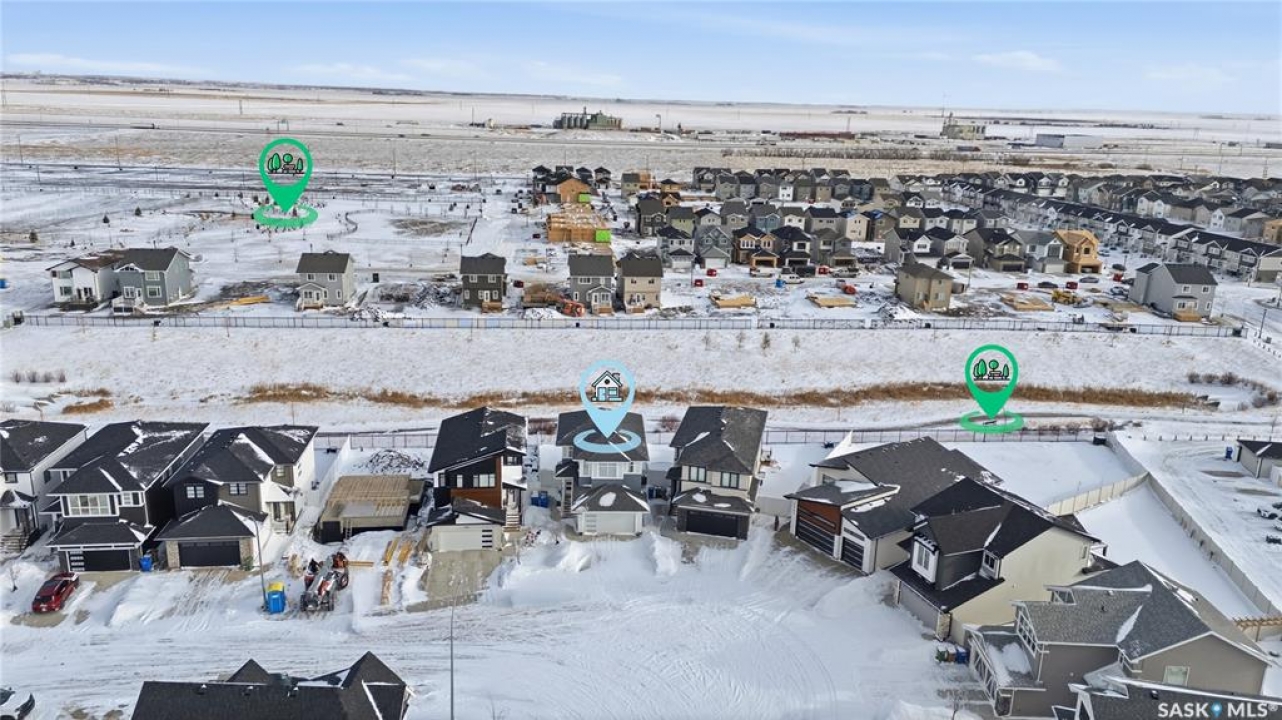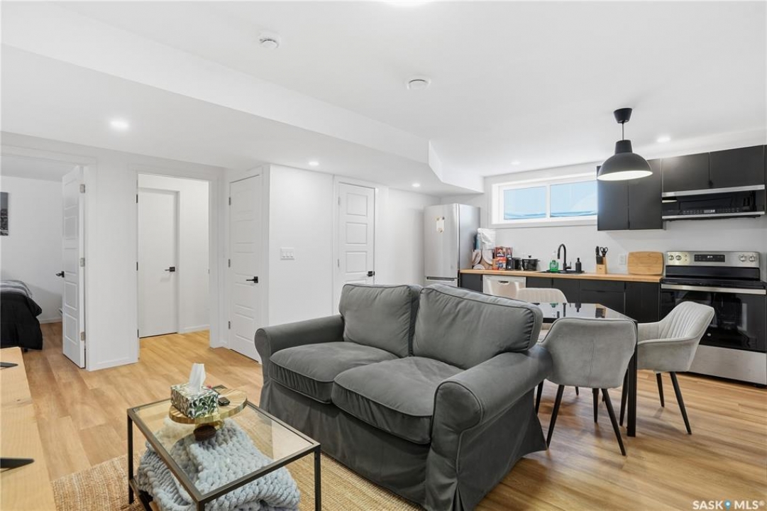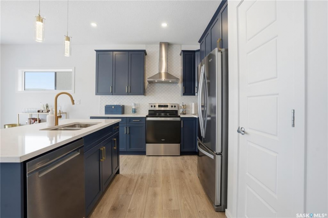 Located on a quiet crescent in East Regina's desirable Eastbrook neighbourhood, this beautiful two-storey home backs directly onto green space, offering privacy, peaceful views, and one of the area's most sought-after floor plans. A spacious front entry welcomes you into a bright, open-concept main floor flooded with natural light from large windows throughout. Designed for both entertaining and everyday living, the kitchen features quartz countertops, stainless steel appliances, a large island, and abundant cabinetry, flowing seamlessly into the dining area with patio doors leading to the backyard. The living room is centred around a modern electric fireplace, creating a warm and inviting focal point. A versatile main-floor office or flex space, convenient half bath, and direct access from the double attached garage complete this level. Upstairs offers a generous bonus room, two well-sized bedrooms, second-floor laundry, a full bathroom, and a spacious primary retreat with a walk-in closet and an ensuite with a shower and double sinks. The fully finished basement includes a beautiful one-bedroom legal suite with its own kitchen, laundry, and private entrance, providing excellent flexibility for extended family living or rental income as a mortgage helper. Additional highlights include 9' ceilings on the main floor, laminate flooring throughout main living areas, tile in all wet spaces, upgraded stair railings with metal spindles, a gold kitchen faucet and cabinet handles, rear deck with skirting, and fully fenced and landscaped yard. Backing naturalized green space and located in a quiet, family-friendly setting, this home offers exceptional value, versatility, and long-term potential. (Some furniture are negotiable)