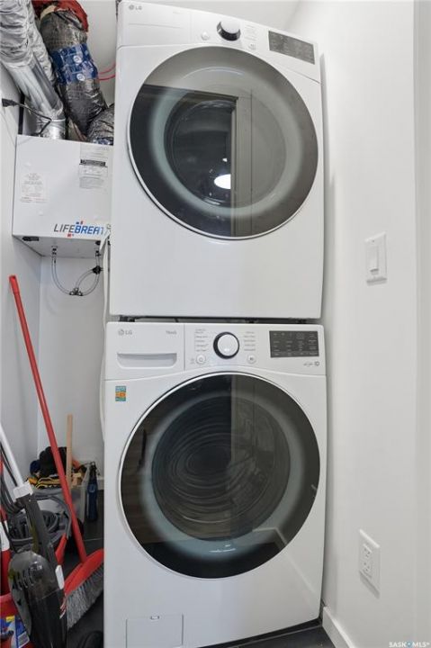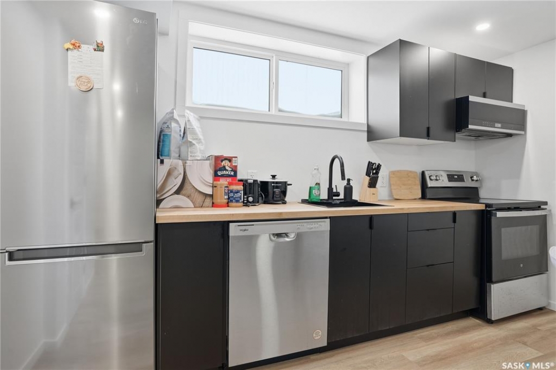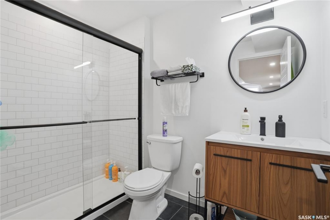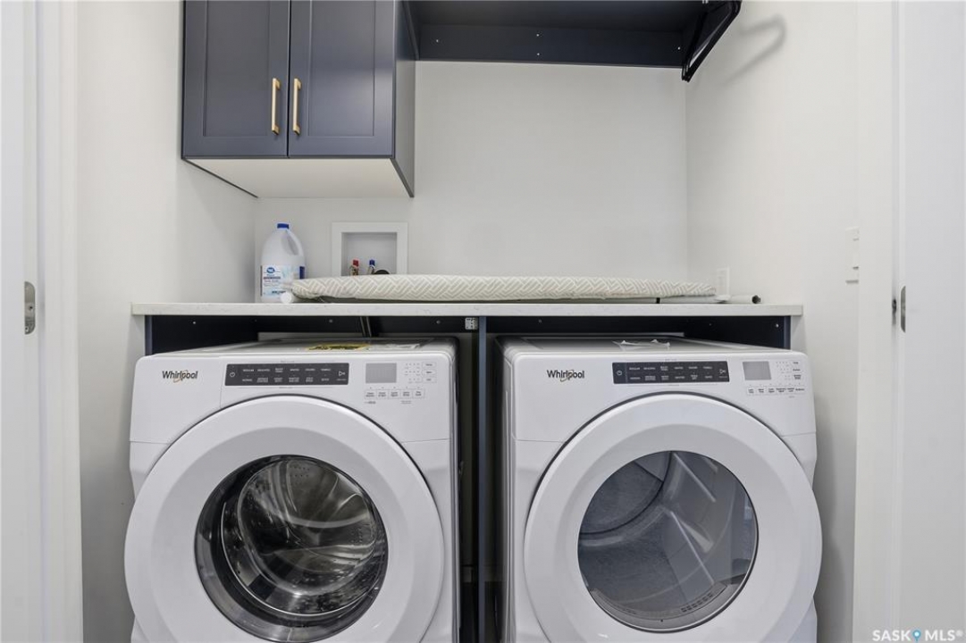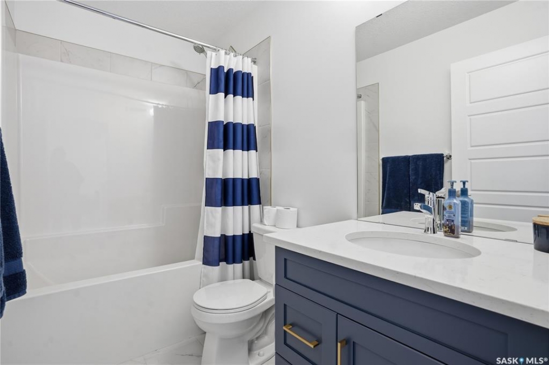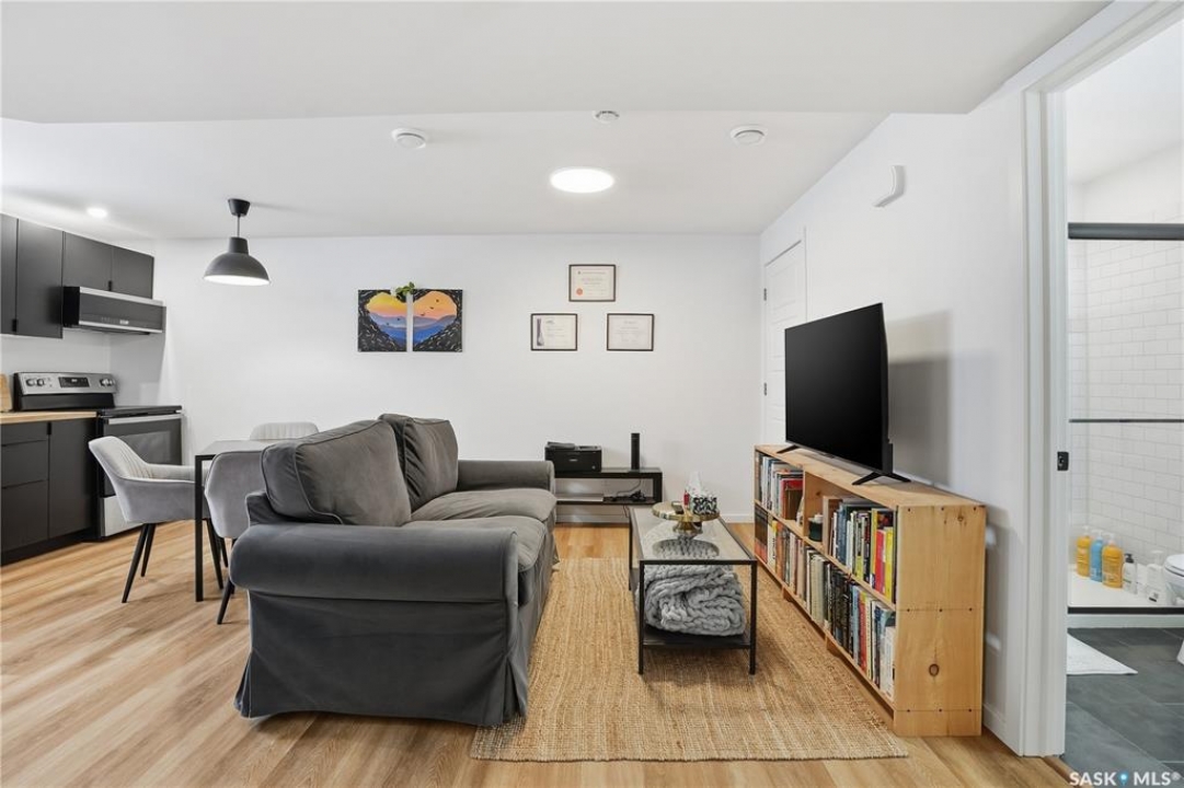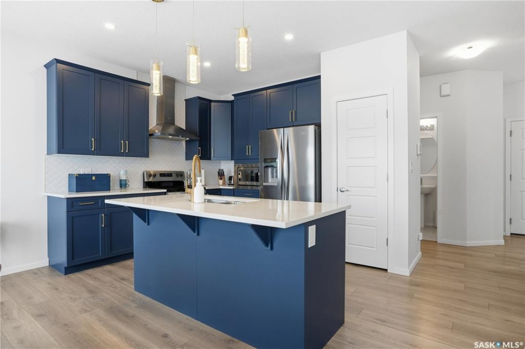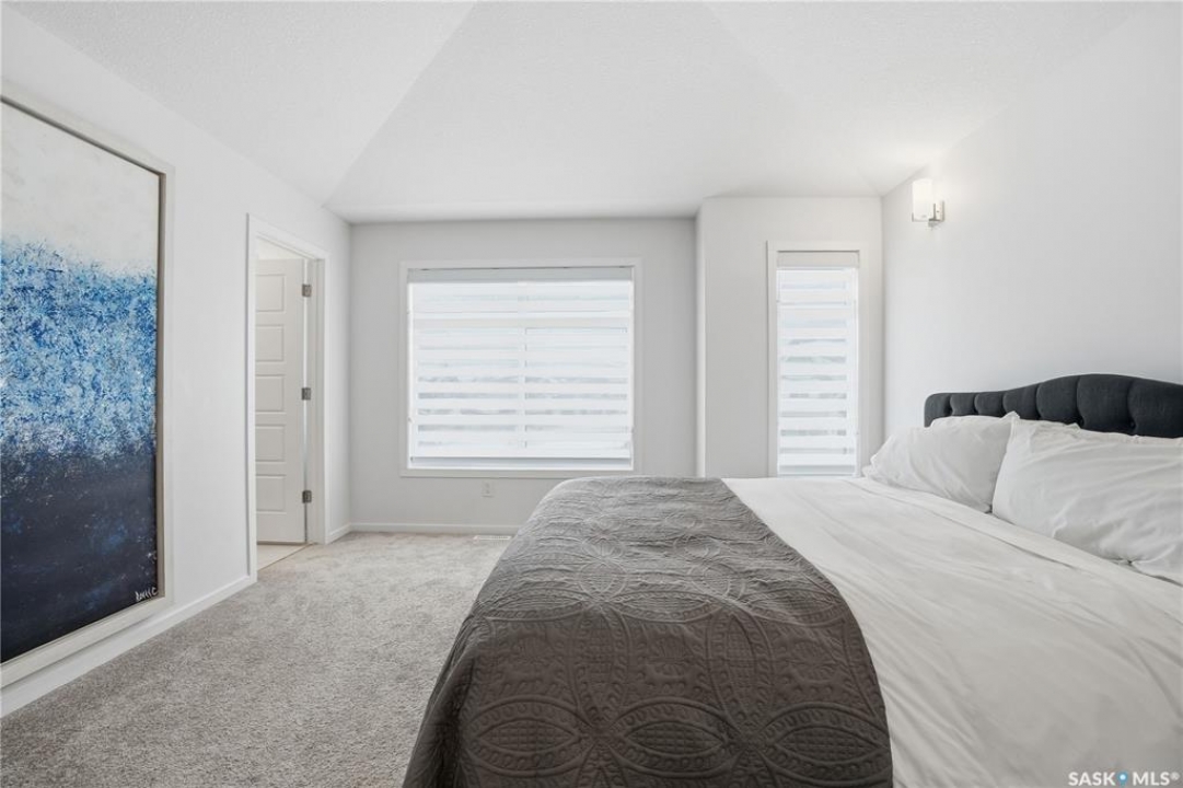 Located on a quiet crescent in East Regina's desirable Eastbrook neighbourhood, this beautiful two-storey home backs directly onto green space, offering privacy, peaceful views, and one of the area's most sought-after floor plans. A spacious front entry welcomes you into a bright, open-concept main floor flooded with natural light from large windows throughout. Designed for both entertaining and everyday living, the kitchen features quartz countertops, stainless steel appliances, a large island, and abundant cabinetry, flowing seamlessly into the dining area with patio doors leading to the backyard. The living room is centred around a modern electric fireplace, creating a warm and inviting focal point. A versatile main-floor office or flex space, convenient half bath, and direct access from the double attached garage complete this level. Upstairs offers a generous bonus room, two well-sized bedrooms, second-floor laundry, a full bathroom, and a spacious primary retreat with a walk-in closet and an ensuite with a shower and double sinks. The fully finished basement includes a beautiful one-bedroom legal suite with its own kitchen, laundry, and private entrance, providing excellent flexibility for extended family living or rental income as a mortgage helper. Additional highlights include 9' ceilings on the main floor, laminate flooring throughout main living areas, tile in all wet spaces, upgraded stair railings with metal spindles, a gold kitchen faucet and cabinet handles, rear deck with skirting, and fully fenced and landscaped yard. Backing naturalized green space and located in a quiet, family-friendly setting, this home offers exceptional value, versatility, and long-term potential. (Some furniture are negotiable)