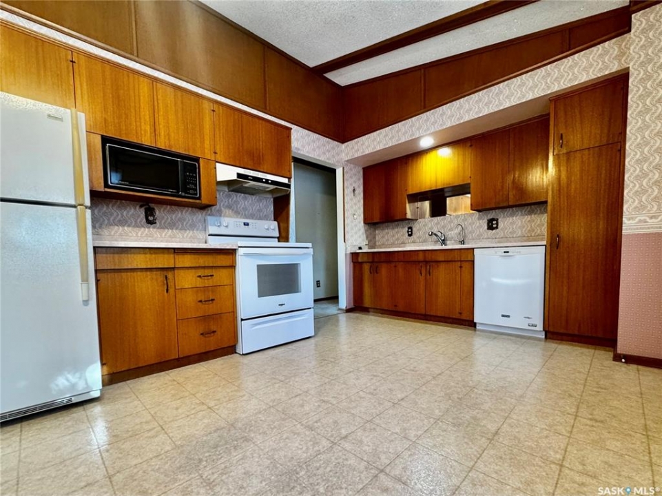 This large family home is available for immediate possession and is located in Yorkton's Southwest end. The exterior of the home has siding as well as Tyndall stone, which is an expensive limestone found in Manitoba. The south end of the garage has extra space for storage and/or workshop. From the south end of the garage, there is direct entry to the back yard. The north entry will take you into a porch area to welcome guests. A few steps over will bring you into the extra large north facing living room. Enjoy meals in the dining room area with direct views of the living and/or kitchen. The dining room and kitchen have south facing windows for maximum natural light. The extra large kitchen has included fridge, stove, microwave, and built in dishwasher. Just around the corner will take you to the south entry door with direct entry to the 12 x 20 deck. Down the hallway will take you to 3 excellent sized bedrooms. The main bedroom features a 2 piece en-suite with ample amount of closet space. The main floor living space is competed with a 4 piece main bathroom. Down the stairs will take you to the fully finished basement. At the bottom of the stairs there is a bonus room you can use for a home gym or office. A few steps over will take you to an extra large 4th bedroom. The rec room has over 374 square feet of living space that can be used for a lot of different set ups. The 3 piece bathroom witch cedar walls that absorbs the moisture completes the basement living space. The storage closet in the basement is cedar lined which has been known to keep moths and moisture away. The utility room includes gas water heater (2021), boiler heat system, water softener (owned), 100 amp panel box (in rec room area), washer, and dryer. Both main and basement floors have lots of closet space and storage. The fully developed back yard features deck, garden area, shed, access to back alley, and well taken care of lawn. St. Paul's School (K-8) is a half block way! Not for rent.Yorkton SK