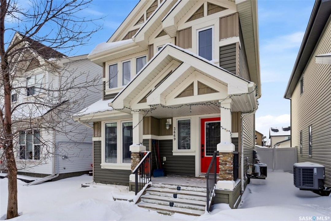 Welcome to 3669 Green Bank Road, a well-kept two-storey homel in the desirable Greens on Gardiner neighbourhood. Offering just over 1,300 sqft of functional living space on the top 2 floors, plus a finished basement, this home stands out with its charming curb appeal. Inside, the bright main floor features a practical open-concept layout with the living room and dining area flowing into the kitchen, which includes stainless steel appliances, ample cabinetry, and a large central island bathed in natural light from generous windows. A convenient two-piece bath completes the main level. Upstairs, you'll find three comfortable bedrooms with newer carpet (2023), including a spacious primary suite with a walk-in closet and three-piece ensuite. The finished basement offers a versatile L-shaped recreation room with rough-ins for a future kitchenette or wet bar, along with laundry and mechanical space. Outside, the fully fenced and landscaped yard features a large deck, patio, and newer lawn (2022), ideal for relaxing or entertaining, plus a double detached garage with alley access. A solid option for anyone looking for a move-in-ready home in a great neighbourhood!