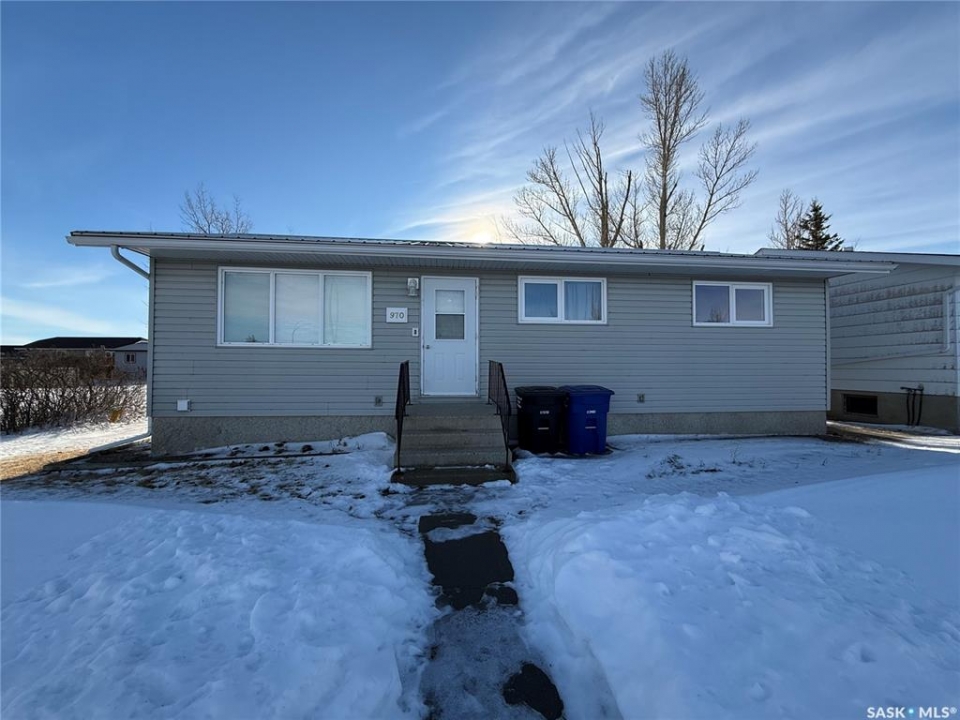 970 Larson Crescent, Eston. Looking for a winter project? This property is affordable and could be the right project for you. The home is a 1981 bungalow with approximately 960 square feet on the main level. Spacious living room with large front window. The dining has its own space and leads into the kitchen. Down the hall you will find three bedrooms and the main 4 piece bath. The basement is open for development. Metal roof on the home. Corner lot. Taxes $2800/2025. Call today for more information and to schedule a viewing.