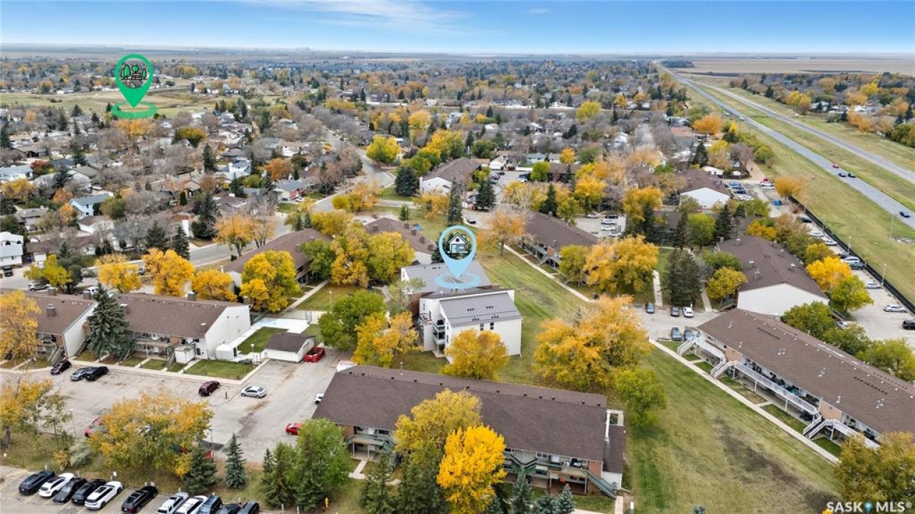 Searching for your first home or a solid investment opportunity? This well-kept, clean 1 bedroom, 1 bathroom corner-unit condo offers comfort, convenience, and excellent value. The bright open-concept living and dining area provides an inviting space to relax, with patio doors framing a pleasant view and allowing plenty of natural light. The galley-style kitchen is both practical and efficient, offering ample cupboard and counter space to make everyday cooking easy. Adjacent to the kitchen, the breakfast nook can easily double as a compact home office or workspace. The bathroom has been updated with a refreshed BathFitter tub surround. A generous in-suite storage room provides secure and convenient space for items such as a small deep freeze, bicycle, luggage, or seasonal tires. Step outside onto your private balcony to enjoy tranquil views of the landscaped greenspace—perfect for morning coffee or unwinding at the end of the day. Flooring throughout the main living areas was updated three years ago. The unit includes one electrified parking stall (stall #54) and is pet-friendly with restrictions. Monthly condo fees of $375.09 cover heat, water, exterior maintenance, building insurance, and contributions to the reserve fund, offering a low-stress lifestyle or easy rental management. A common laundry room is located on the main floor. Medford Mews is ideally situated close to Normanview Shopping Centre, public transit, a gym, grocery stores, restaurants, and Galaxy Cinema—everything you need just steps away. Whether you're ready to move out of the rental market or expand your real estate portfolio with a low-maintenance property, this condo truly delivers. Previously rented for $1,100 per month.