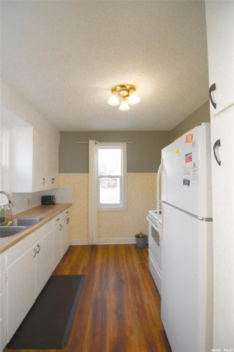 A perfect place to start! This cute bungalow is located on a quiet, shady, tree-lined street and offers comfortable, affordable living for first-time buyers. The home features two bedrooms and a 4-piece bath, with original hardwood flooring in the bedrooms adding warmth and character. A large west-facing living room window fills the space with natural light, creating a bright and welcoming atmosphere. The kitchen is conveniently located at the back of the home with easy access to the attached garage. Laundry is downstairs, keeping the main floor uncluttered and functional. Outside, the immaculate, fully fenced yard is ready to enjoy with established garden beds and a patio space—ideal for hosting friends, pets, or simply relaxing after work. Move-in ready, easy to maintain, and budget-friendly—this is a fantastic opportunity to step into homeownership in a great town.
