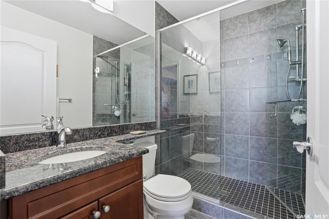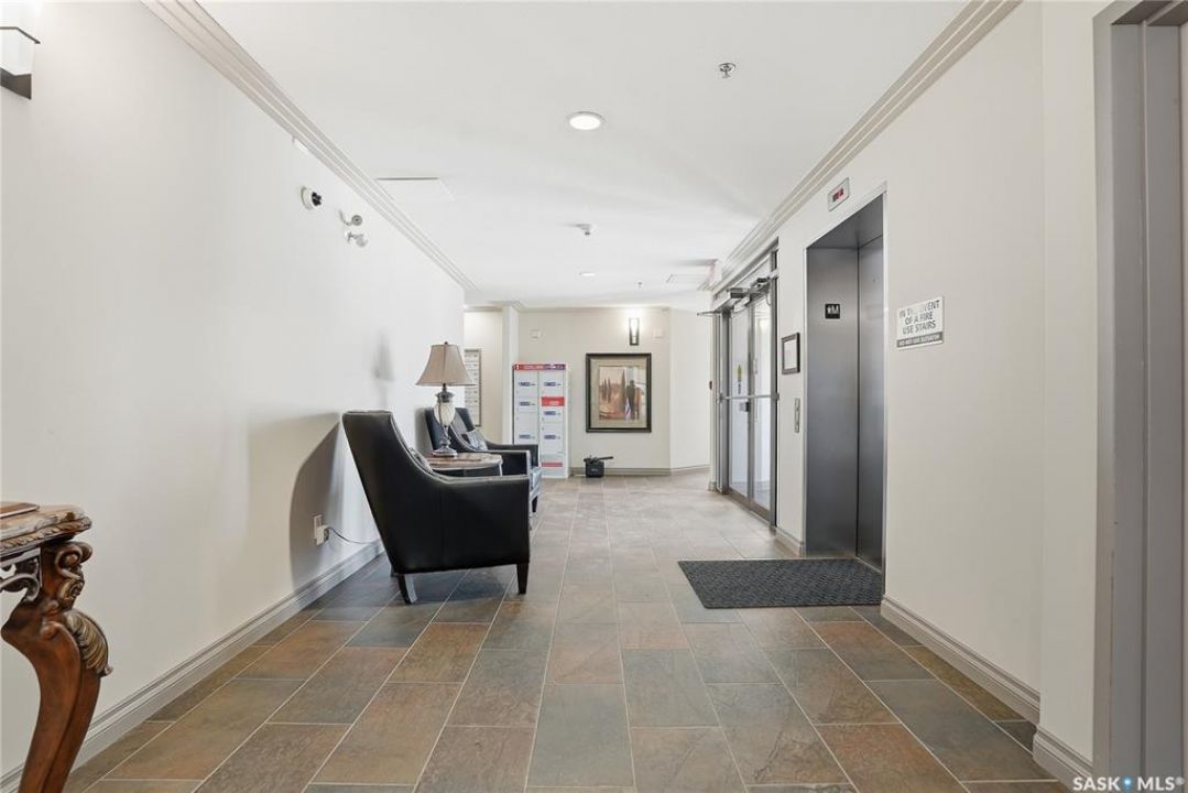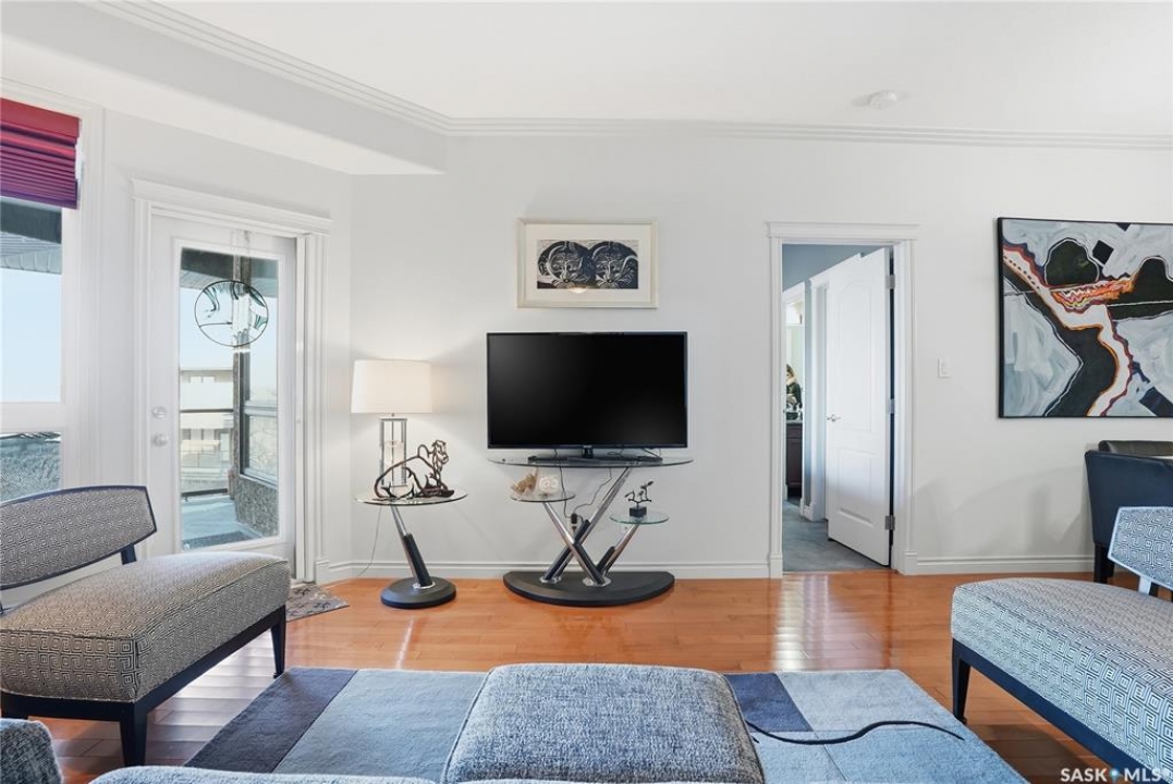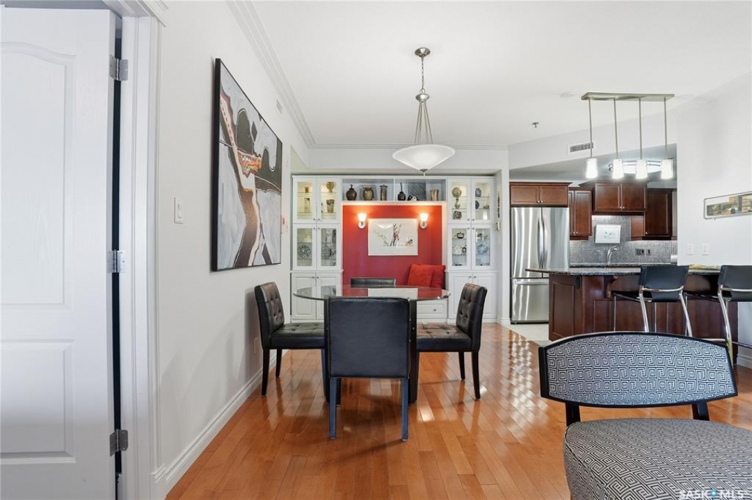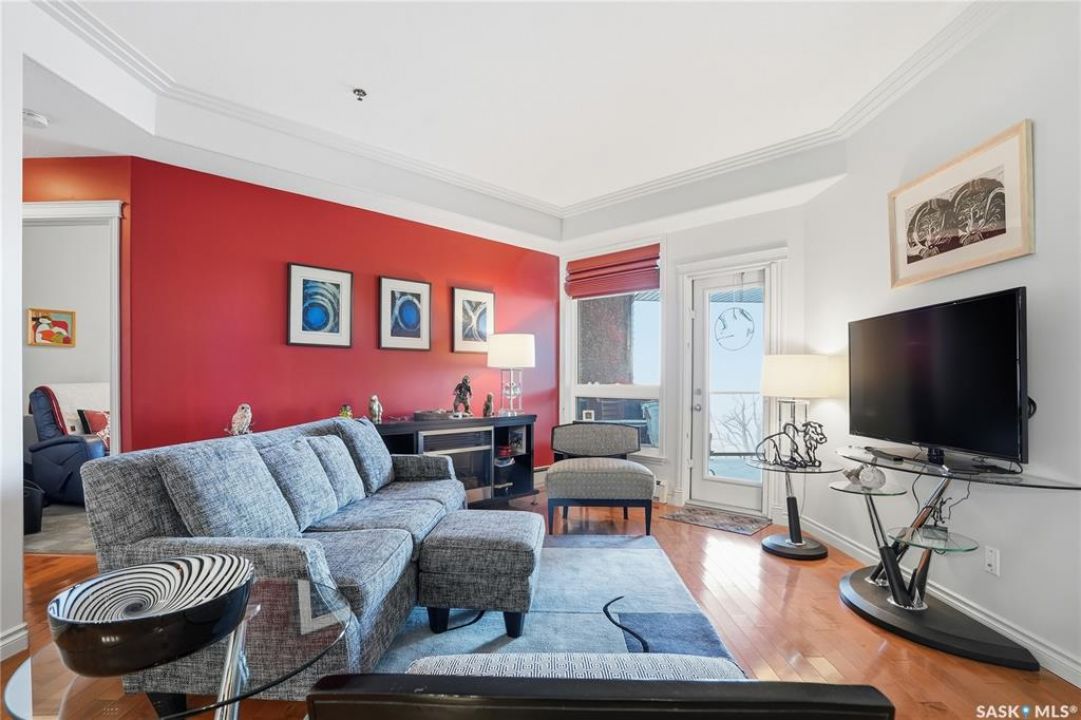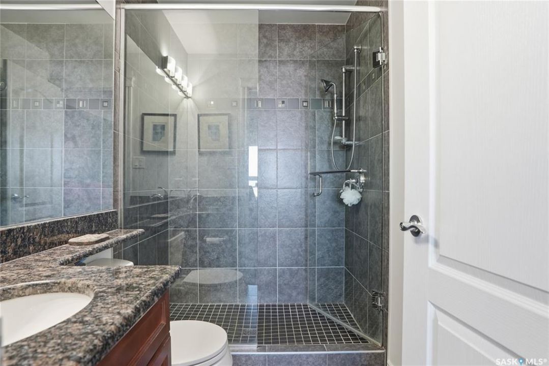 Perched along one of Saskatoon's most prestigious riverfront addresses on Saskatchewan Crescent West, this 1,079 sq ft executive condo offers a refined blend of calm, privacy, and uninterrupted views across the Meewasin Valley and South Saskatchewan River. Lovingly maintained by the original owner and lightly lived in (approximately four months per year), this home presents in mint condition, with timeless finishes that feel both elevated and enduring. Hardwood flooring and cabinetry, classic tile and grout, and custom built-in seating create a living space designed to be enjoyed fully and relaxed. The kitchen features stainless steel appliances and a thoughtful, functional layout with a large eat-up island that blends seamlessly into the open living and dining areas, ideal for quiet mornings or relaxed evenings at home. Two bedrooms and two bathrooms offer flexibility and comfort, including a river-facing primary suite with a walk-in closet and glass-enclosed walk-in shower. The second bedroom includes a beautiful custom Majestic-built Murphy bed and sits adjacent to a full 4-piece bathroom, making it equally suited to hosting guests or working from home. Central air conditioning, central vacuum, a retractable porch screen door, and underground parking add everyday ease, while the quiet, well-managed building offers premium amenities including a guest suite, amenities room, and exercise room. A refined riverfront lifestyle on where walkability, views, and understated luxury come together, this unit is sure to leave you feeling impressed. Located near nature, bus routes, downtown amenities, and the services on 8th St, you will love the accessibility and flexibility this home offers. Call your Realtor for your own exclusive tour now!