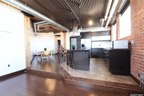 Discover this beautiful 1-bedroom, 2-bath condo in the iconic The Brownstone —where executive finishes meet urban edge. The 1,200+ sq. ft open-concept layout features exposed brick, wood beams, hardwood floors, and a custom kitchen with granite countertops, a tile backsplash, and sleek stainless steel appliances. The spacious primary suite features a walk-in closet, an en-suite bathroom with a shower, and an abundance of natural light. The main bath is spa-sized with a luxurious Jacuzzi tub, perfect for unwinding after a long day. You'll love the extra storage throughout and a cozy den—ideal as a hobby room or a flexible workspace. Enjoy the convenience of private, gated parking and plenty of storage. The former John Deere Building offers secure access and unique amenities like a freight elevator for easy move-ins. Plus, you'll have direct inside access to Drip Cafe for your morning coffee fix. Just minutes from downtown, restaurants, and nightlife, this is your chance to embrace an upscale, low-maintenance lifestyle in one of Regina's most sought-after addresses. Ready to see it for yourself? Book a showing today!