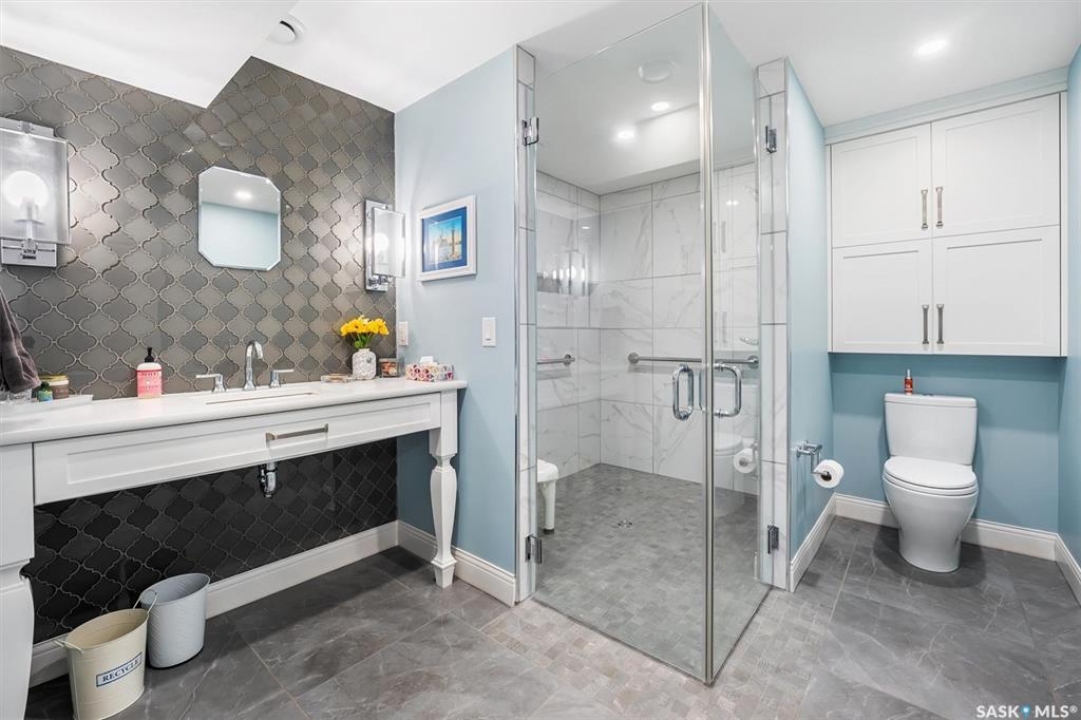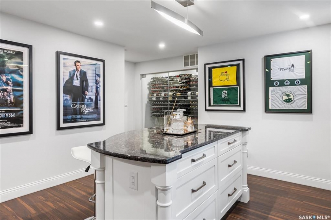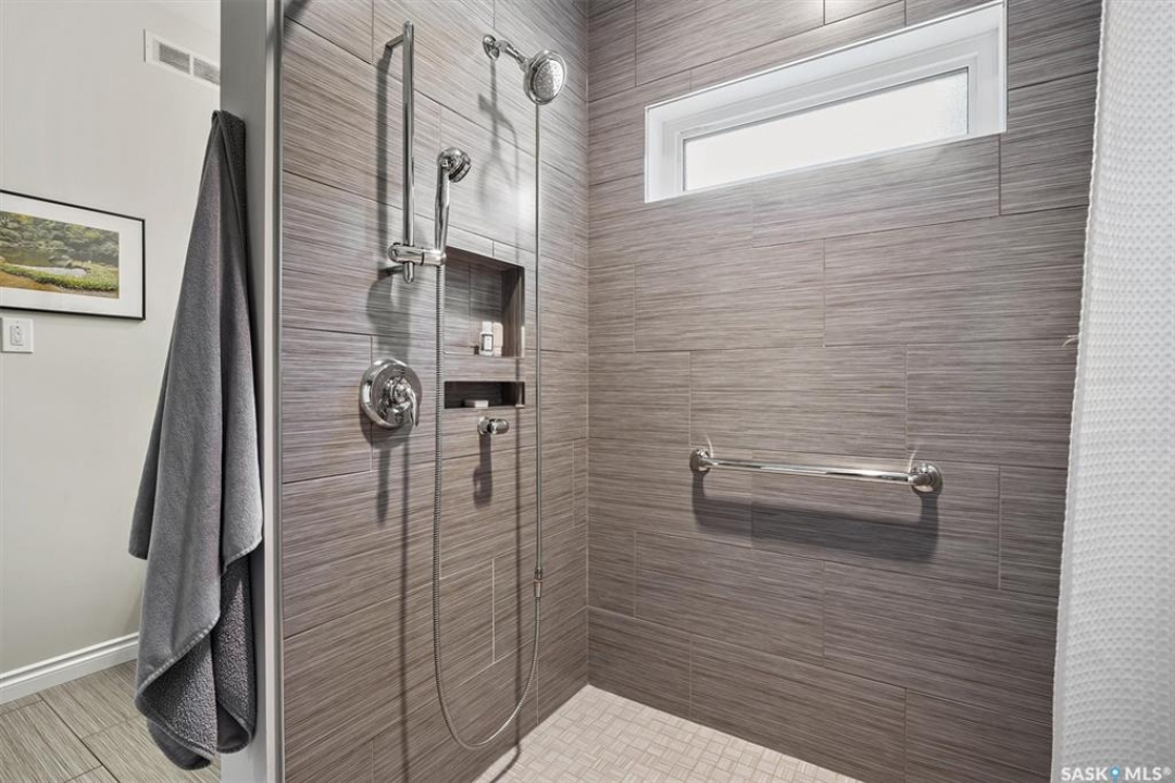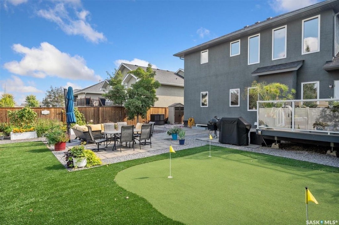 Immaculate custom-built home in Warman with Premium finishings designed with wheelchair accessibility in mind. Main Floor: Extra-wide galley kitchen with granite counters, high-end appliances (gas stove/hood fan, double-door fridge/freezer, built-in microwave, dishwasher). Main-floor primary bedroom with walk-in closet and direct access to 3-pc accessible bath. Wide hallways, lever handles, roll-under sinks. Personal 3-stop elevator with access to garage, main, and basement. Second Floor: Second primary bedroom plus bedroom/office. Shared 4-pc bath (reno 2022) with access from both rooms. Basement: Exceptional entertainment space featuring a large family/media room with fireplace, custom shelving, and 10-speaker Dolby Atmos system. High-end wet bar with granite island, dual-drawer dishwasher, drying-rack sink, custom cabinets, and glass wine cellar (300 bottles). Bedroom with built-in queen Murphy bed next to 3-pc bath. Laundry, storage, and utility rooms. Garage: Fully insulated and heated double garage with EV charger and full golf simulator (projector, retractable screen/enclosure). Elevator access. Yard: Low-maintenance landscaping with composite deck, 4-hole putting green, artificial chipping area, extensive patio with multiple seating/BBQ areas, vinyl fencing, large garden boxes with underground sprinklers, and four storage sheds. Accessibility Highlights: Two roll-in showers with grab bars and multi-head fixtures, full turning radius bathrooms, wide hallways/kitchen, extra-wide fence gates, moveable rubber ramp, main-floor bedroom sized for lift use. Updates: Hot water tank (2019), upstairs bath (2022). A must see for any family!
