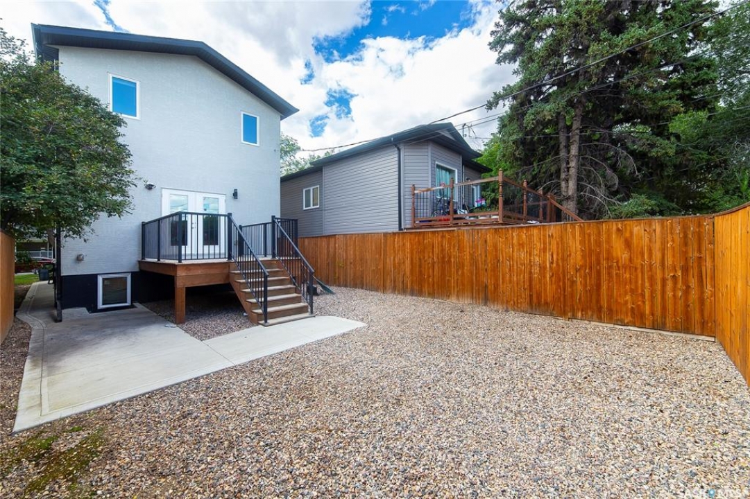 Welcome to this well-located home in Mayfair, Saskatoon, just minutes from the North End, Sask Polytech, downtown, and with quick access to Circle Drive. Built by Milano Homes in 2018, this two-storey offers 1,360 sq. ft. above grade and a fully developed 2-bedroom legal basement suite with separate entry, making it ideal for families or investors. Inside you'll find 9-foot ceilings on every floor, a bright and open main living area, a modern kitchen with granite countertops, and ceramic tile in the entry and baths. The dining space leads to a 10' x 12' deck and fenced backyard, while upstairs features three bedrooms in total and a 4pc bath, including a primary suite with a walk-in closet and private 3-piece ensuite. The basement is finished with a well-designed 2-bedroom suite complete with its own laundry, kitchen, and living space. With modern decor, zero-maintenance exterior, fenced yard, deck, and patio, this home combines style, functionality, and an excellent location close to schools, parks, shopping, and other amenities.