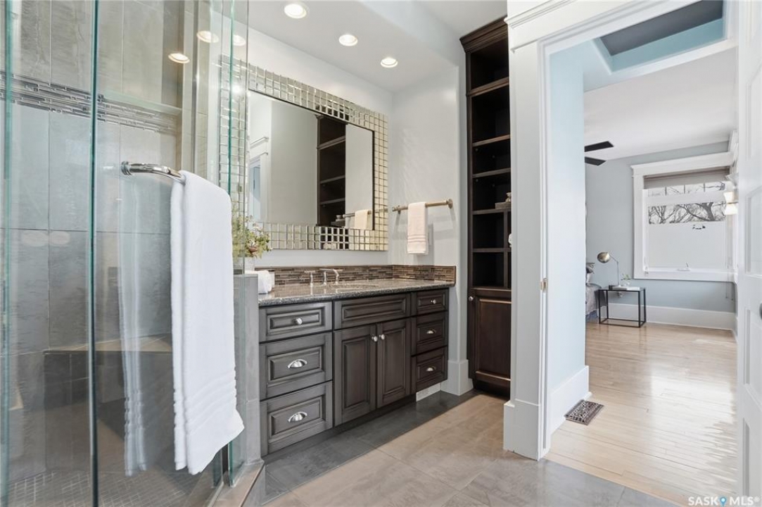Don't miss this INCREDIBLE character home in one of Saskatoon's most desirable neighbourhoods! A stately family home with a fully developed basement with separate entry. This property exudes pride of ownership with charm and professional updates throughout. Enter into the main floor to find a welcoming sunroom and lrg foyer, living room with wood burning fireplace, and a formal dining with a bay window. At the heart of the home is a chef's DREAM KITCHEN- spacious and beautifully appointed with quartz countertops, stainless appliances, and a sit-up eating area that opens onto a sitting room, overlooking a large deck and private yard. A 2-pc bath completes the main. Upstairs, you'll find 3 bedrooms: a primary suite with an ensuite and a charming private deck of the master. Two additional lrg bedrooms and a newly renovated 3-piece bathroom complete 2nd flr. Large windows flood every room with natural light, highlighting the significant character. Extensive renovations and upgrades have been meticulously completed recently, blending heritage with modern class. The unique dev basement offers a modern living room, lounge and 1 bed layout with a sep entrance, 4-pc bath, 2 x laundry, kitchen, and a family room w/ gas fireplace — ideal for additional cash flow. The oversized, heated att garage includes a large attic storage area above. The front yard is low maintenance with a stamped concrete driveway providing parking 3 vehicles. The private backyard will impress w/manicured grounds: a two-tiered deck, garden boxes, artificial turf, curbing, and climbing vines. In total, there are three decks, including a covered front deck and the private balcony of the master. Upgrades include: furnace, hot water heater, shingles, garage, decks, kitchen, two bathrooms, basement development, many new windows, updated exterior, and driveway — the list goes on! This gem is ideally situated within walking distance to the river, downtown, U of S, and all hospitals, the location is unbeatable!