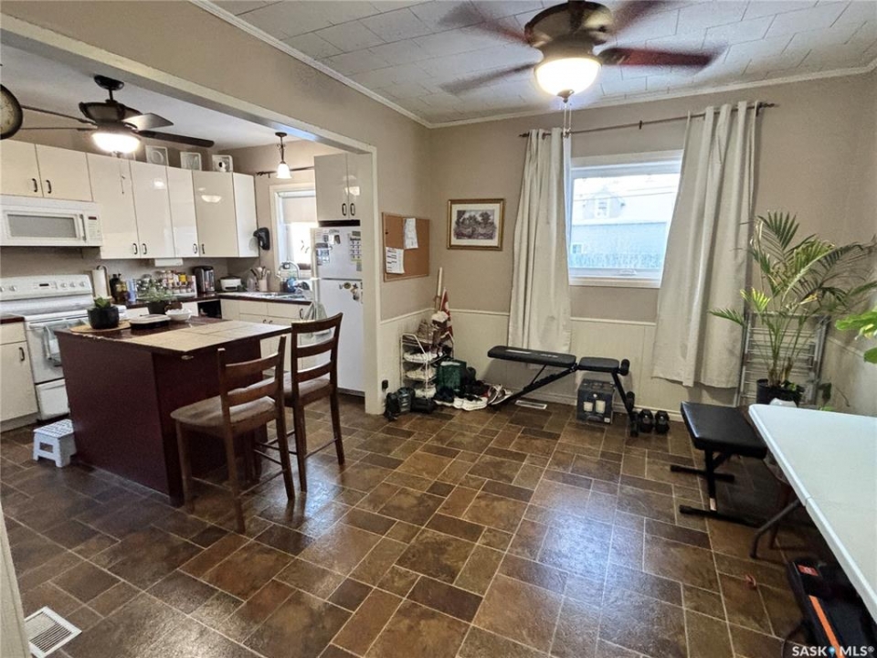 Full of character and thoughtful updates, this charming 1928 one-and-three-quarter storey home is ideally situated on a corner lot in a mature, quiet neighborhood. Enjoy the convenience of being close to downtown Humboldt as well as St. Augustine Elementary School and Church. The main floor features a welcoming layout with a bright kitchen, dining room, and living room highlighted by high ceilings and original hardwood flooring. The updated kitchen offers newer cabinetry, a center island, and a built-in dishwasher—perfect for both everyday living and entertaining. The dining room flows seamlessly into the living room, creating a warm and inviting space. A three-season front porch adds extra charm and a cozy spot to relax, while a convenient two-piece bathroom is located off the side entrance. Upstairs, you'll find three comfortable bedrooms and a four-piece bathroom, with some original hardwood flooring continuing to showcase the home's timeless appeal. The basement provides ample storage space and houses the utilities and laundry. Outside, the fully fenced yard offers privacy and functionality, complete with a single detached garage with direct street access. This home is filled with character and charm throughout—an excellent opportunity to own a piece of Humboldt history with modern updates in a fantastic location.