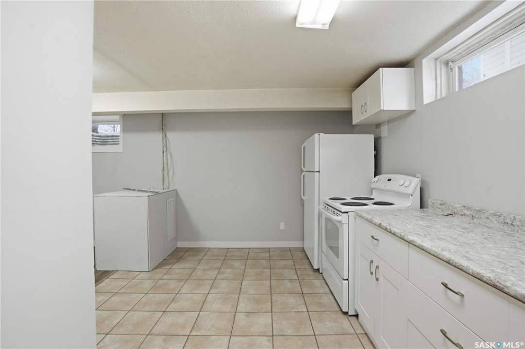 Welcome to 1910 Ewart Avenue. This refreshed main-floor bungalow offers a functional layout and excellent flexibility for homeowners or investors alike. The main floor features three bedrooms and has just been fully updated with a brand new kitchen, fresh paint, new trim, and vinyl plank flooring throughout most of the main level, creating a modern and cohesive feel. A separate entrance leads to the basement, which offers a spacious two-bedroom non-conforming suite (windows do not meet current egress requirements). Both levels enjoy the convenience of separate laundry, providing privacy and ease of use. Additional updates include new shingles installed in September 2023. An excellent opportunity for those seeking a move-in-ready home with income potential or multi-generational living.