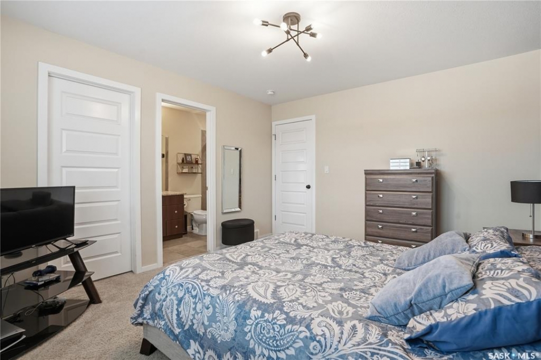 Welcome to 7904 Canola Avenue - a well-cared-for family home ready to welcome its next owners. Located in Regina's up-and-coming Westerra neighbourhood, this home offers the best of city convenience paired with a relaxed pace, surrounded by parks, green spaces, and walking paths. The main floor features a thoughtfully designed open-concept layout that seamlessly blends the family room, dining area, and kitchen - perfect for both everyday living and entertaining. The rear-facing kitchen is filled with natural light and offers a large pantry, generous counter and cabinet space, and direct access to the backyard. A convenient 2-piece powder room completes this level. Upstairs, you'll find a unique dual primary bedroom configuration, with both bedrooms offering generous square footage and their own spacious ensuites. The laundry area is also located on this level, adding everyday convenience. The basement is wide open and ready for future development, should you need additional living space, and includes a roughed-in bathroom for a potential fourth bath. Step outside to enjoy your fully fenced and finished yard - ideal for hosting summer BBQs or unwinding in the evenings. A detached garage provides space for parking and extra storage. Value-added features include all appliances, a fully finished yard, owned water heater, furnace humidifier, and more. A fantastic opportunity in a growing neighbourhood — this home is move-in ready and full of potential.