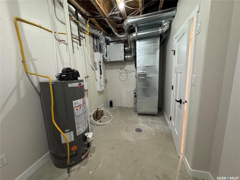 This stunning custom-built 2025 bungalow is crafted by a highly reputable builder and offers 1,354 sq. ft. of thoughtfully designed living space, plus a fully finished basement. The home features a fully fenced yard, maintenance-free deck, double concrete driveway with sidewalk, and a double insulated and heated garage—perfect for year-round comfort and convenience. The main floor welcomes you with two separate entrances sharing a spacious closet, ideal for busy households. You'll find three bedrooms on the main level, one of which is equipped with washer/dryer hookups for optional main-floor laundry. The primary bedroom includes a large walk-in closet, ready for the buyer to customize with a $1,000 design allowance. The open-concept main living area is bright and inviting, featuring custom white kitchen cabinetry and easy-maintenance flooring that flows seamlessly throughout—perfect for modern living and entertaining. The finished basement adds exceptional value with two additional bedrooms, a large family room/games area, ample storage, a 4-piece bathroom, and a dedicated utility room. Additional highlights include central air conditioning and central vacuum. Ideally located within walking distance to an elementary school and church, this home offers both comfort and community. Note: GST and PST extra. Property taxes on land only. Seller to assign any housing rebates to the Buyer. Buyer to verify all measurements. FLOOR PLAN AVAILABLE UPON REQUEST. A move-in-ready property that combines quality craftsmanship, smart design, and an excellent location. New Home Warranty Included. Calll to view today!
