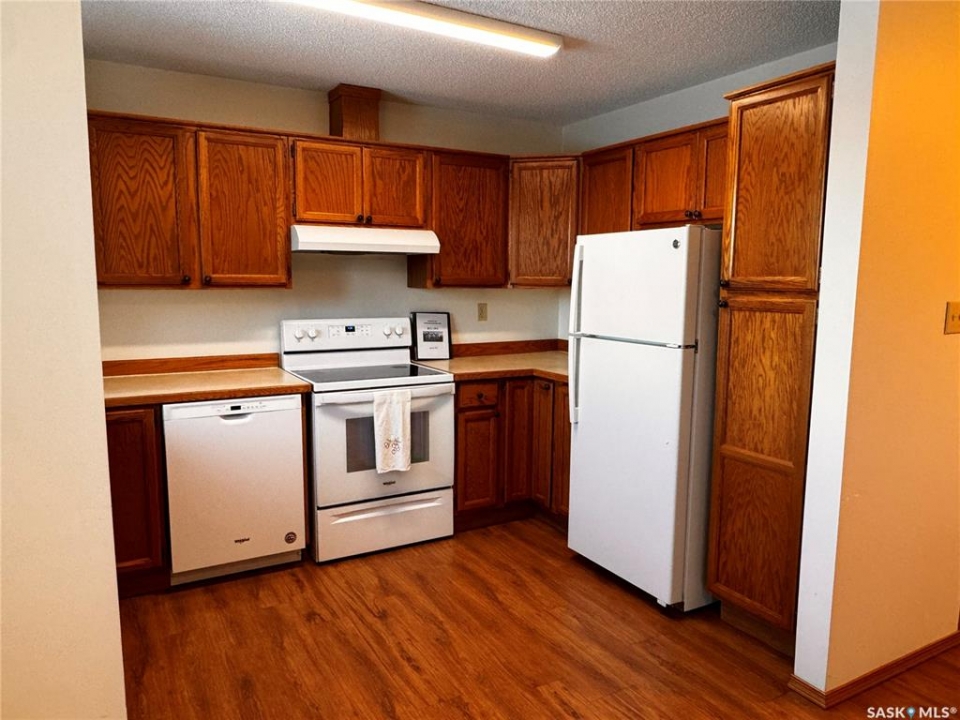 This top-floor corner unit spans over 1300+ sq. ft offering privacy and comfort; complimented with a decent-size balcony for the perfect outdoor space to relax and enjoy the quiet of the surrounding area. This condo has two large bedrooms with walk-in closets— the primary has a 3-piece ensuite; a bright, spacious den with double doors; plenty of storage in the laundry room, and the ample living space provides plenty of room to live with ease. HARTNEY PARC is tucked away in a charming neighborhood where tranquility blends with convenience. There is a park nearby for morning walks and the Wheatland Senior Center for those desiring community and nearby activities. Since 2018, this Condo unit has received new flooring throughout, furnace and water heater replaced, new kitchen appliances, the ceiling in kitchen and living room area refinished as well as the balcony floor surface. Along with heated underground parking, there is a storage unit at the front of the stall. If condo living is what you desire, schedule your viewing for this great Condo opportunity today!