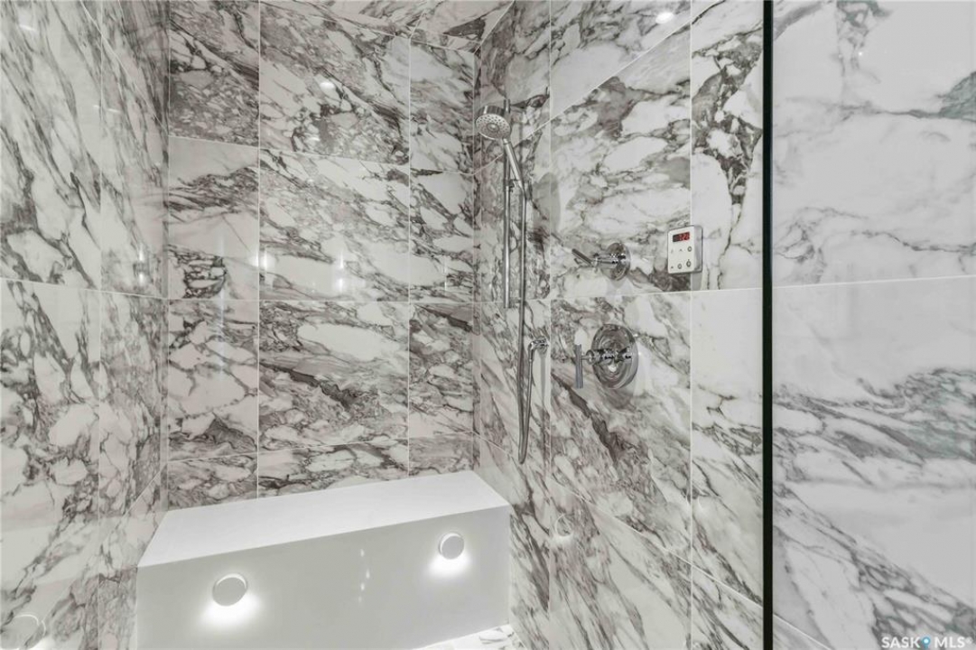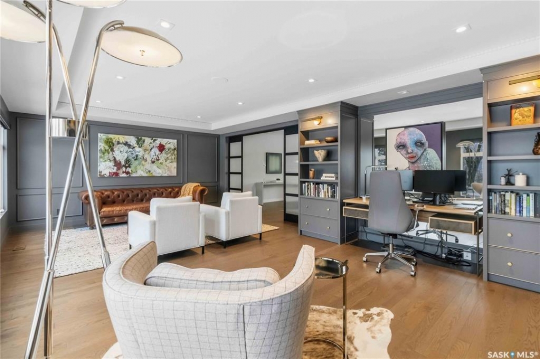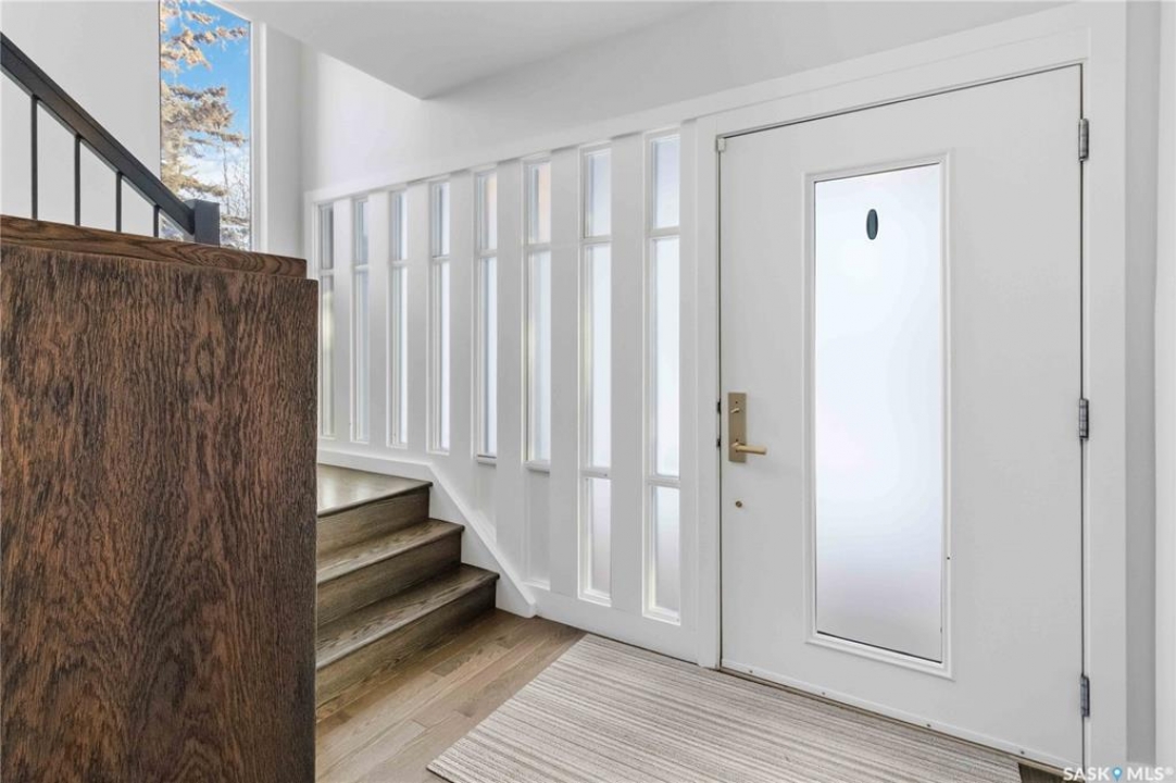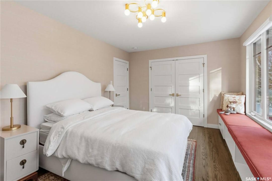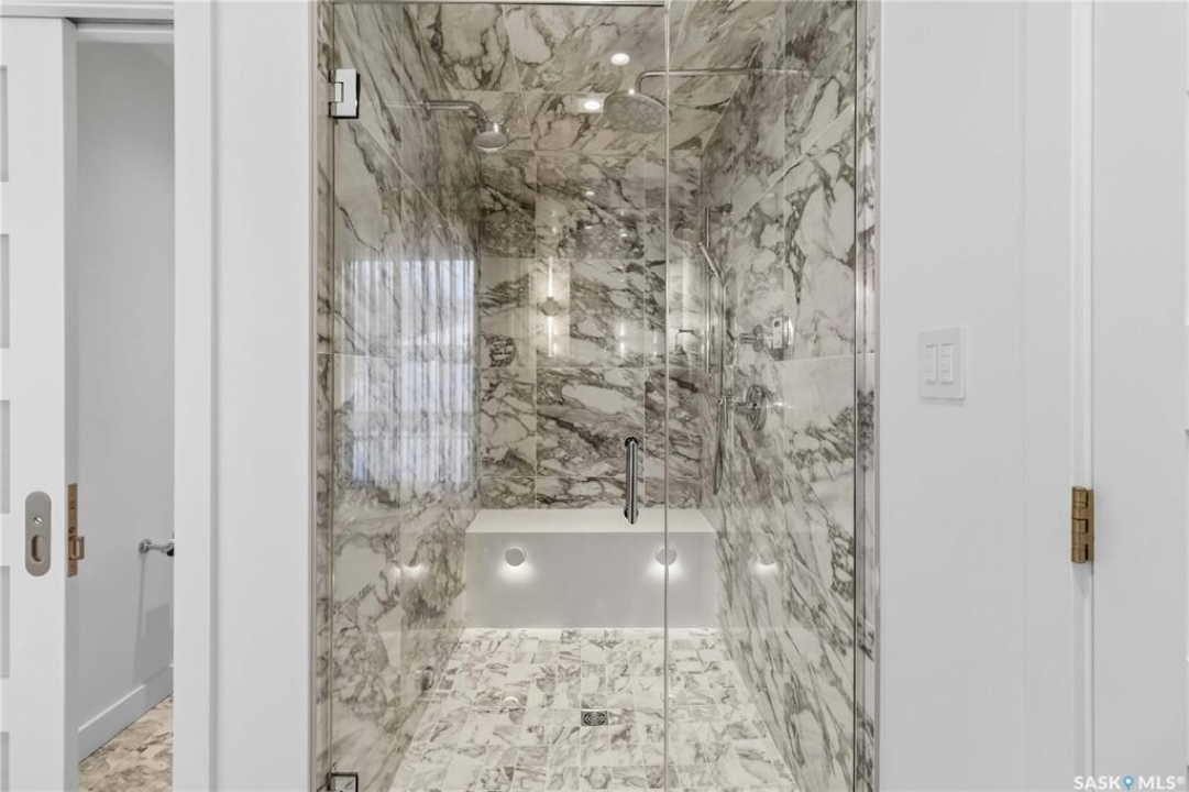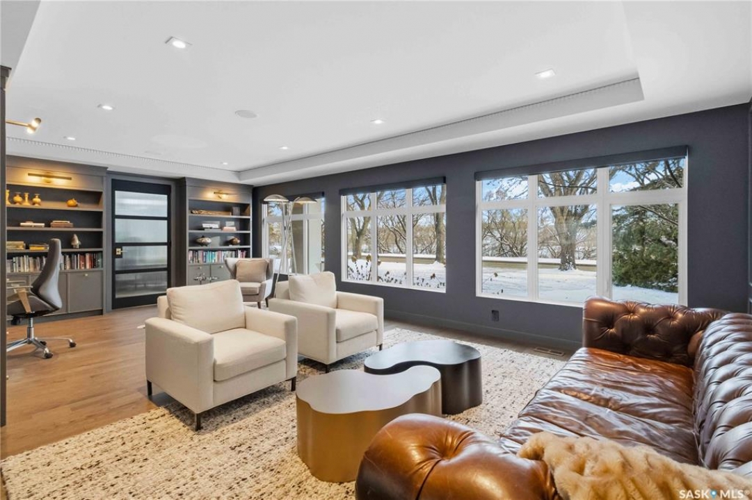 Welcome to 1134 Spadina Crescent E, an impeccably reimagined luxury residence where refined design meets exceptional craftsmanship. This two storey home offers 4 bedrooms and 4 bathrooms and was transformed through a professional, year long renovation by Atmosphere Interior Design from 2021 to 2022, showcasing uncompromising attention to detail throughout. The main floor features engineered oak flooring, custom ceiling and wall moulding, and a front executive office framed by steel doors and scenic river views. The showpiece kitchen is anchored by custom cabinetry with Restoration Hardware handles, a full slab marble backsplash, custom brass hood, sculptural brass lighting, and premium JennAir appliances. A statement oak island with fluted detailing, two garburators, artisan tile pantry backsplash, and refined finishes complete the space. The living area is warmed by a marble clad Town and Country gas fireplace and enhanced with motorized blinds, smart lighting, and built in speakers. Designer lighting by Kelly Wearstler, Restoration Hardware, and Arteriors creates a timeless, layered aesthetic throughout. New interior doors with Emtek hardware elevate both function and form. The primary suite is a spa inspired retreat featuring two walk in closets, heated tile floors, steam shower, Restoration Hardware mirrors, and Kelly Wearstler lighting. Secondary bedrooms are thoughtfully curated with designer wallpapers along with custom drapery. Additional highlights include a spacious mudroom, updated staircase with new spindles, and a timeless exterior finished in metal siding and stucco. Outdoor living is enhanced by a new composite deck completed last summer. The heated triple garage offers a drive through bay, slat wall storage, sub panel, and 240 volt plug. Other upgrades include new weeping tile with a sump pit. A rare and refined offering, blending elevated design, modern technology, and timeless elegance for an exceptional lifestyle opportunity.
