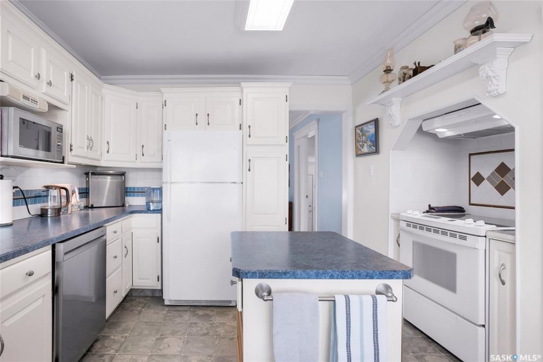 Welcome to this impeccably kept home, ideally situated close to the river, schools, parks, and all amenities. As you enter, you're greeted by a spacious foyer with cork flooring and ample room for jackets, boots, and storage. Gorgeous hardwood floors flow seamlessly through the bright and open main floor, connecting the inviting living room to the dining area, which offers unobstructed views of the stunning backyard. In the kitchen you will find an eating nook, island, and an abundance of counter space and storage. Conveniently located off the main living areas, is a 2-piece bathroom, laundry, and a versatile den or office space. Upstairs, the hardwood floors continue, leading you to three generously sized bedrooms and a recently renovated 5-piece bathroom complete with double sinks and elegant tile flooring. The basement offers exceptional versatility with a bright and sunny 1-bedroom suite, perfect as a mortgage helper or for teenagers and extended family. The suite is fully equipped with its own kitchen, living room, 4-piece bathroom, and bedroom. Additionally, a massive storage room provides the potential to be converted into a home gym, theatre room, or extra living space. The private, fully fenced backyard is beautifully landscaped and features a southeast-facing deck, garden area, and shaded patio space, perfect for outdoor entertaining and relaxation. This exceptional home is complete with an insulated garage, central vacuum system, boiler heat, newer windows, and all appliances included.