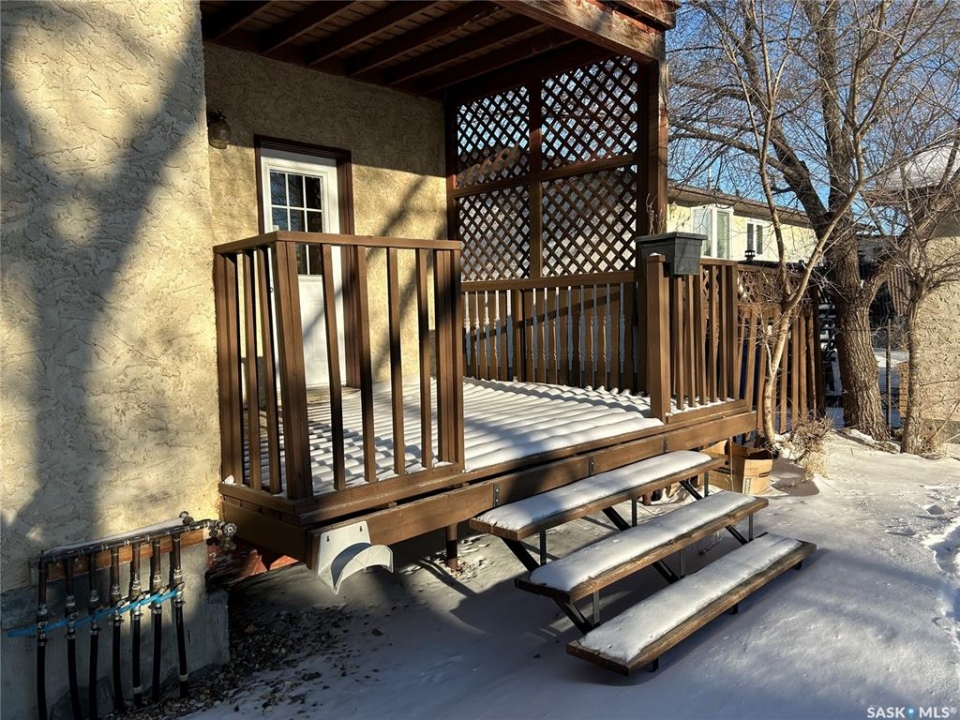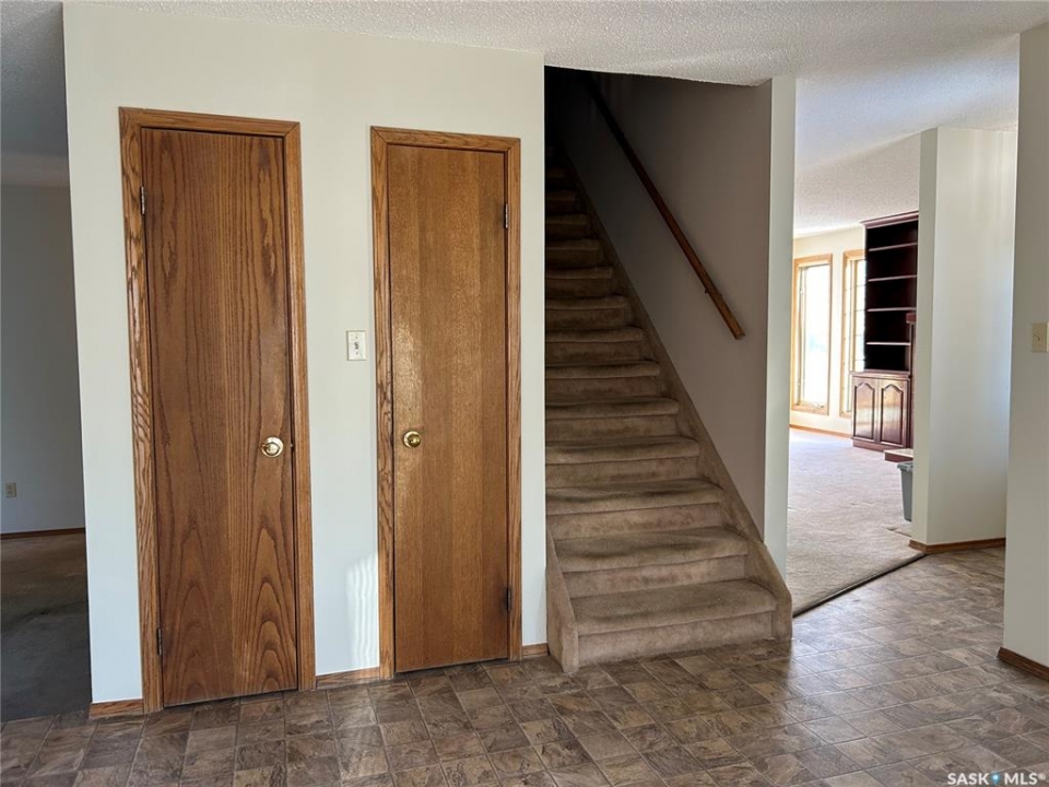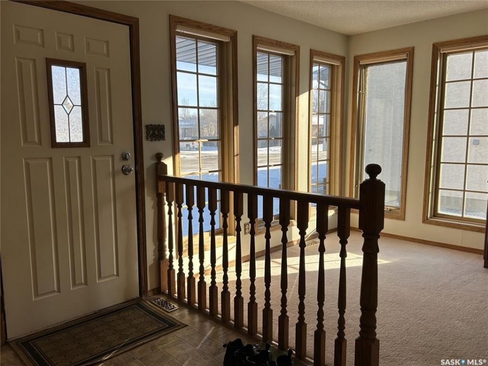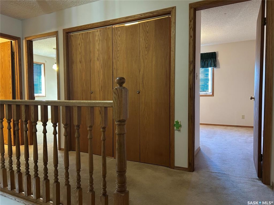 Affordable home with excellent potential in Estevan's Pleasantdale neighbourhood! This spacious 1,331 sq. ft. property sits on a generous 7,575 sq. ft. lot and features an attached double garage—an ideal opportunity for buyers looking to personalize a home in a great location. Owned by the same seller for nearly 40 years, the home is now ready to welcome a new family. Step inside to a bright living room with a cozy gas fireplace, complemented by a separate dining area off the kitchen. The main level also includes a comfortable family room, a convenient 2-piece bathroom, and direct access to the double garage. Upstairs, you'll find a large primary bedroom complete with a 3-piece ensuite and its own private deck, along with a full bathroom, two additional bedrooms, and a dedicated laundry area.The basement has never been finished and has had no water issues. It offers even more living space with a large family room area featuring another gas fireplace, a roughed-in bathroom, a generous storage room, and extra storage in the utility area. Recent updates include a newer air conditioner, furnace, shingles, and plumbing lines—adding peace of mind for the next owner. Come experience this home in person and discover the potential it has to offer!