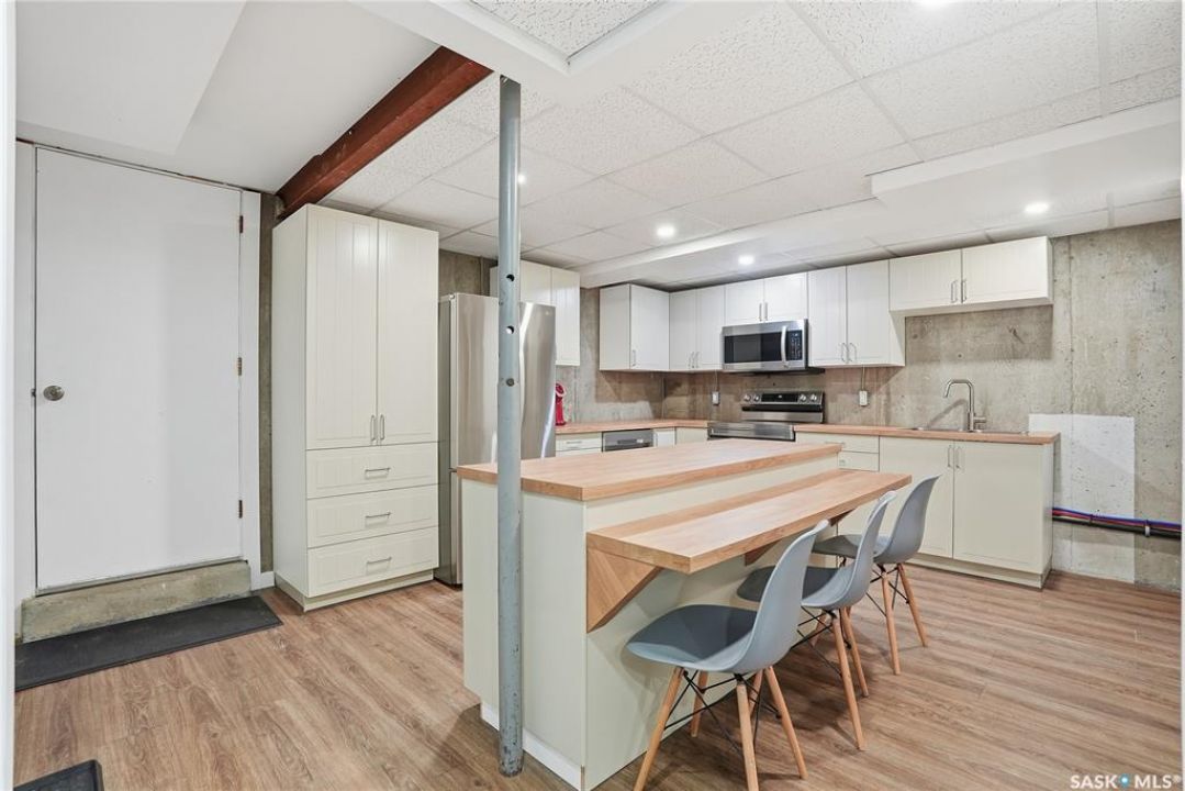 This is not a house you simply walk through. It's a house you experience. Tucked into the heart of Queen Elizabeth, this expansive two-storey redefines what “home” can be. At its core is something rarely found and impossible to forget: a spectacular 30' x 50' indoor pool retreat, complete with its own change room, equipment room, and a three-piece bath just steps away. Separately heated and vented, with doors that open directly to the mature backyard and hot tub, this space was designed for year-round entertaining. Think birthday parties, winter swims, summer nights that spill effortlessly outdoors, and tons of memories. Sunlight pours through oversized windows across the main floor, engineered hardwood and a living room anchored by a wood-burning fireplace. The kitchen is soo spacious and built for real cooking and real gatherings, featuring a gas range, oversized fridge and freezer, and an abundance of cabinetry and drawers that make clutter a non-issue. A main floor office with a nearby two-piece bath adds flexibility for work & guests. Upstairs, three spacious bedrooms provide a true family-level layout, with the primary suite featuring an ensuite with a soaker tub and tiled walk-in shower. A thoughtfully designed room outfitted with a full wall organizer for clothing and a vanity with sink ideal as a dressing room or glam space. Laundry is thoughtfully placed on the second level along with a full bathroom. The basement has been completely renovated into a modern one-bedroom plus den suite with a separate entrance. Behind the scenes, the home is equally impressive: four furnaces (two recently replaced), a new oversized water heater, updated garage door, and most windows replaced. Set on a huge, mature lot (85 foot frontage!) with a single attached garage & single detached garage, this is a home that refuses to fit into a standard category. It's part family haven, part entertainer's dream, part private wellness retreat. Homes like this don't come along often!
