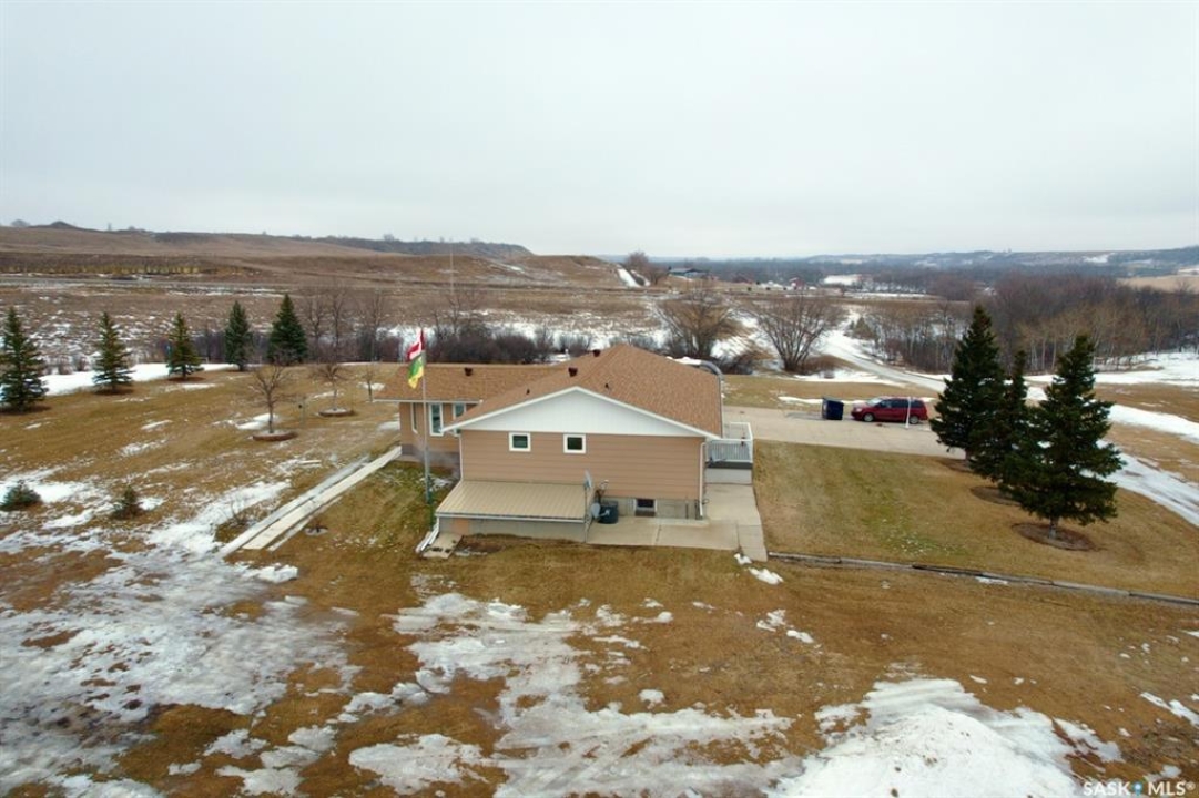 Enjoy breathtaking views of the Roche Percee Valley from this remarkable acreage just 15 minutes—entirely on pavement—from Estevan. Set on nearly a quarter section (153.45 acres), the land includes approx. 50 acres of cultivated fields, 40 acres of alfalfa, 30 acres of pasture, a beautifully treed river and bush area, the main yard site, a separate campground area, and a second powered yard site. The 1,711 sq. ft. home has an attached heated garage, and there is a detached garage, and multiple storage sheds. Utilities include power and natural gas, with water supplied by a well. The landscaped yard surrounding the home has underground sprinklers, a large back patio, two composite decks, and a natural-gas BBQ hookup on the rear deck—ideal for entertaining while taking in the stunning scenery. Built with quality in mind, the home offers fir framing at 16" on centre, fir floor joists, 6" insulated walls, and central air conditioning. Most windows have been replaced, the furnace is mid-efficiency, and shingles were updated in 2018. The home has never been smoked in and has never housed pets. Inside, the main level provides direct entry from the heated garage, a separate dining area off the kitchen, an expansive living room, and a family room complete with a wood-burning fireplace and hot tub. The spacious primary bedroom easily accommodates a king-size bed and features three closets along with a private ensuite. Two additional bedrooms and a full bathroom complete the upper level. The basement continues to impress with a family room featuring beautiful cedar walls imported from Spain, along with an additional bedroom, den, 3-piece bath, and an abundance of storage. The private campground area adds to the property's versatility, offering a screened-in tent building with a metal roof, gazebo, firepit, playground, outhouse, and metal storage shed—perfect for hosting family and friends. This a truly special rural property that must be seen to be fully appreciated.